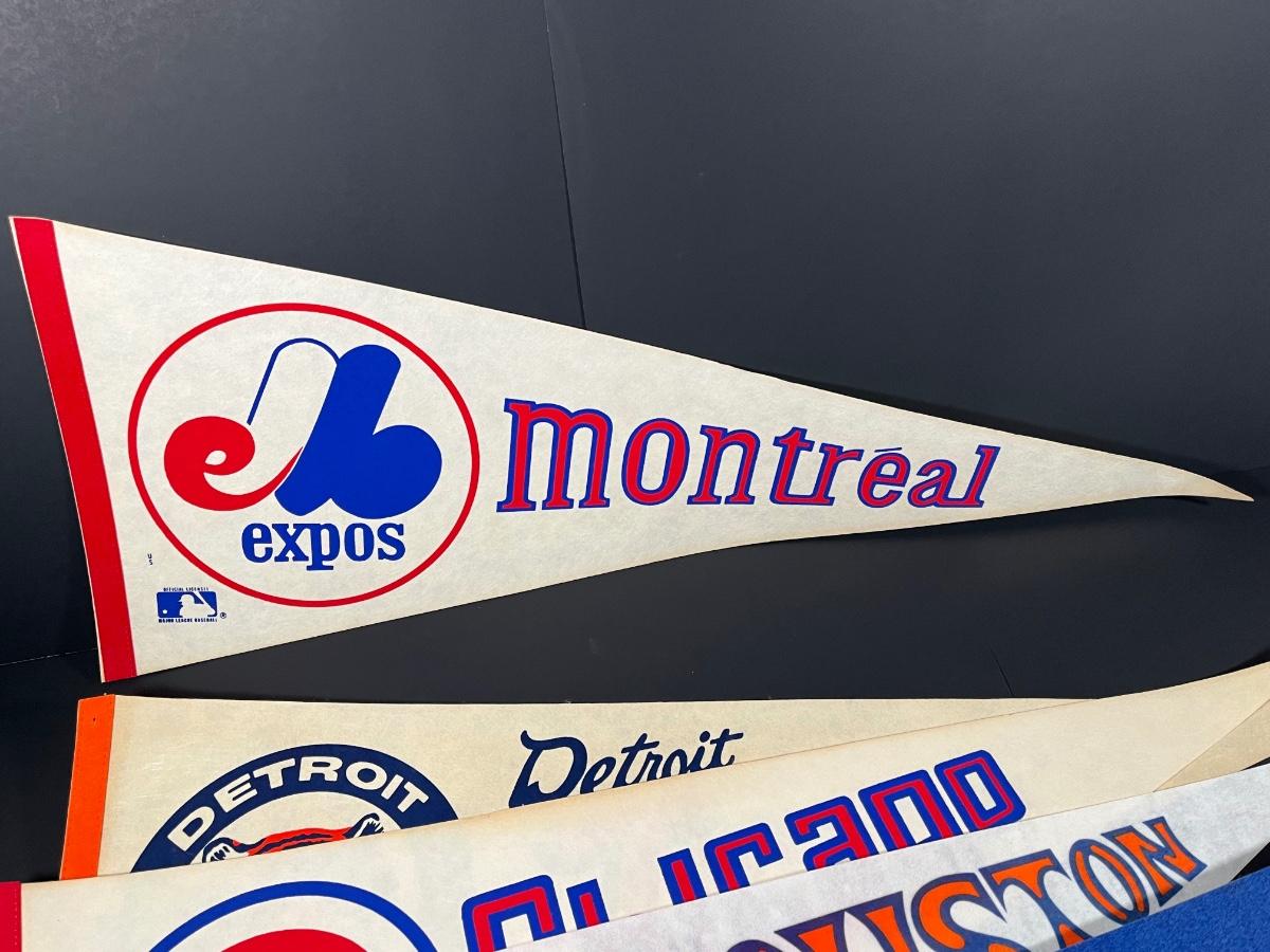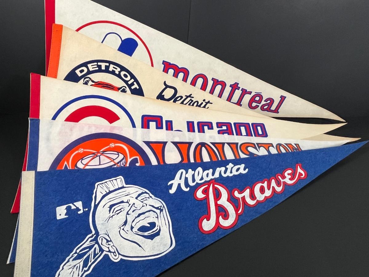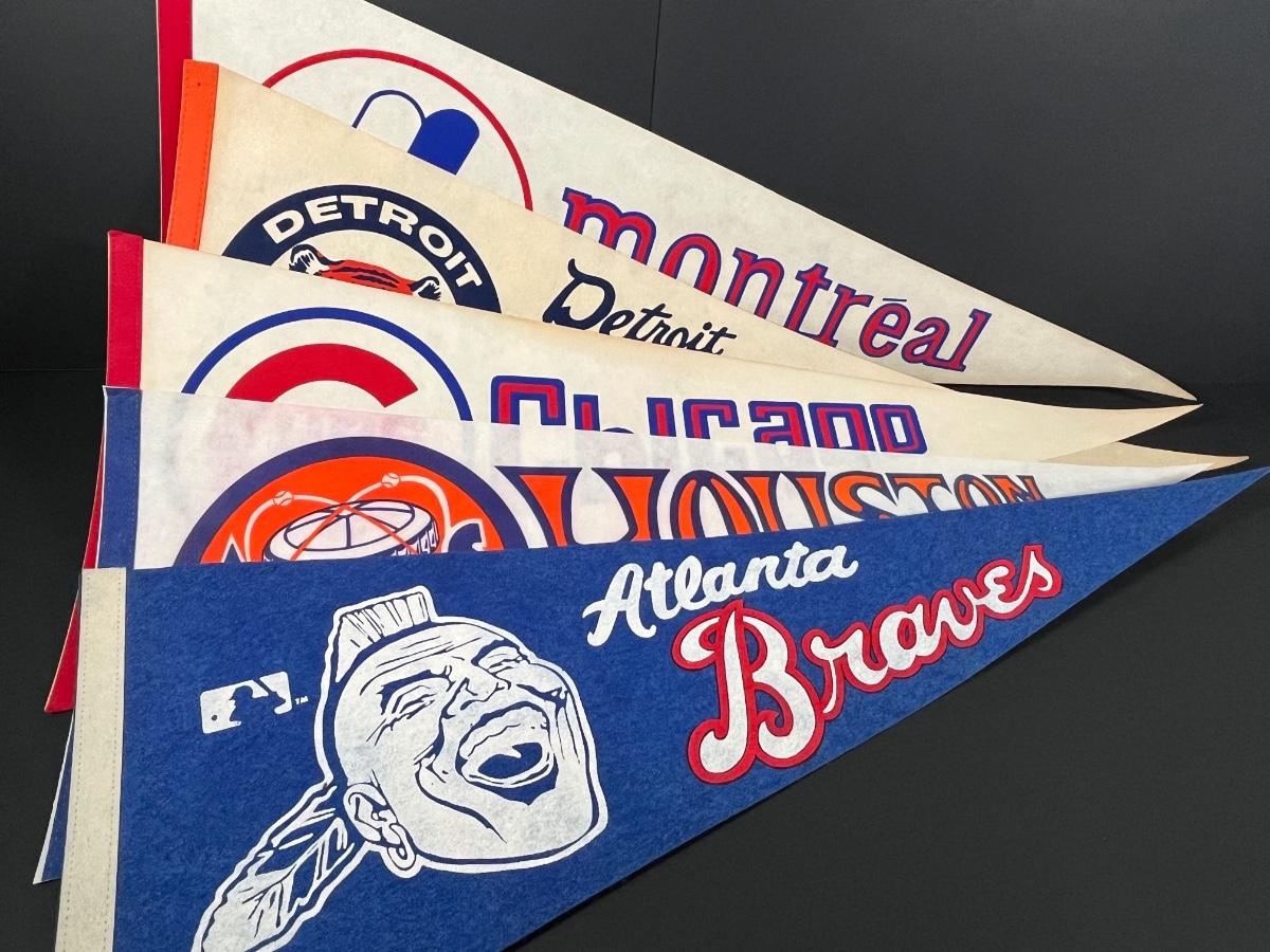 LOT 299: Vintage Baseball Pennants - Braves, Astros, Cubs, Tigers, Expos