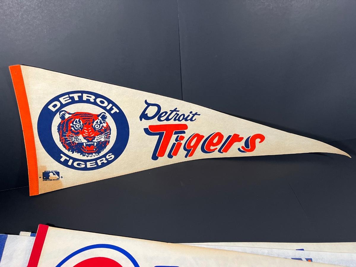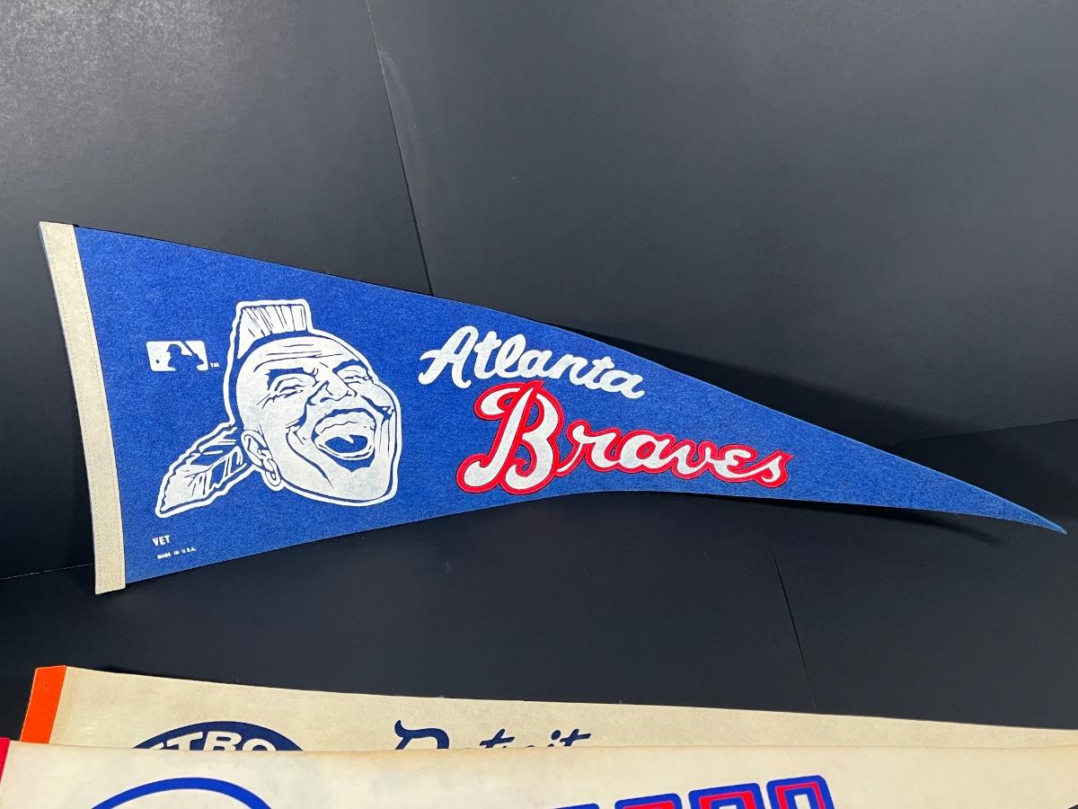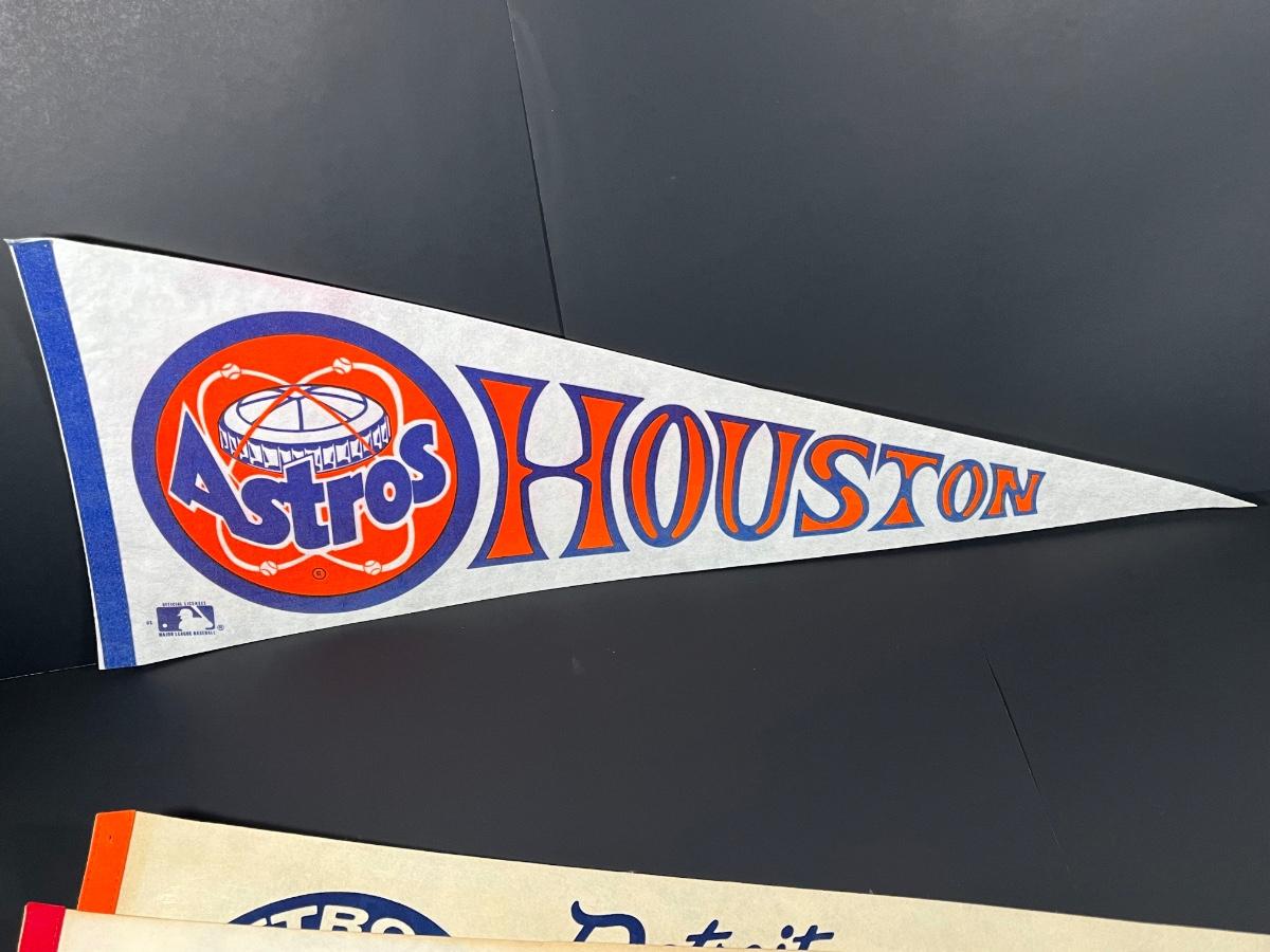 LOT 299: Vintage Baseball Pennants - Braves, Astros, Cubs, Tigers, Expos