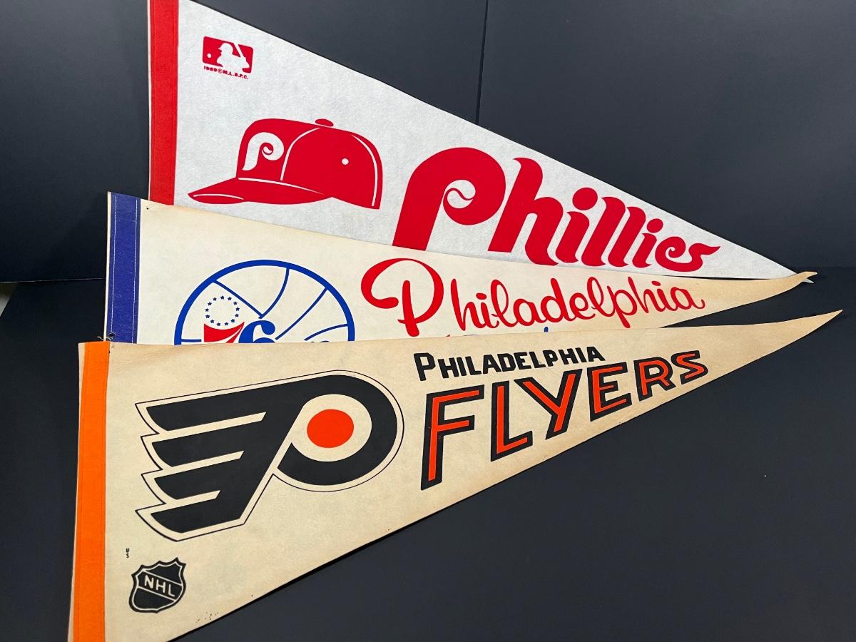 LOT 301: Vintage Philadelphia Sports Pennants - Phillies, Sixers, Flyers