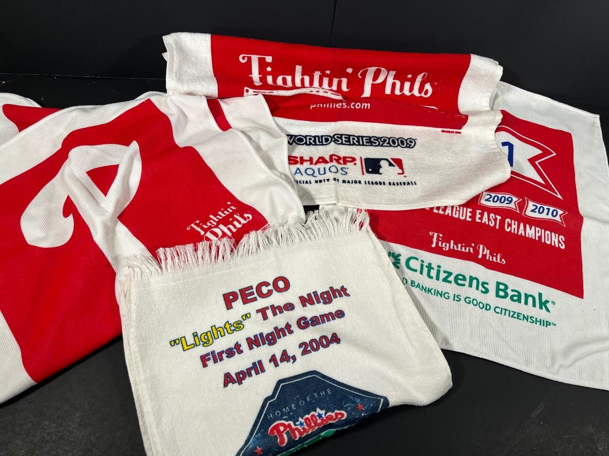 LOT 321: Philles Rally Towels - 2009 World Series, First Night Game Citizens Bank Park & More