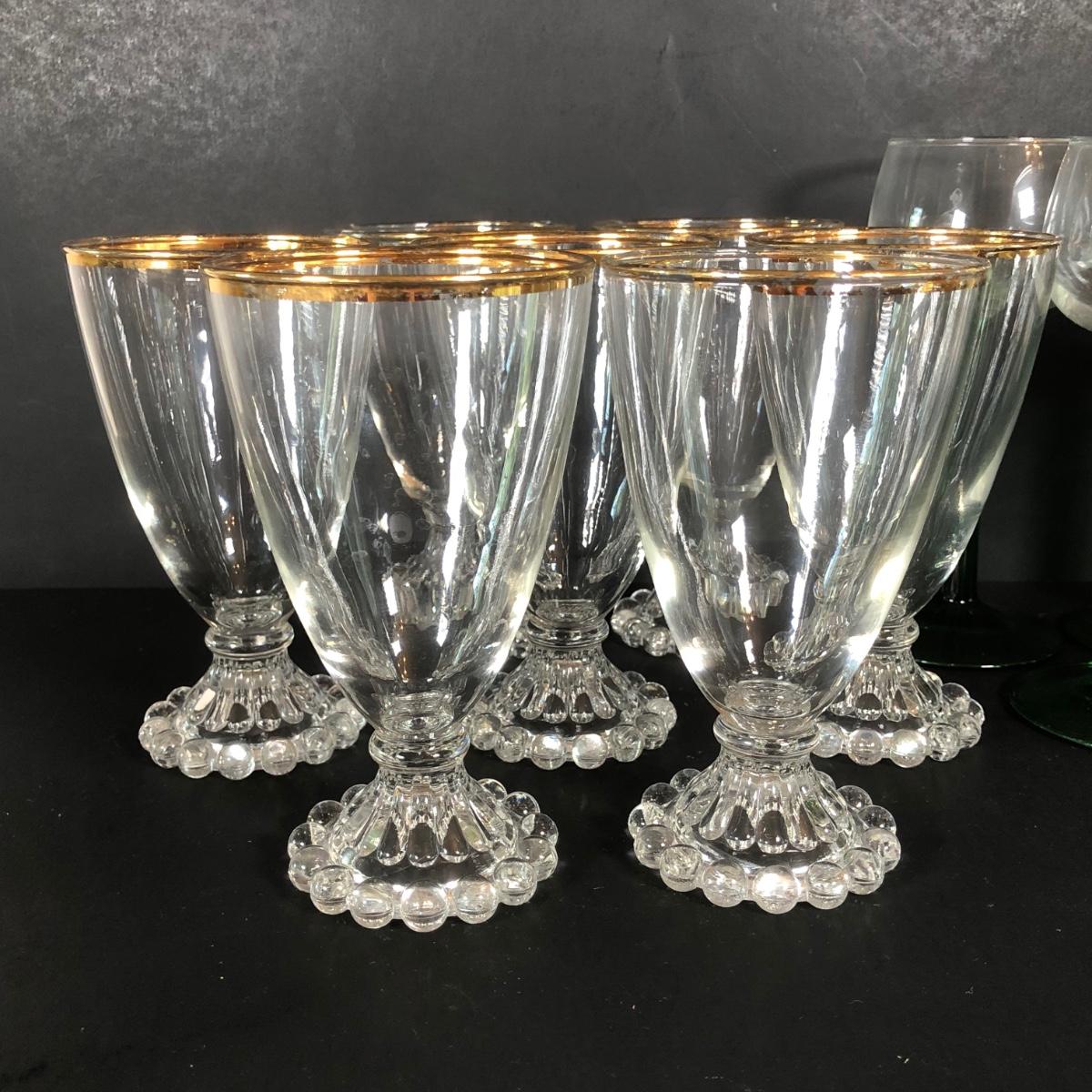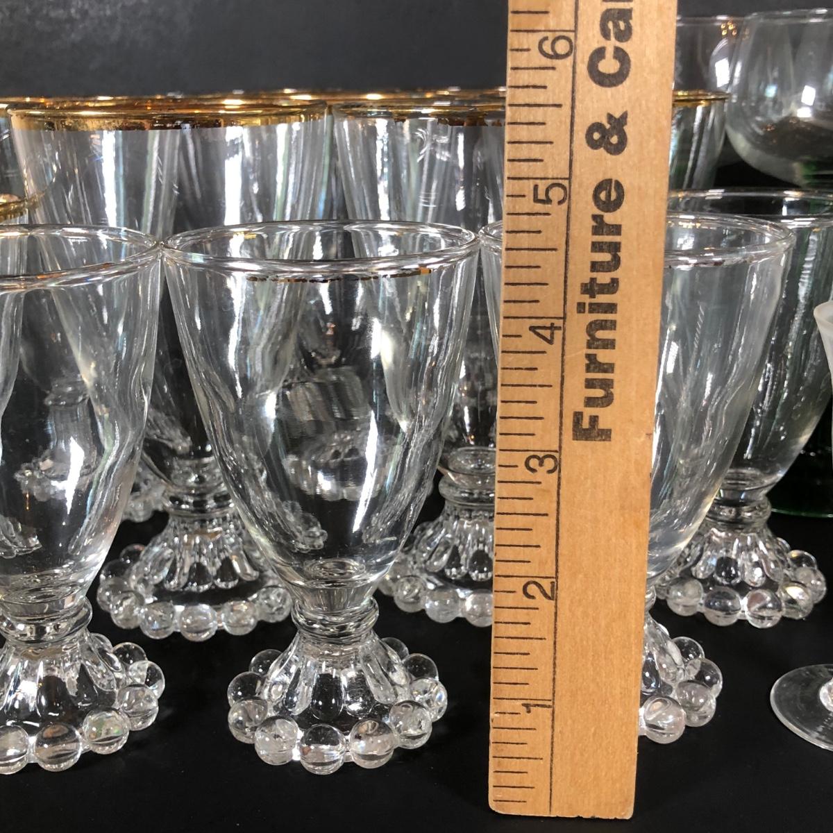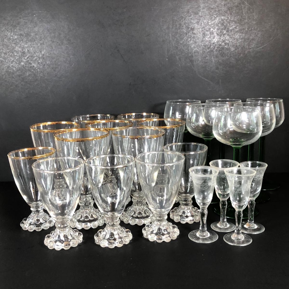 LOT 18L: Unique Barware Collection - Green Stemmed Glasses & 2 Sizes of Bubble Pedestal Glasses