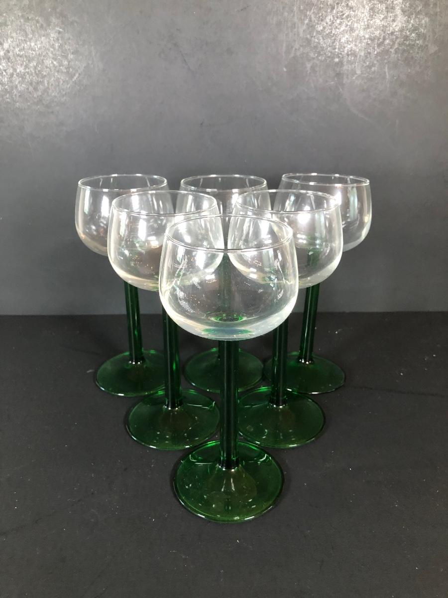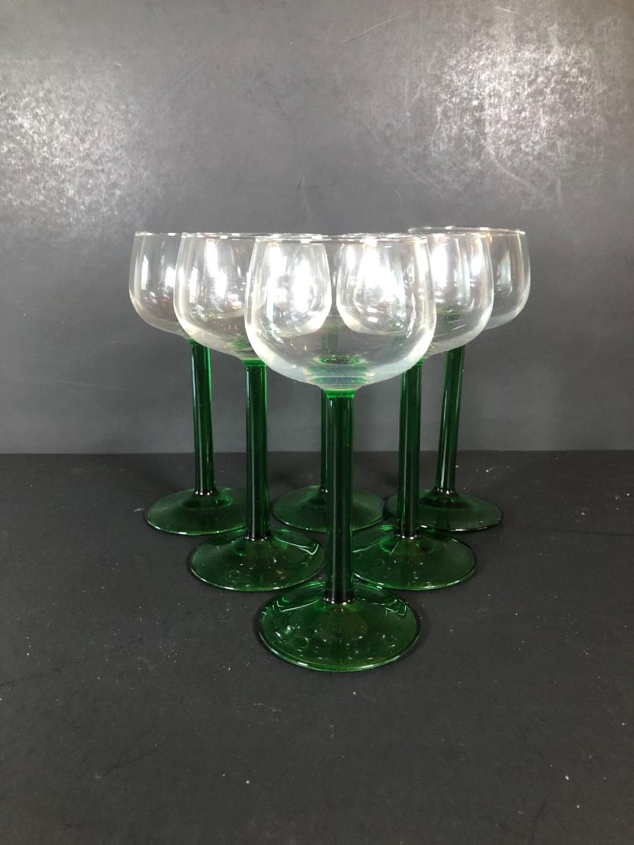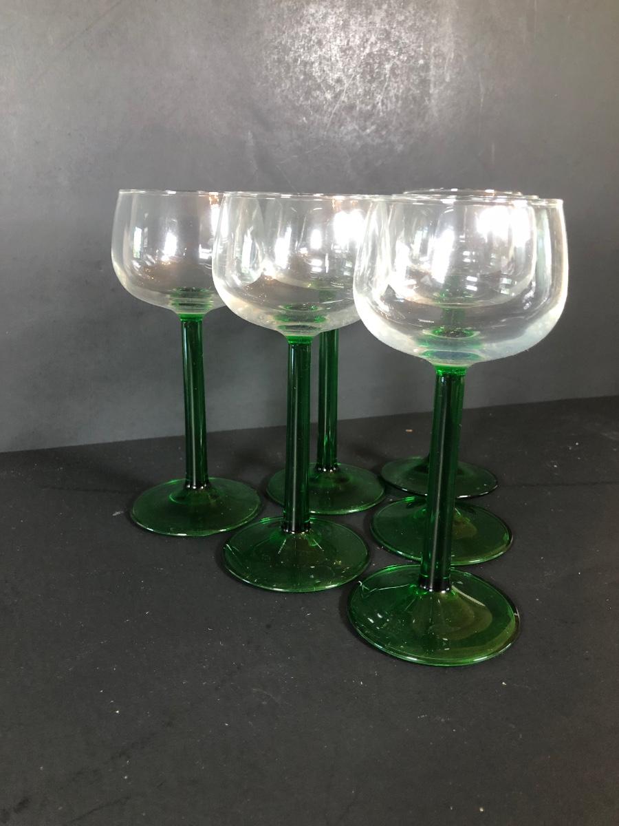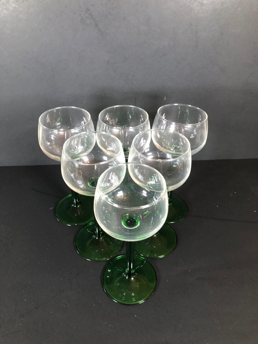 LOT 18L: Unique Barware Collection - Green Stemmed Glasses & 2 Sizes of Bubble Pedestal Glasses