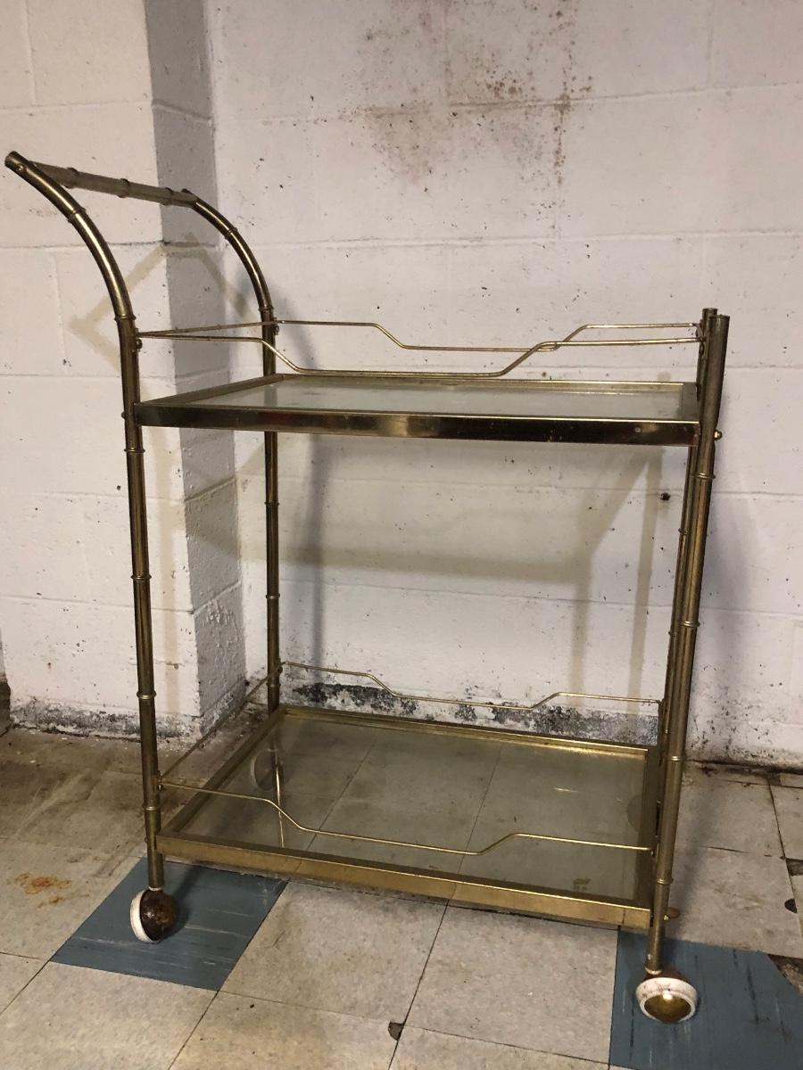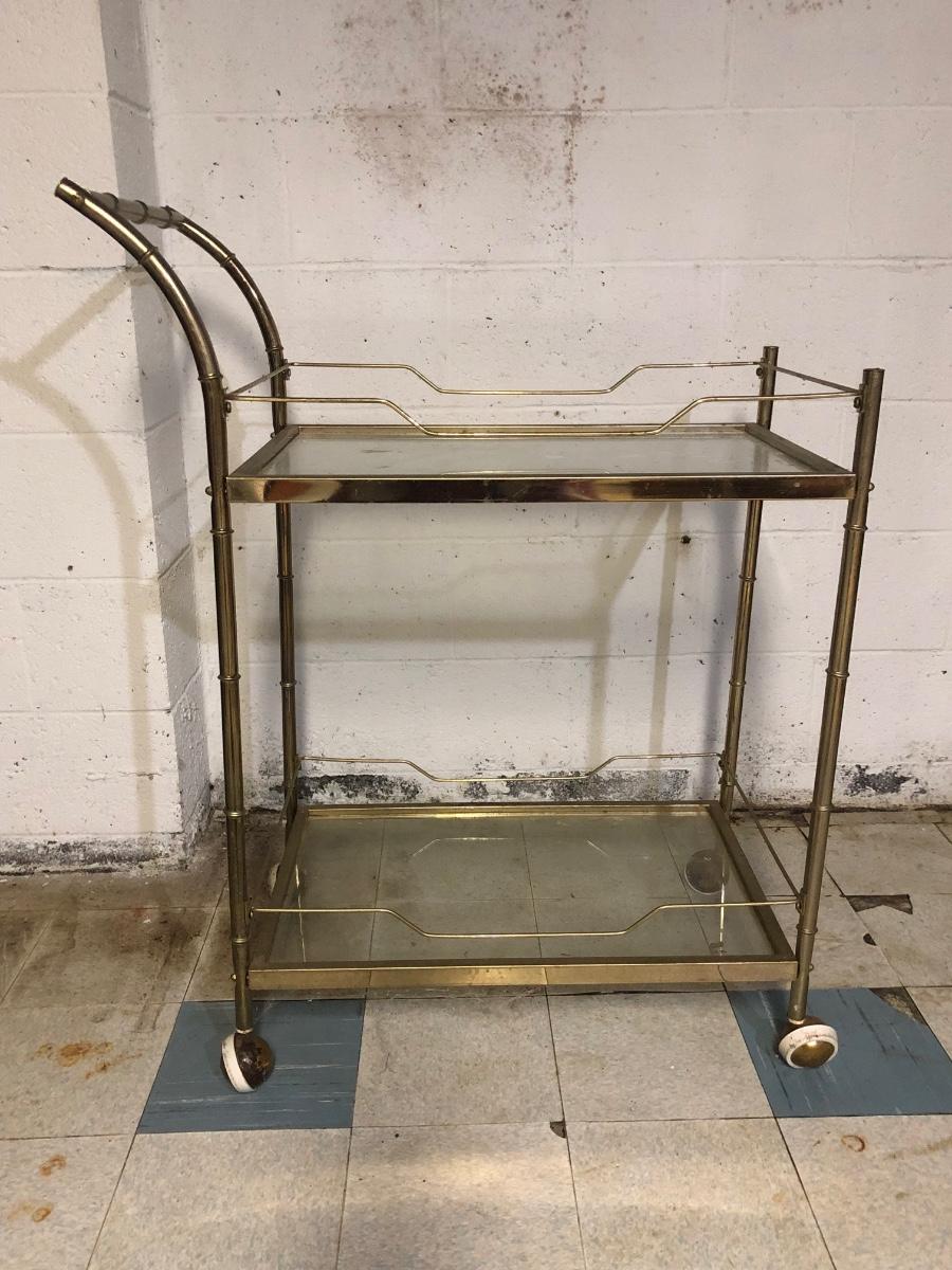 LOT 23B: Vintage Brass & Glass Rolling Bar Card