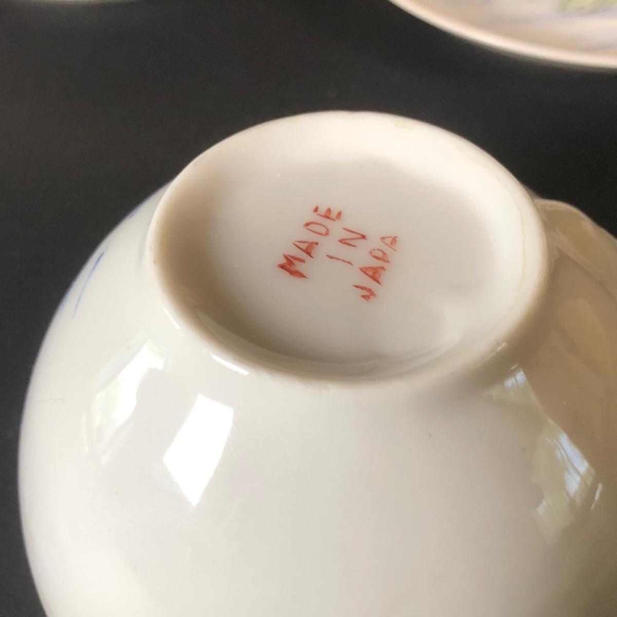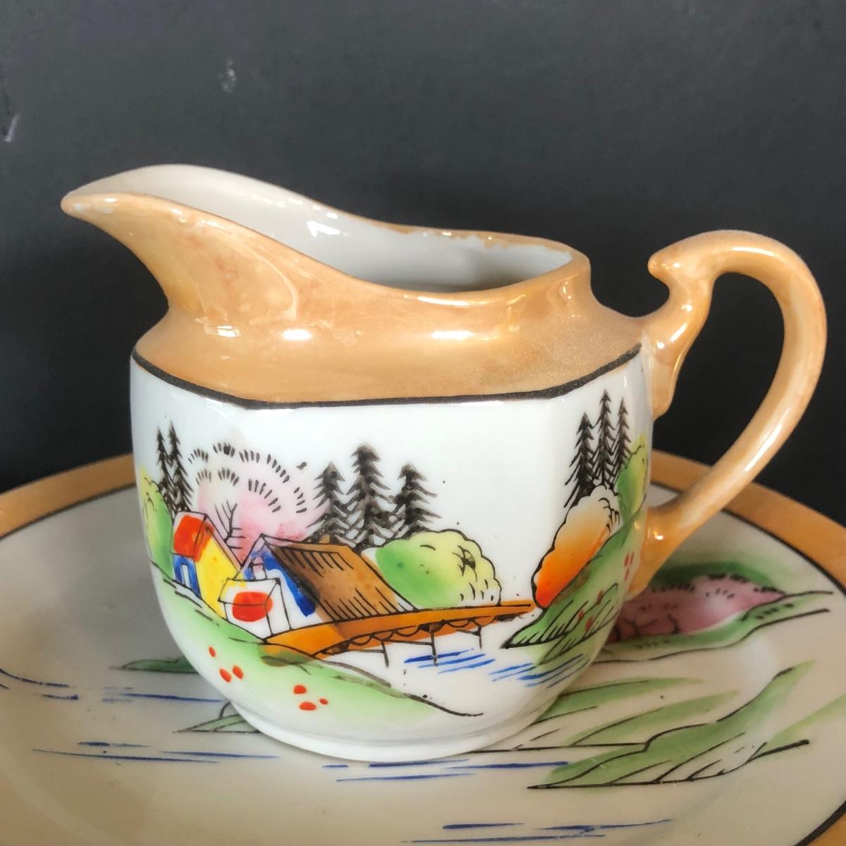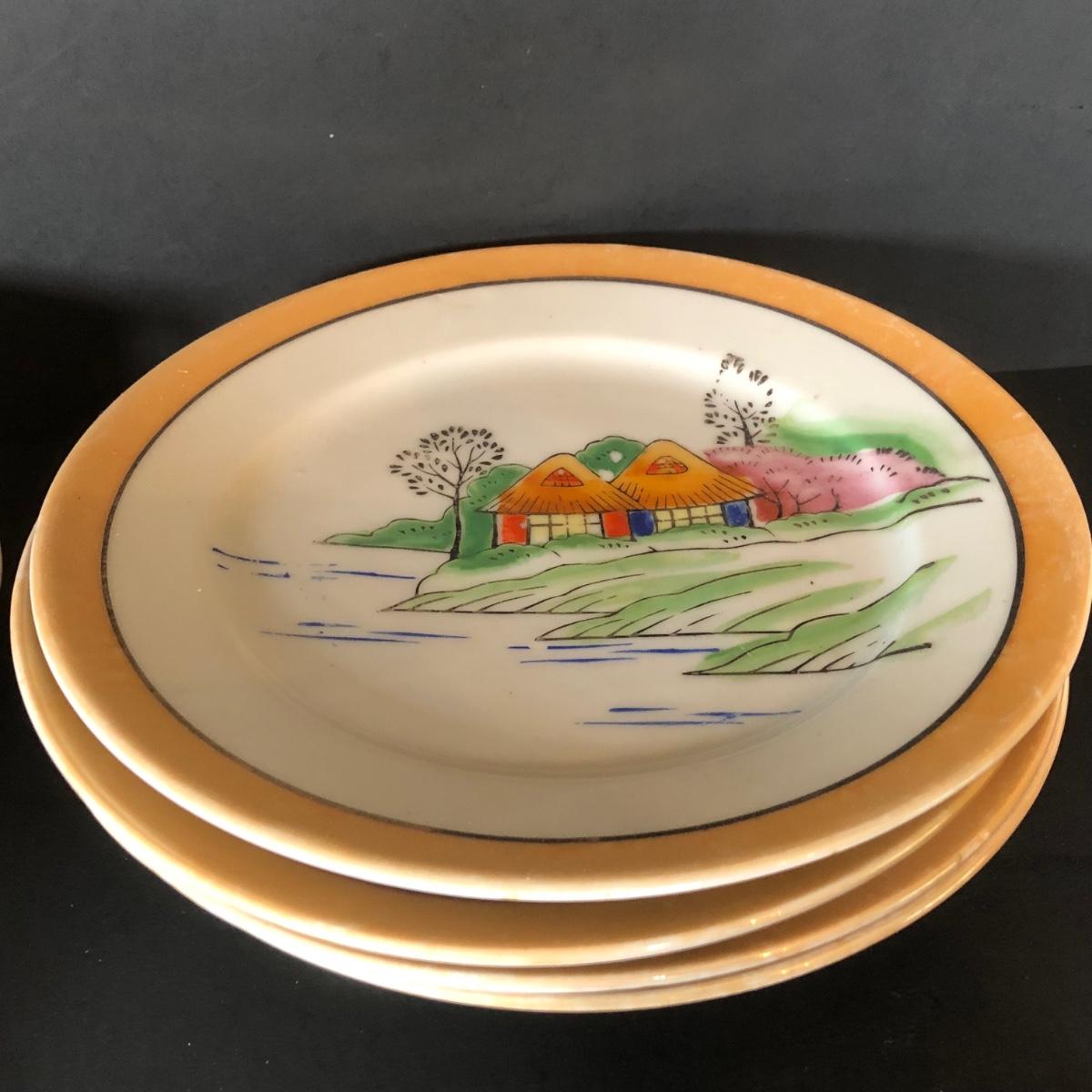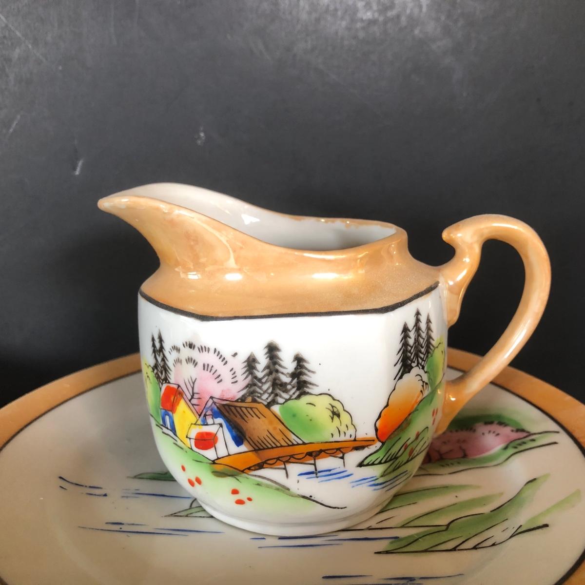 LOT 26L: Vintage Japanese Tea Cups, Saucers, Creamer & Dessert Plates