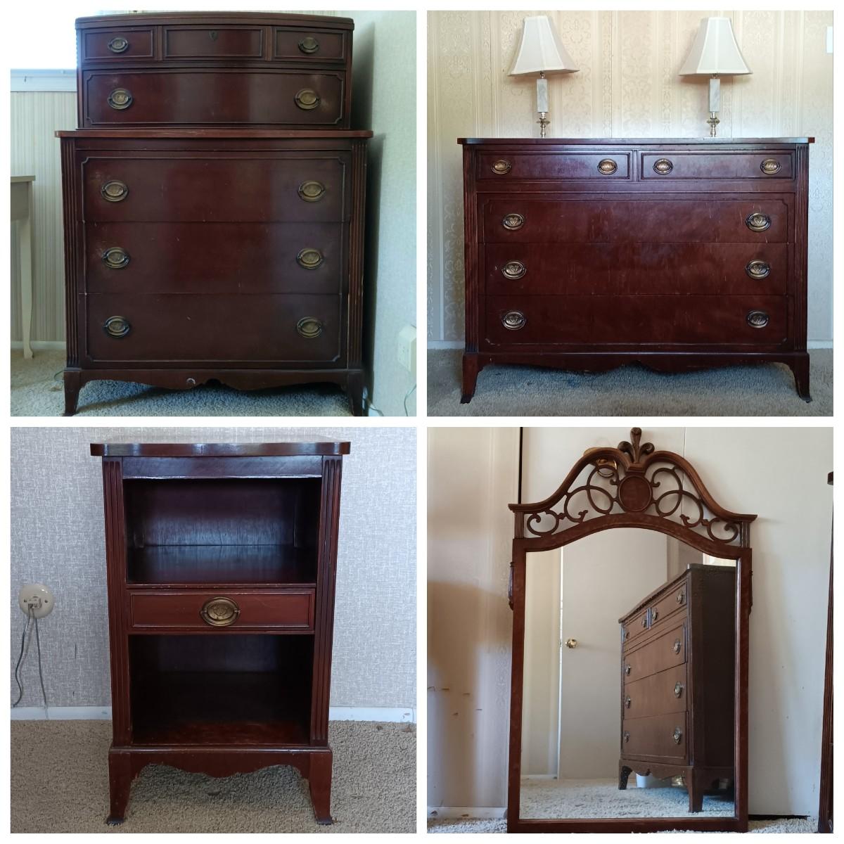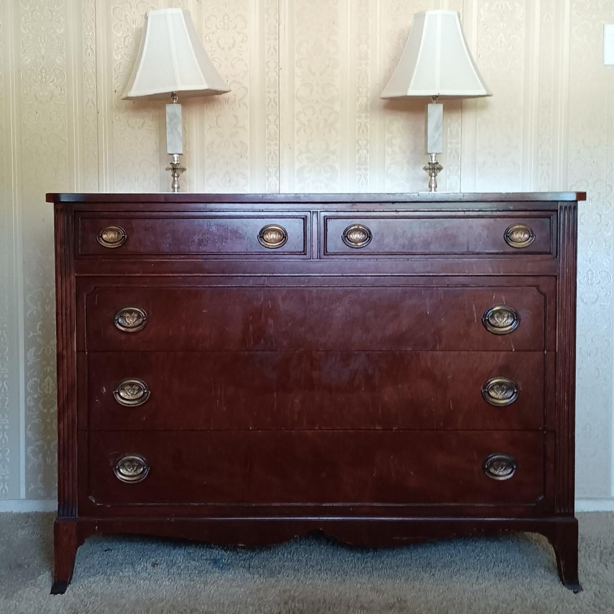 LOT 30: Thomasville Set- Dressers, Nightstand and Mirror w/ Lamps