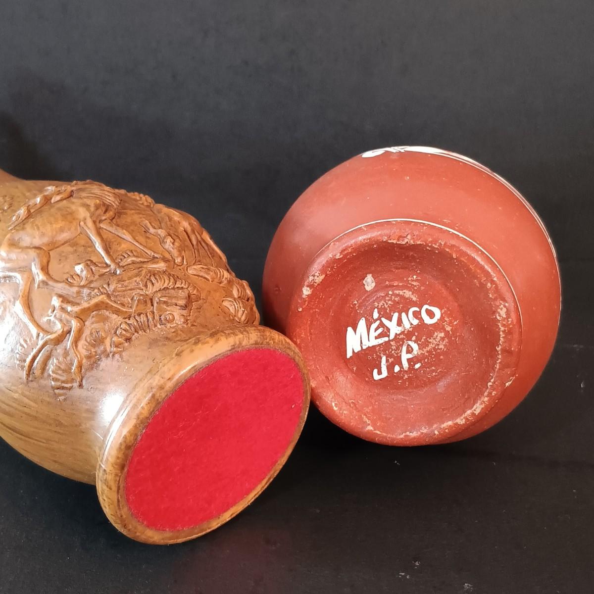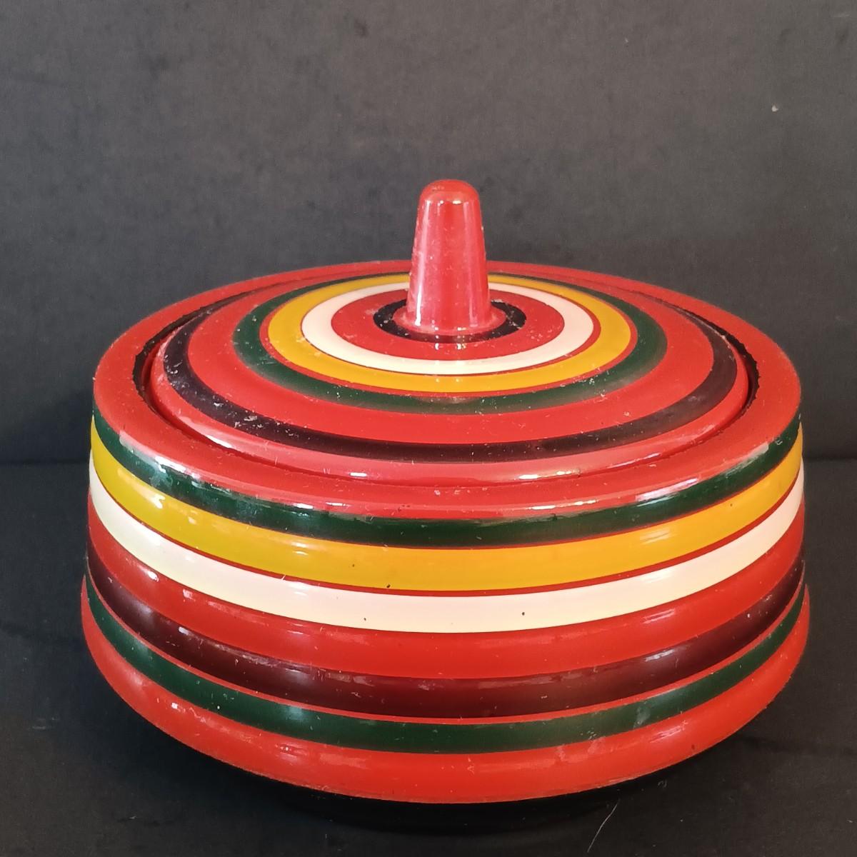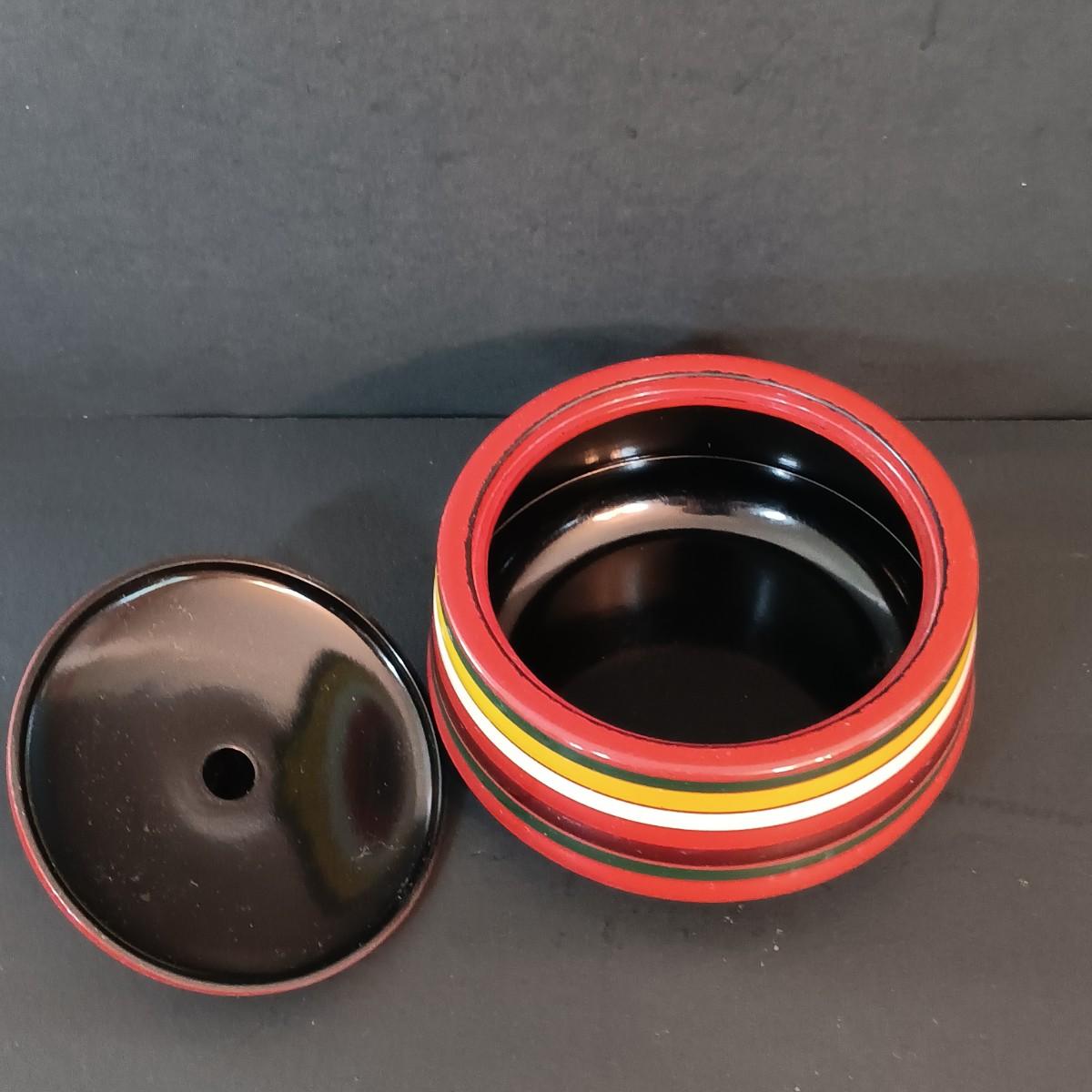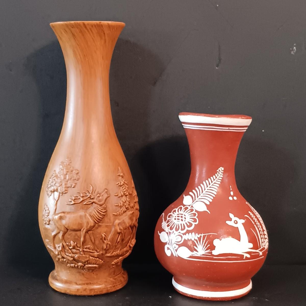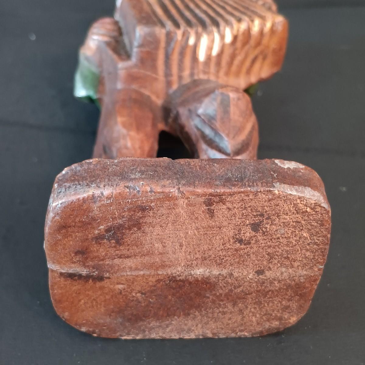 LOT 45: Vintage Faux Wood Stag & Deer Vase, Syroco Accordion Player, Hungary 1000 Pengo Note & Vintage Lacquerware Round Striped Container