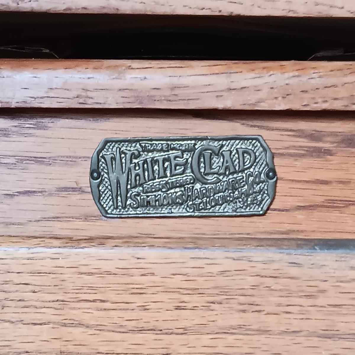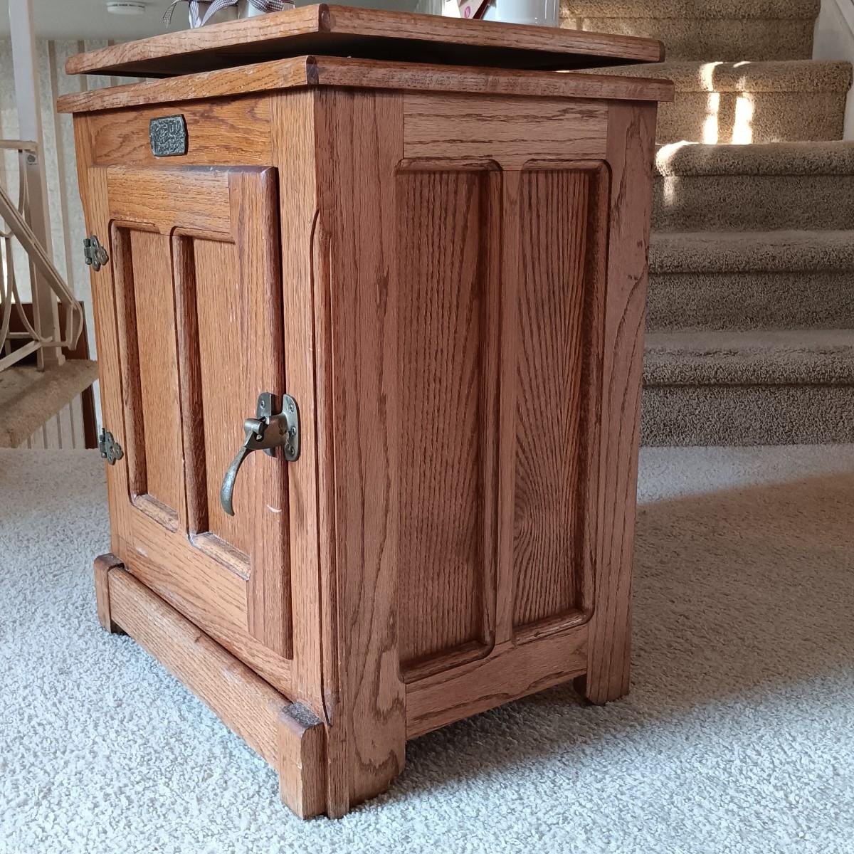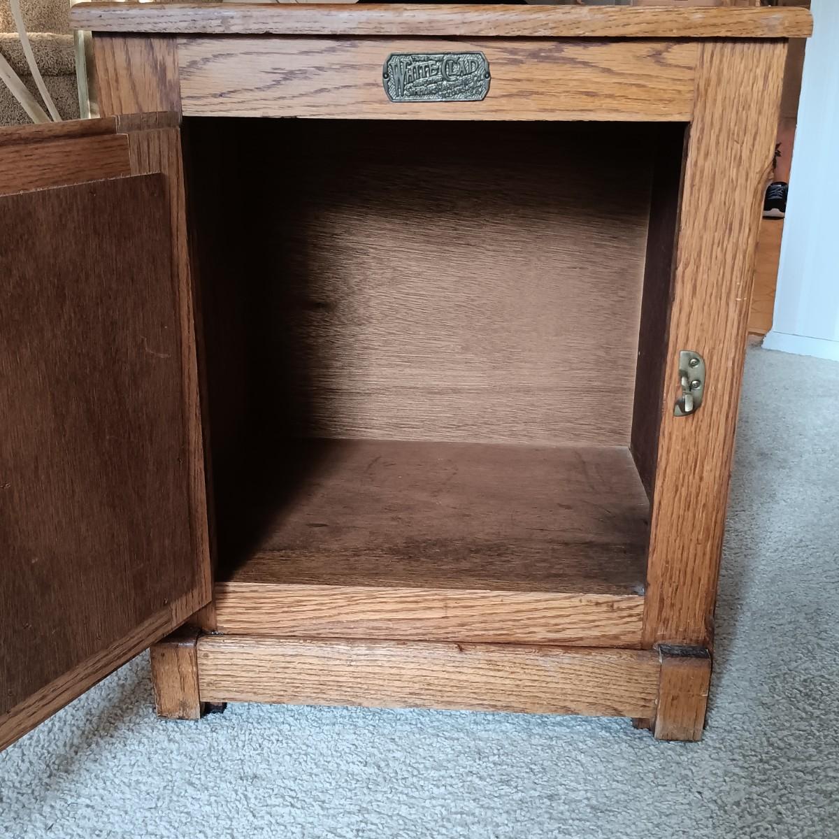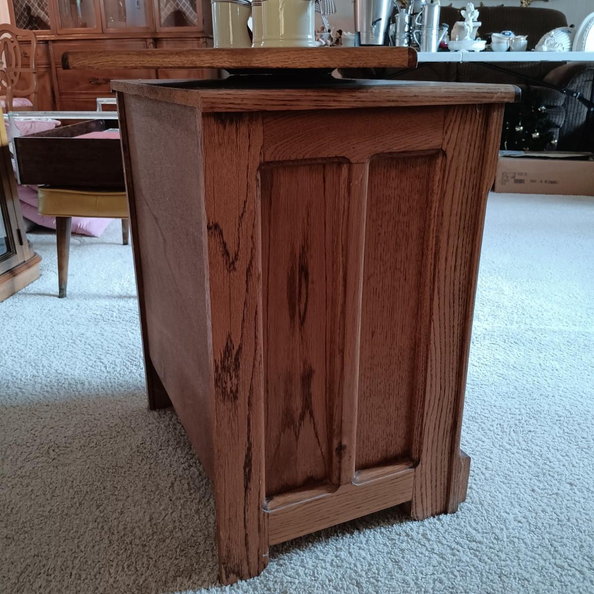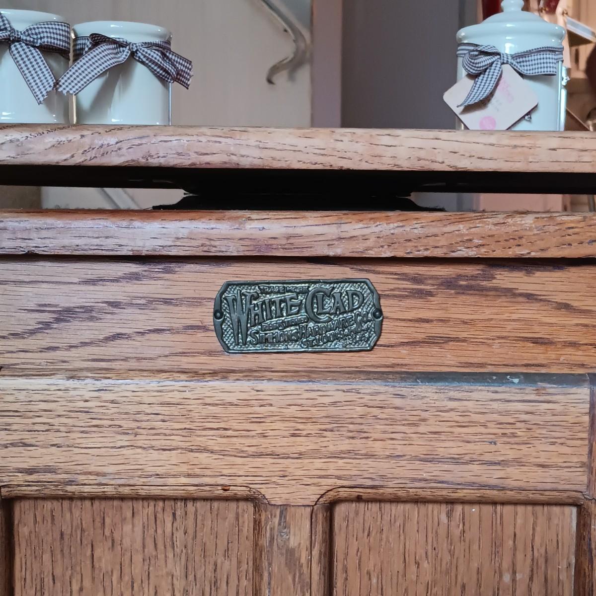 LOT 50: White Clad Reproduction Ice Box Swivel Top Cabinet w/ Decor