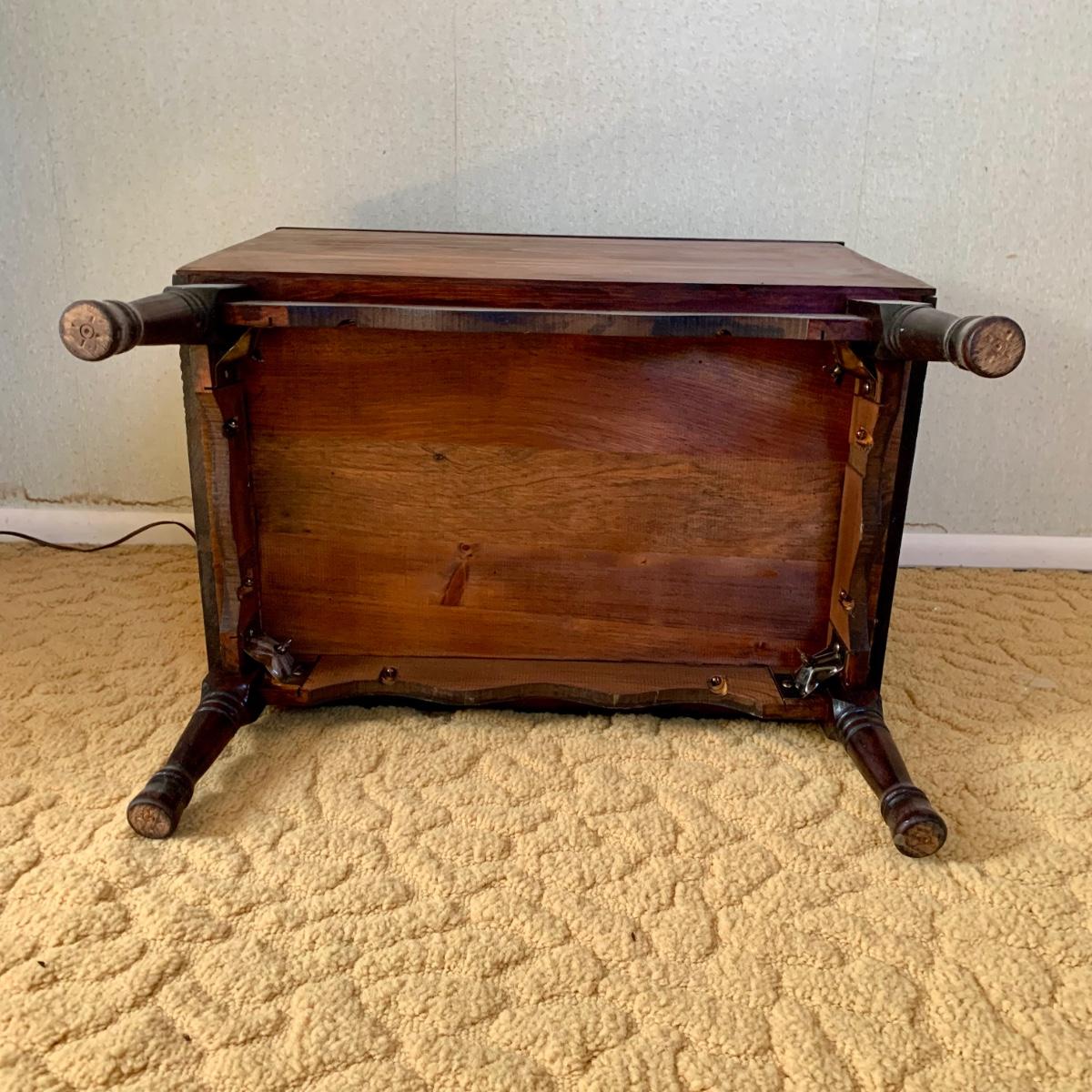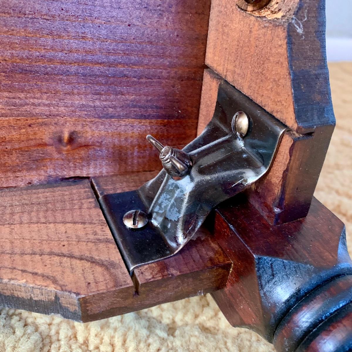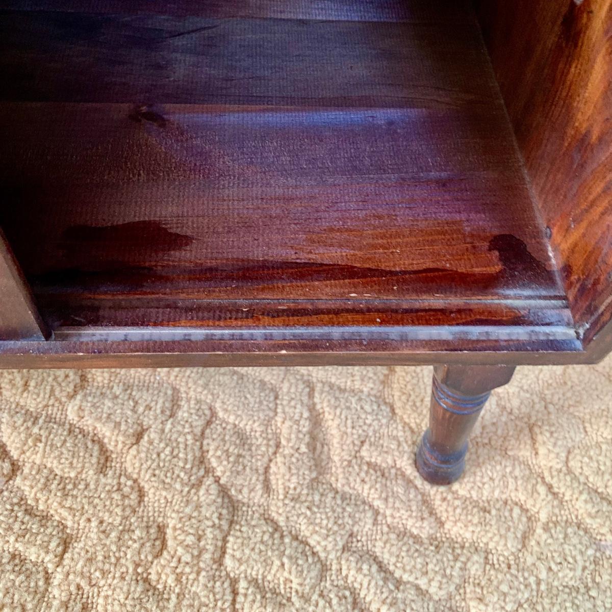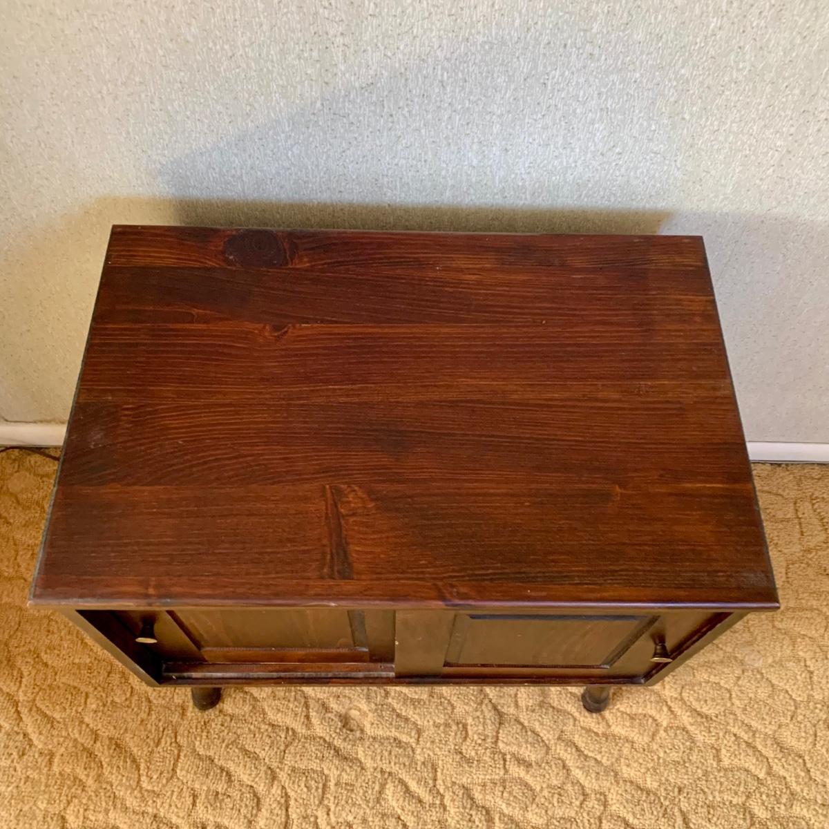 LOT 55: Vintage Sliding Door End Table/ Side Table & Red & Bronzed Candlestick Table Lamp