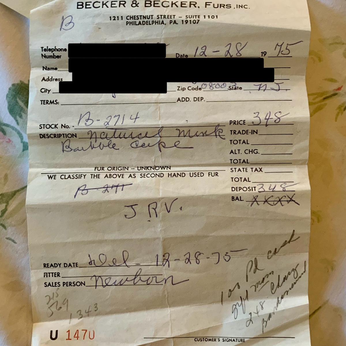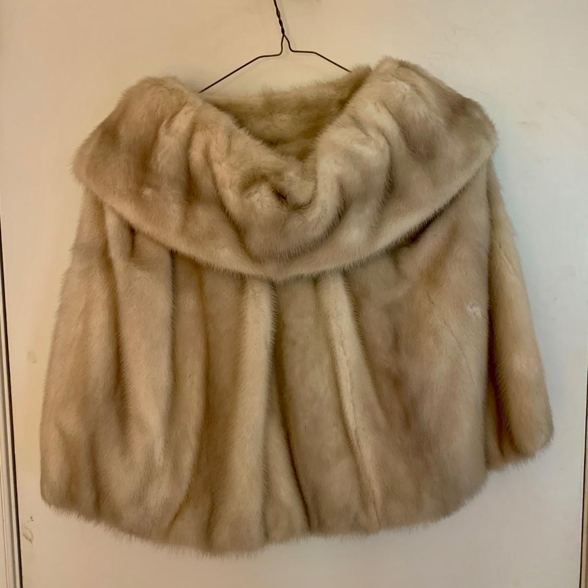 LOT 62: Vintage Ele'gante Natural Mink Bubble Cape w/ 1975 Becker & Becker Fur Appraisal Certificate & Receipt