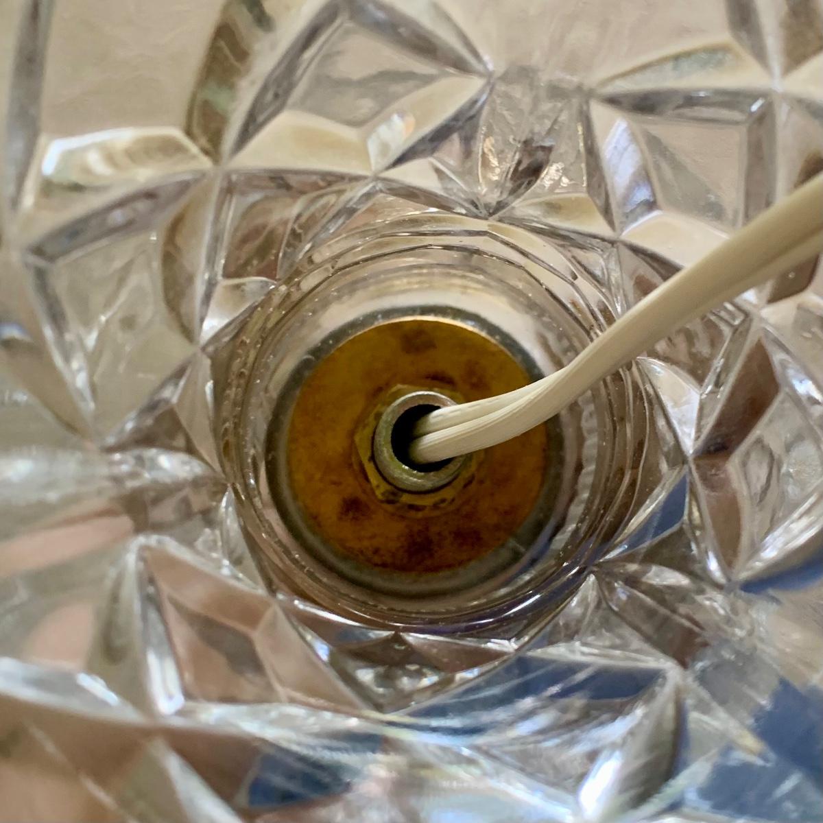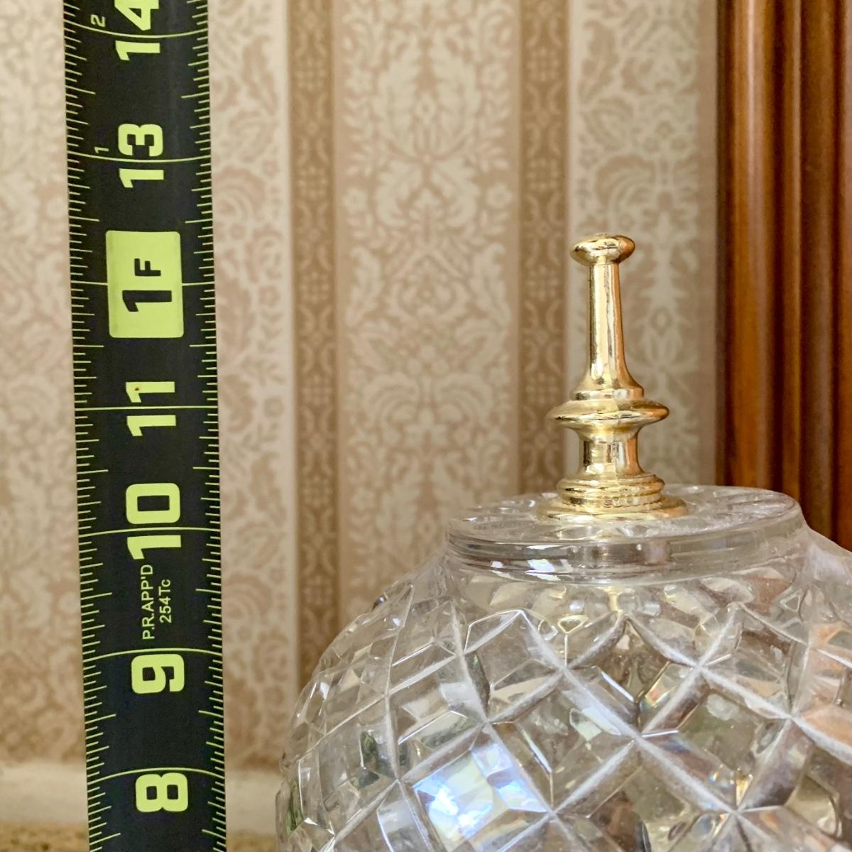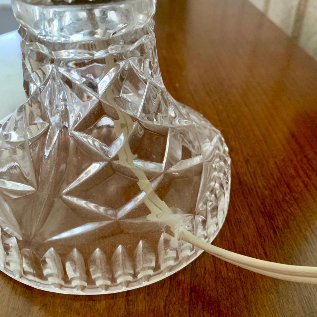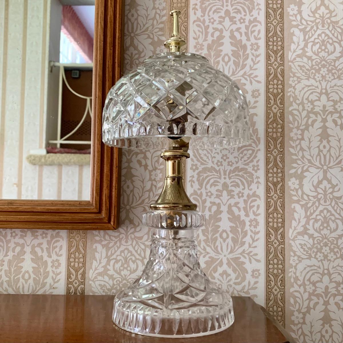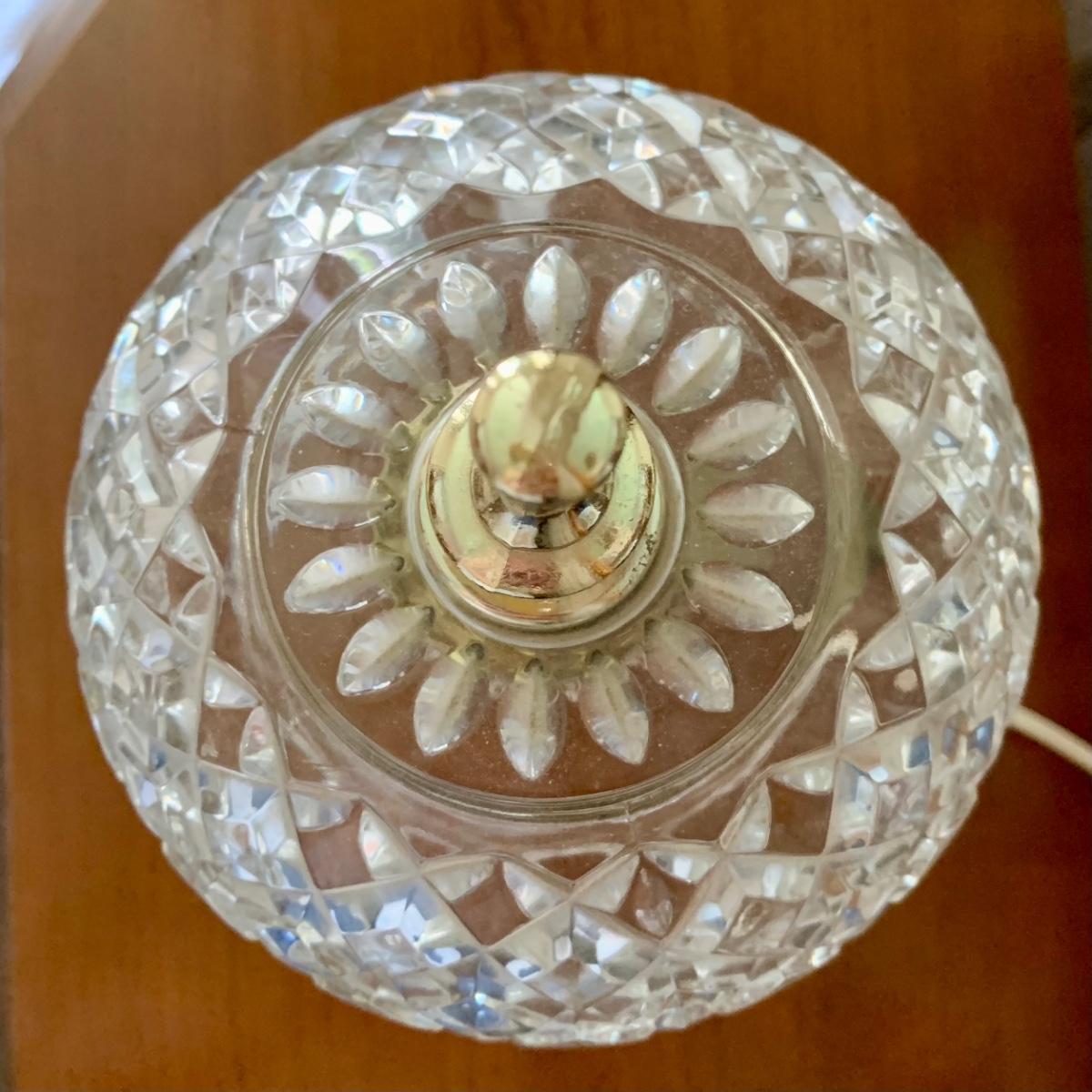 LOT 64: Vintage Single Door Cherry Wood Accent Hall Cabinet, Cut Crystal Table Lamp w/ Crystal Shade, & Long Rectangular Wall Mirror
