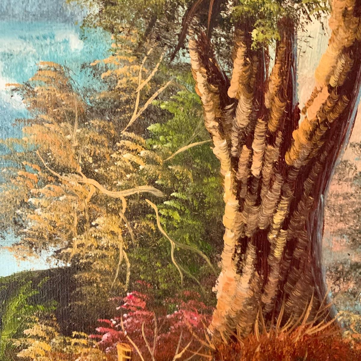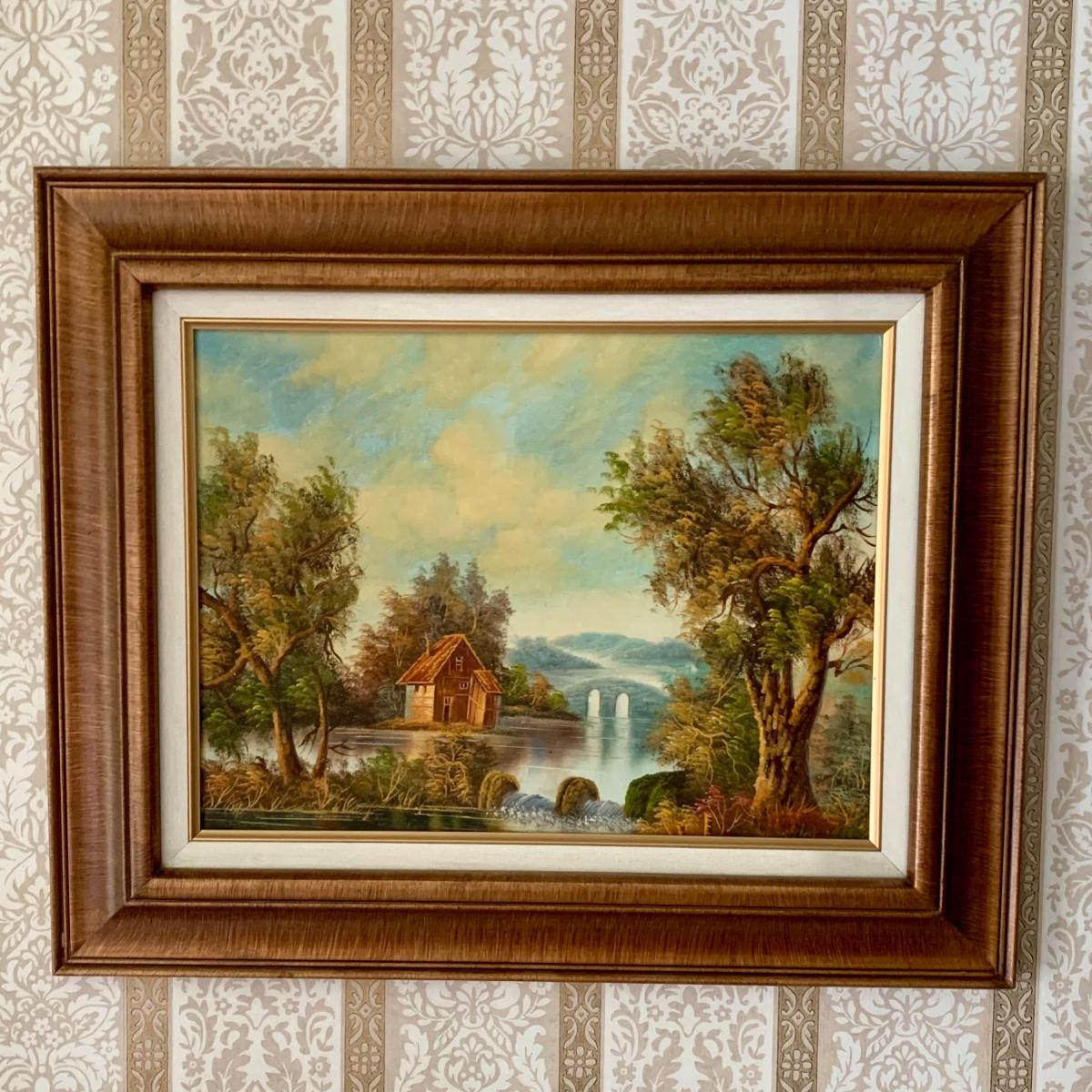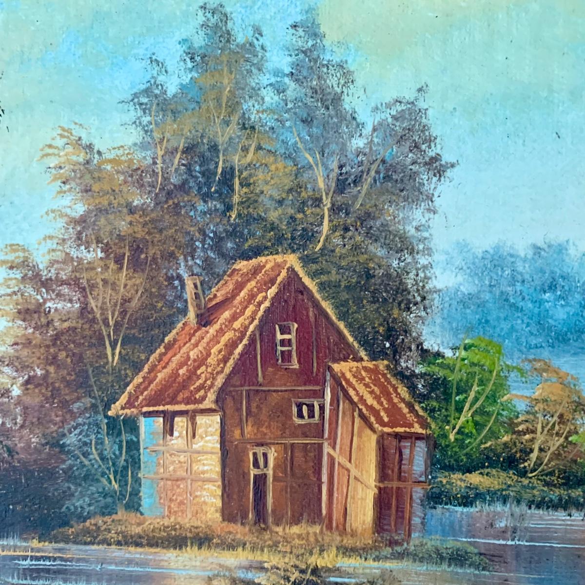LOT 65: Beautiful Landscape Oil Painting: Hencho En Mexico: Farmhouse along River