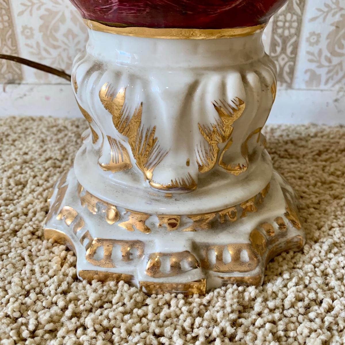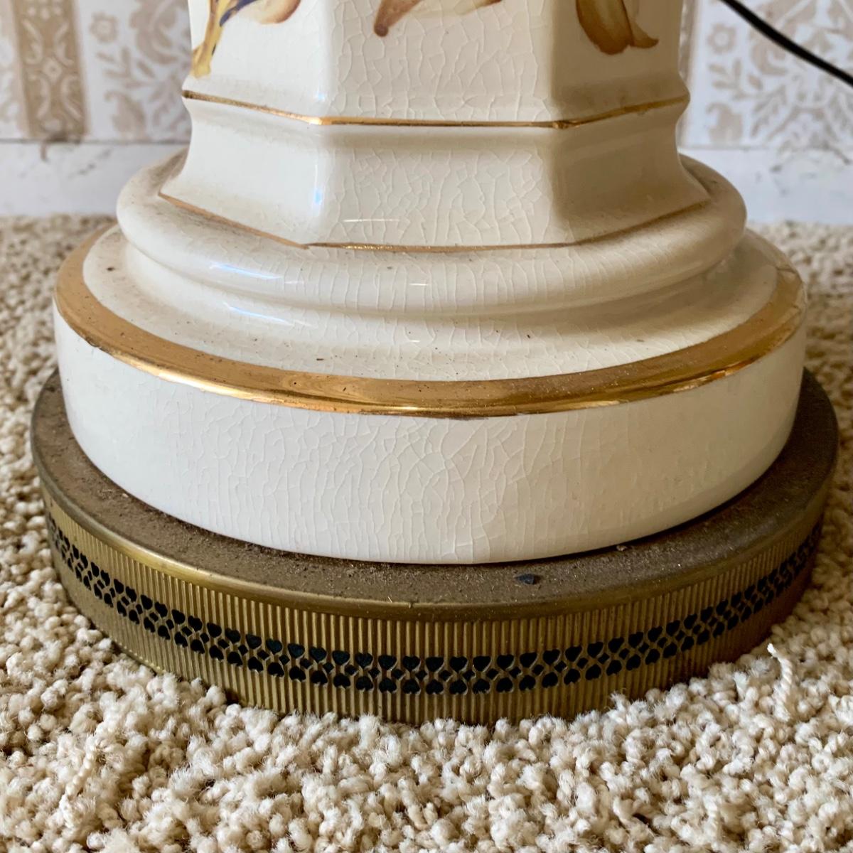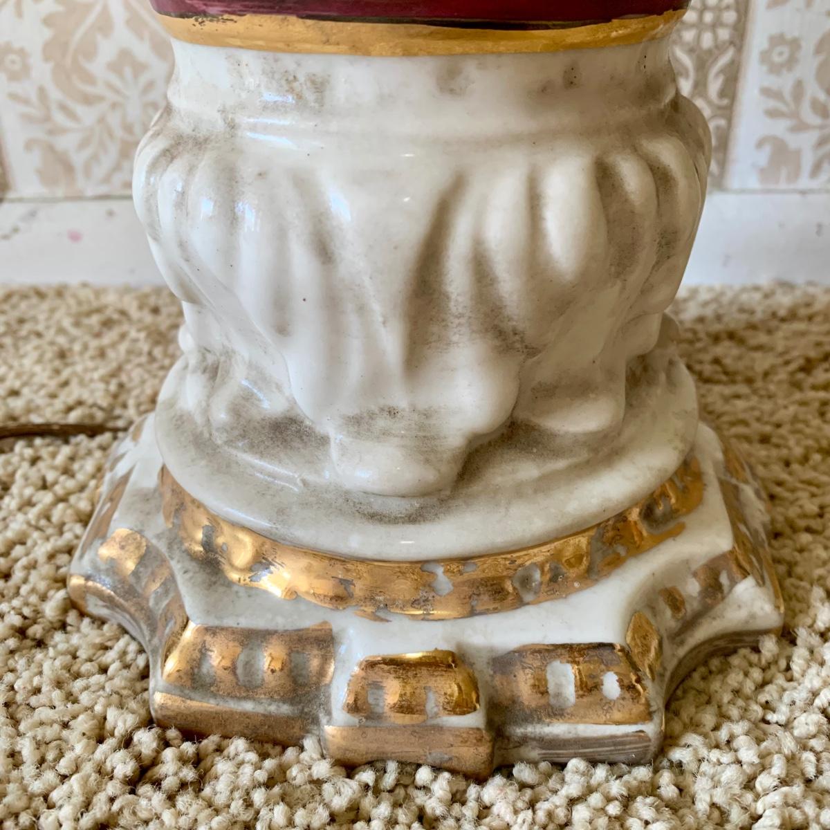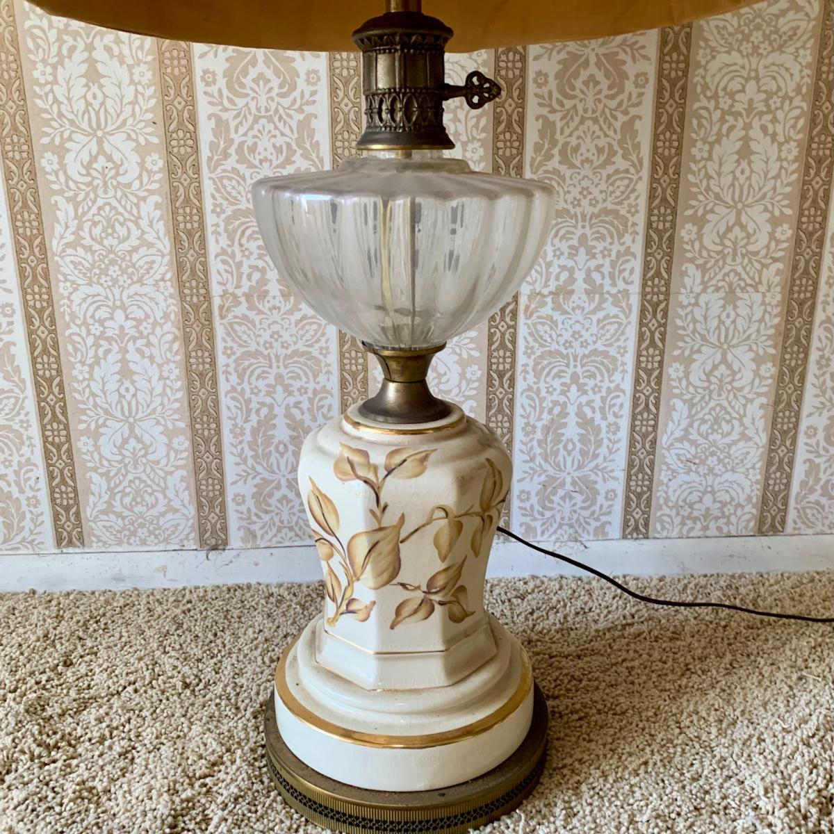 LOT 68: Vintage 1950's Hollywood Regency Urn Style Omsco Deveraux Philadelphia Table Lamp & Ceramic w/ Brass Accents Faux Oil Lamp w/ Shade