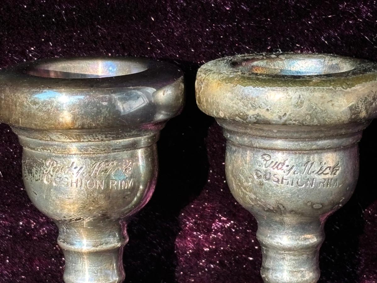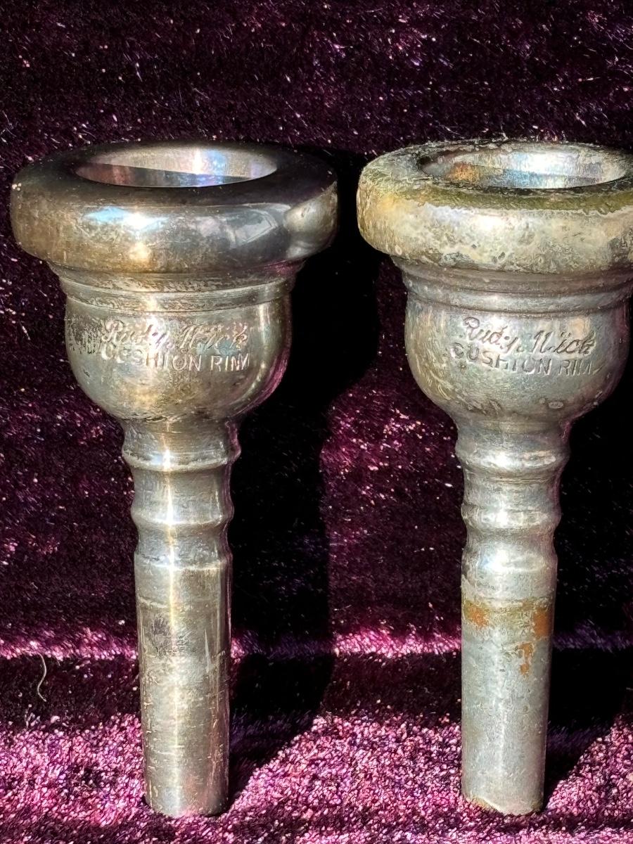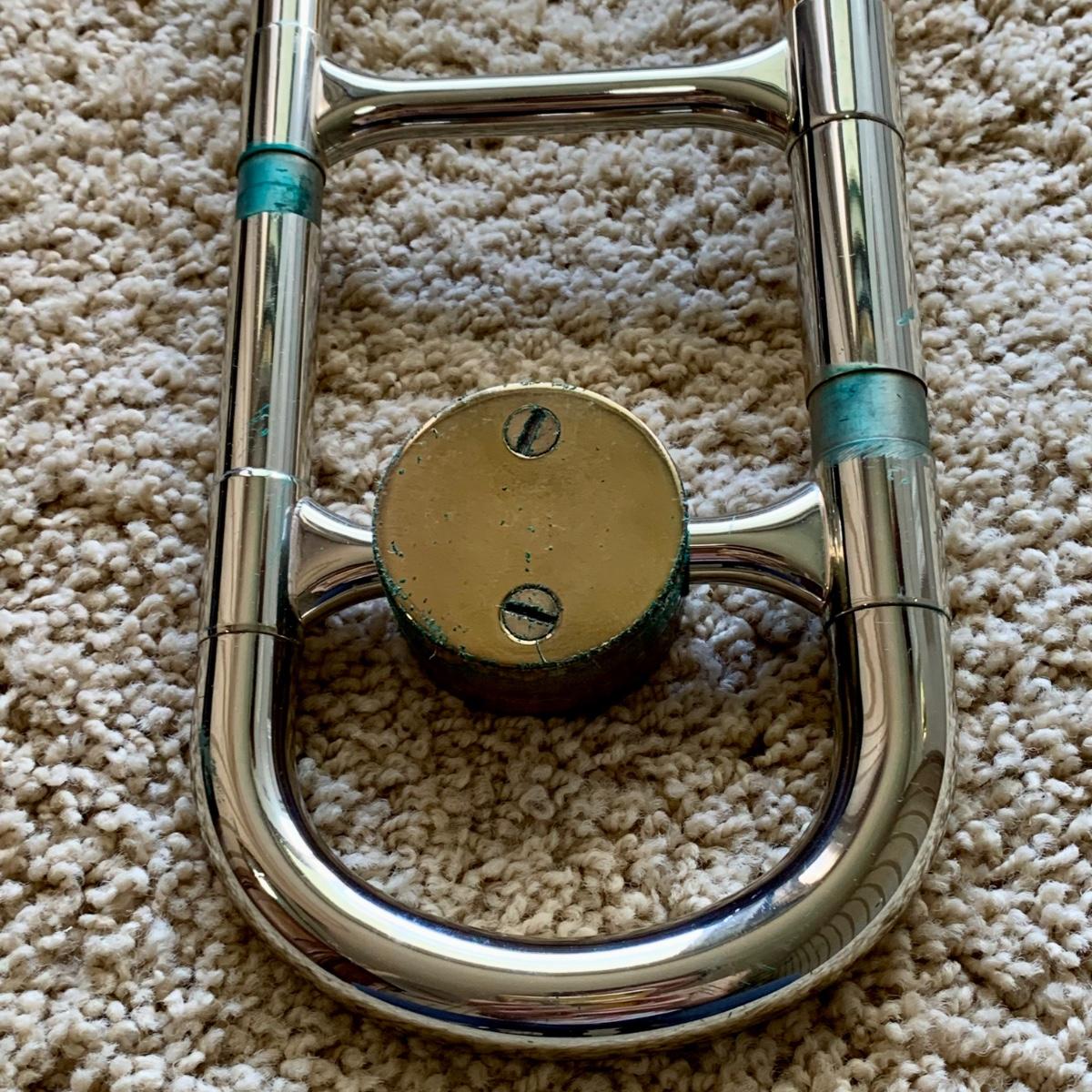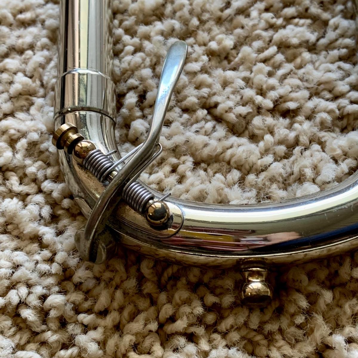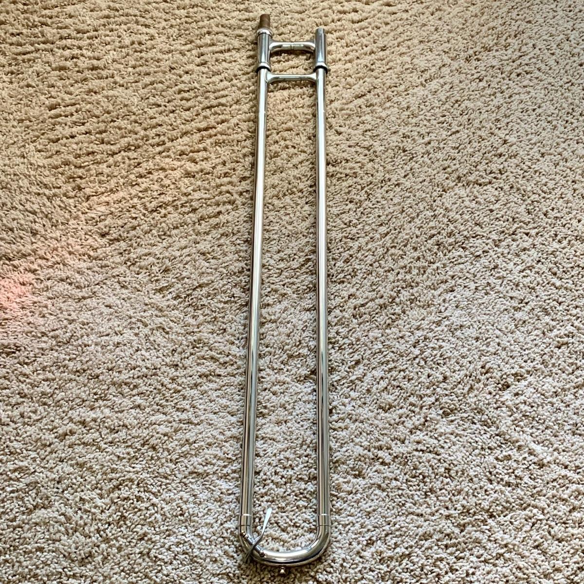 LOT 69: Vintage 1950's Olds "Super" Trombone F. E. Olds & Son Fullerton CA w/ Rudy Muck Cushion Rim Mouth Pieces, Case w/ Keys, & Music Stand
