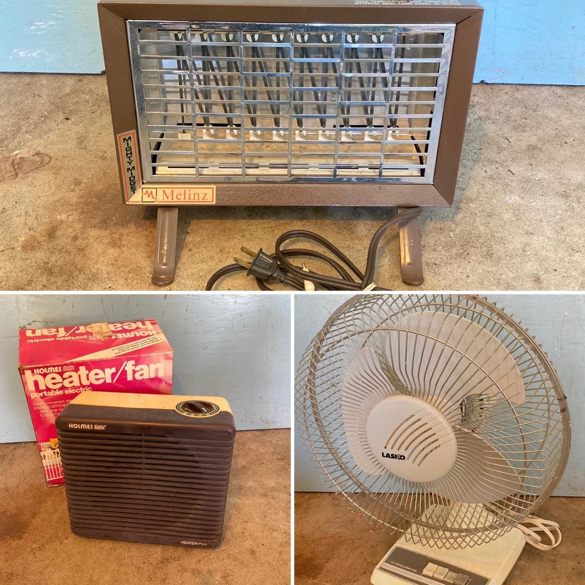 LOT 90G: Melinz Space Heater, Holmes Portable Heater / Fan and Lasko 12 inch Oscillating Fan