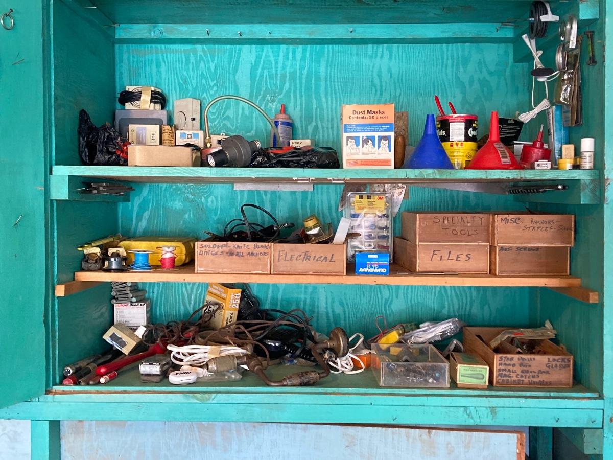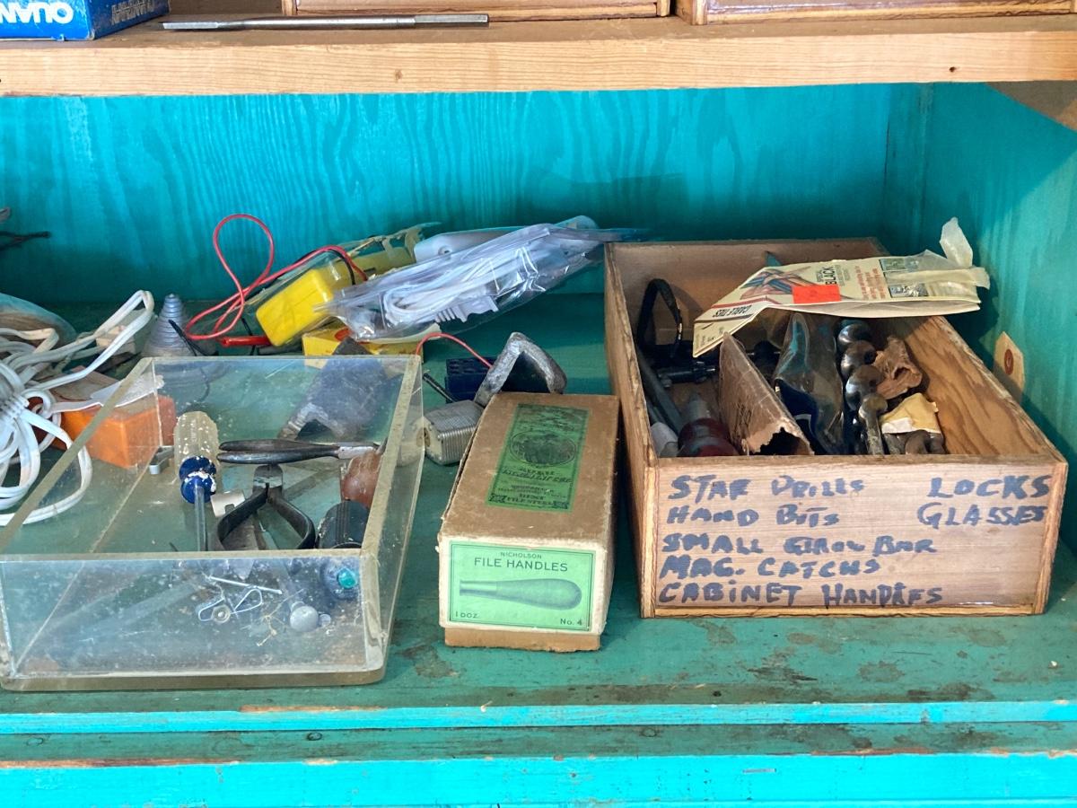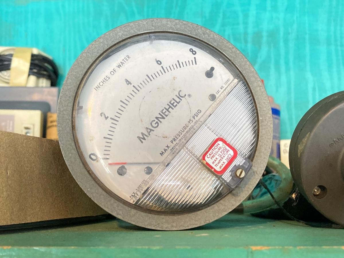 LOT 95G: Contents of Wooden Cabinet - Magnehelic Gauge, Tools, Files, Drill Bits and Much More