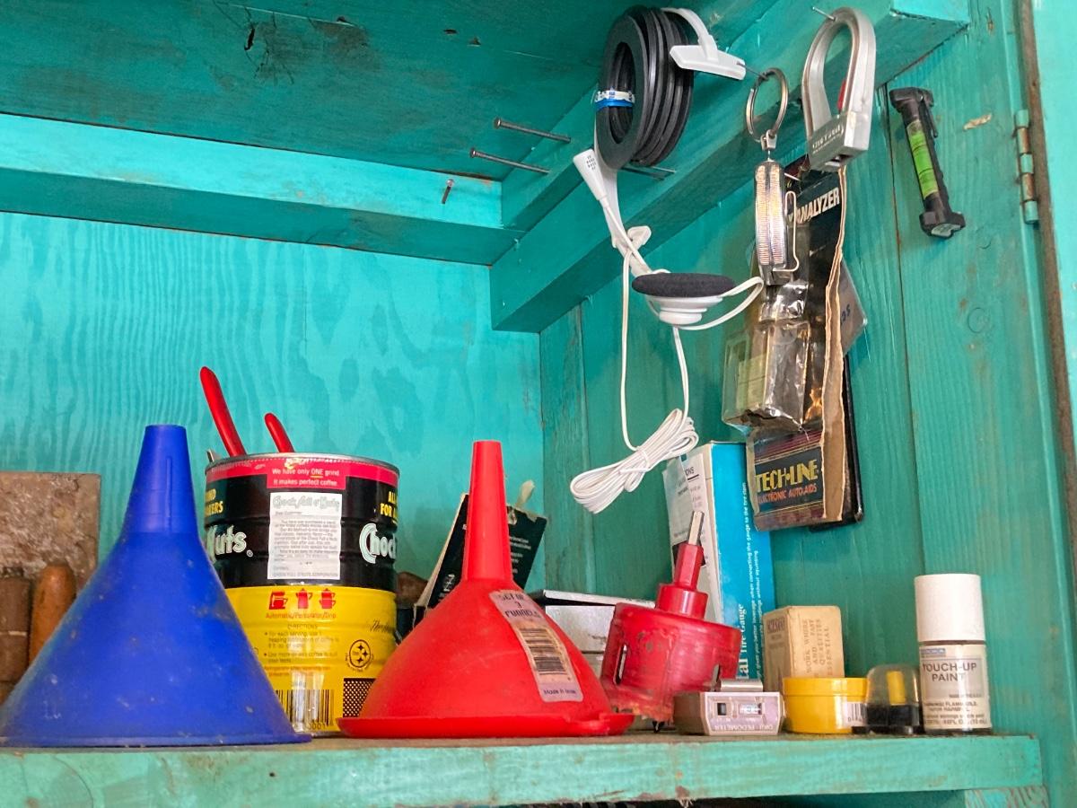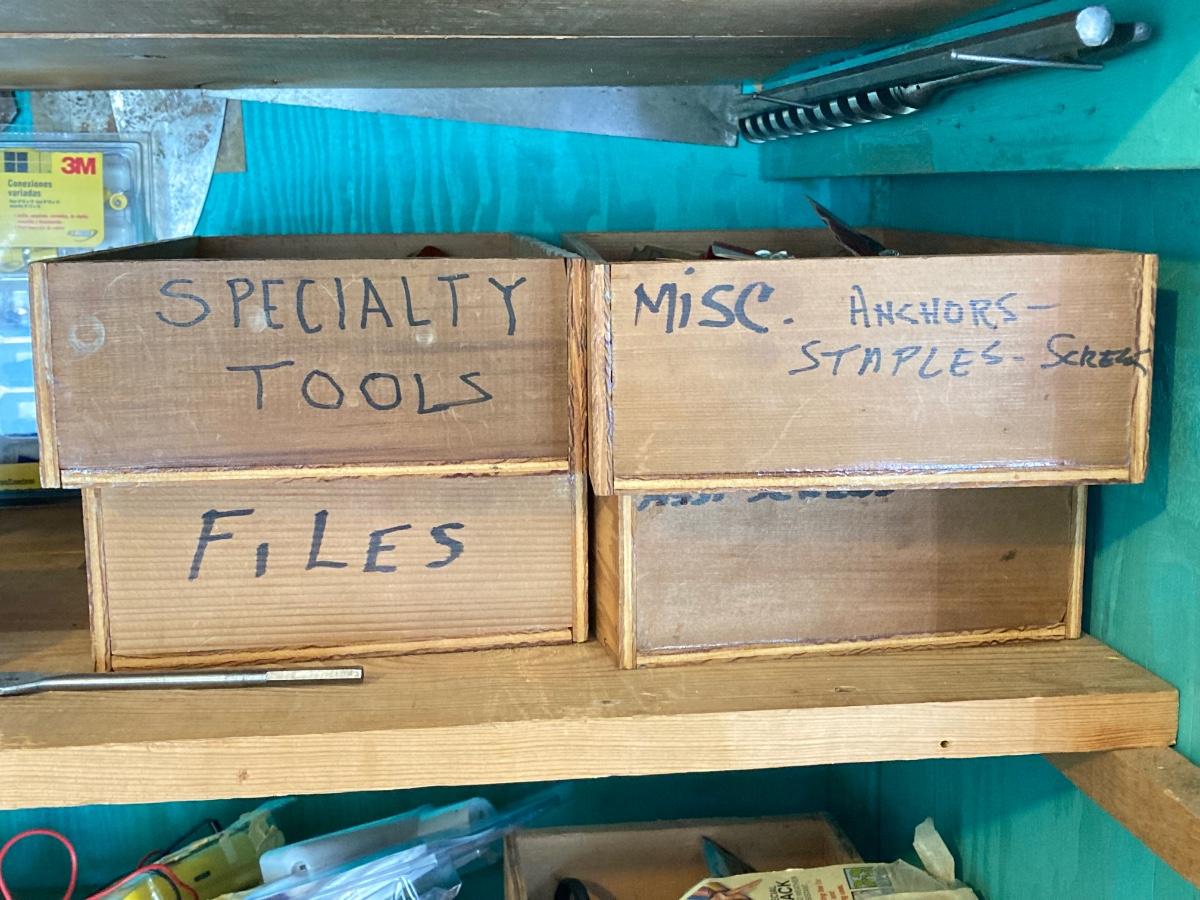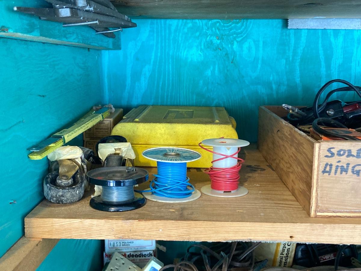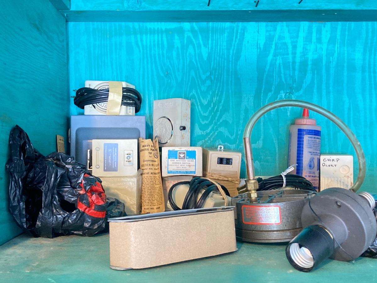 LOT 95G: Contents of Wooden Cabinet - Magnehelic Gauge, Tools, Files, Drill Bits and Much More