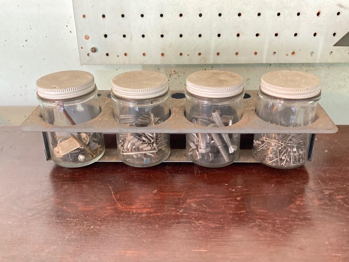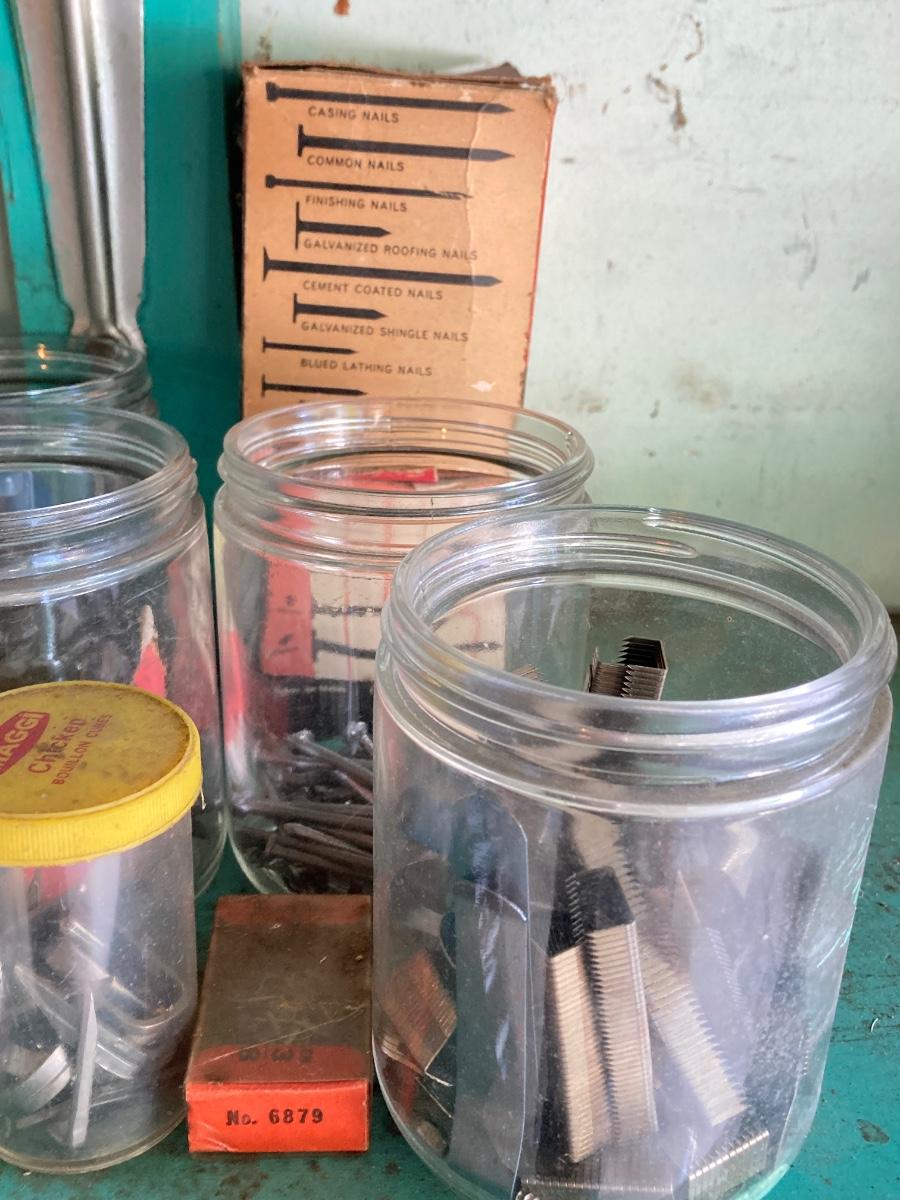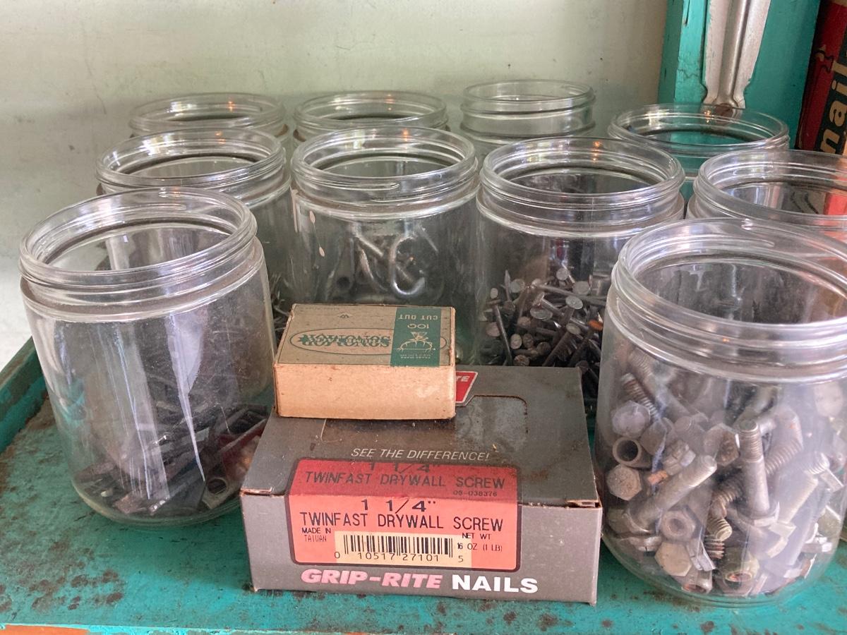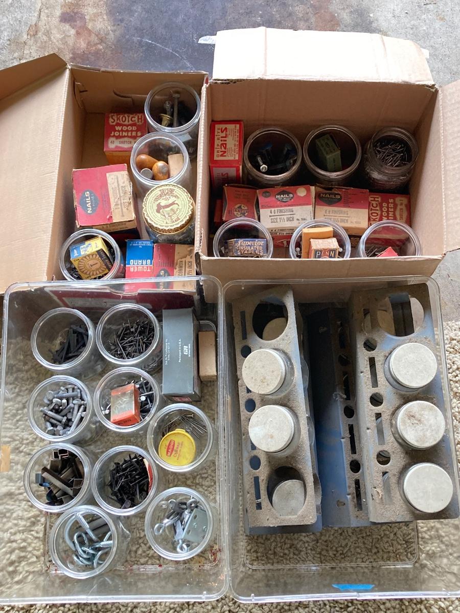 LOT 100G: Large Hardware Lot - Glass Jars / Boxes with Contents