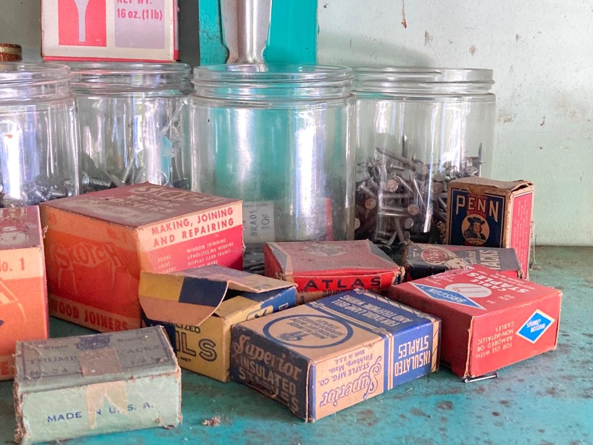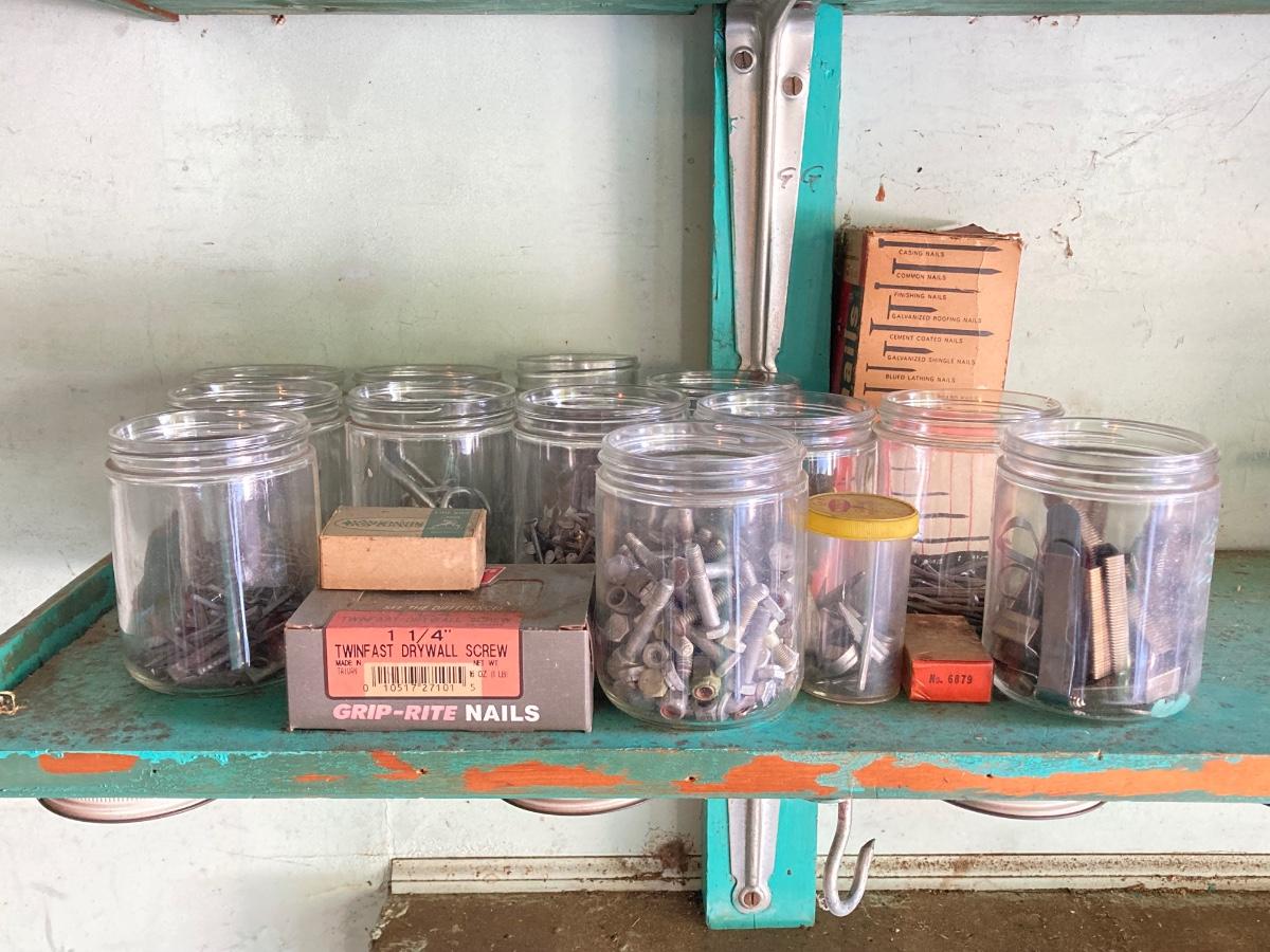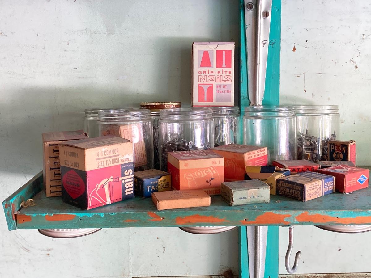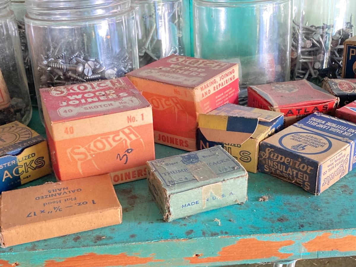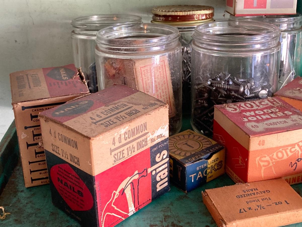 LOT 100G: Large Hardware Lot - Glass Jars / Boxes with Contents