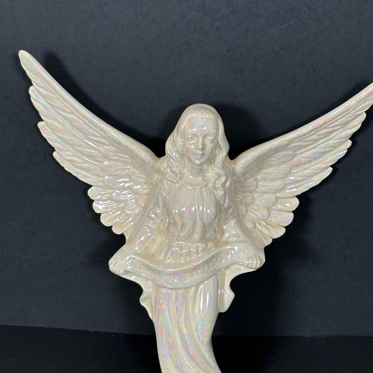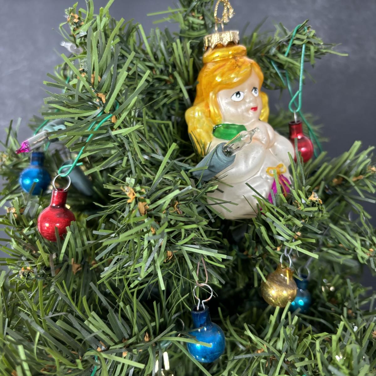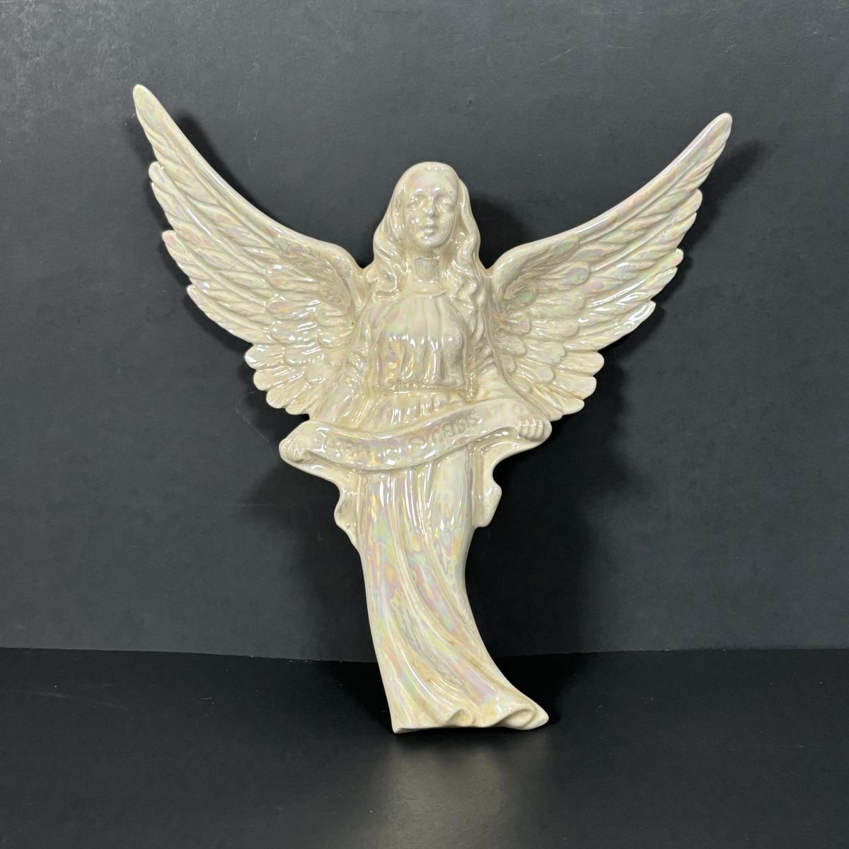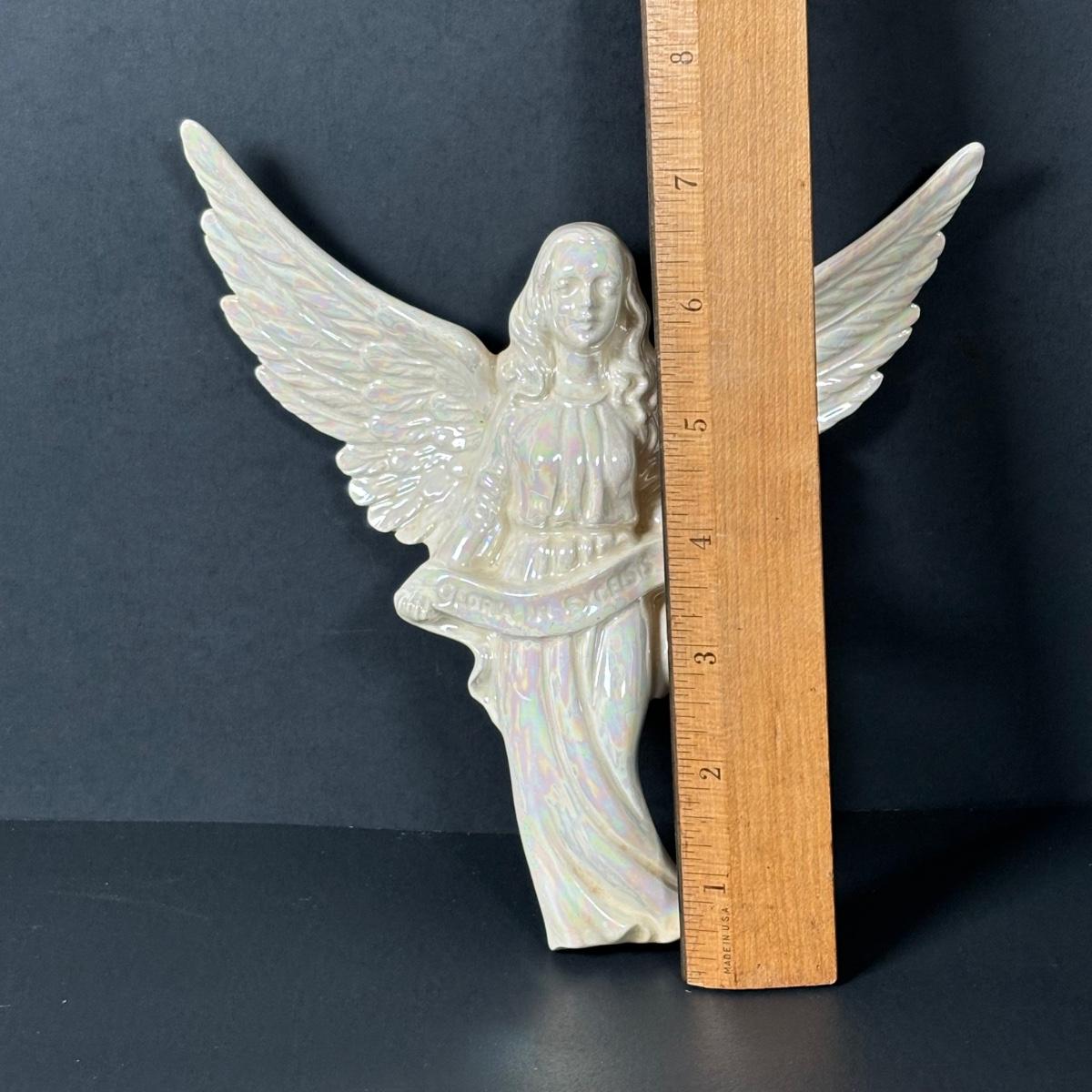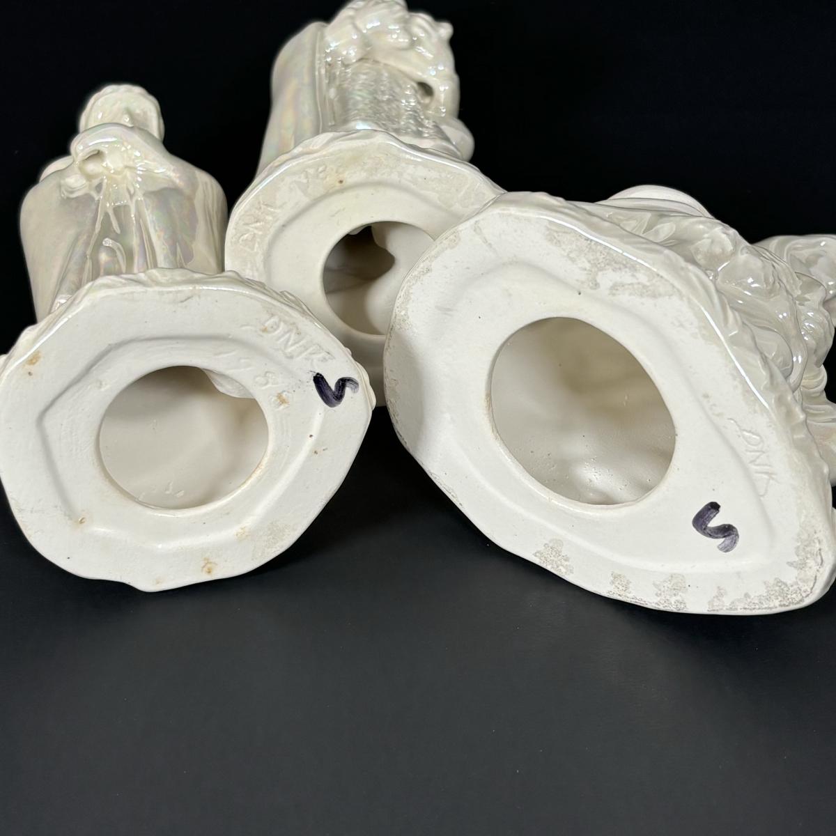 LOT 109: Mother of Pearl Glazed Ceramic Nativity Set & 24" Decorated Christmas Tree