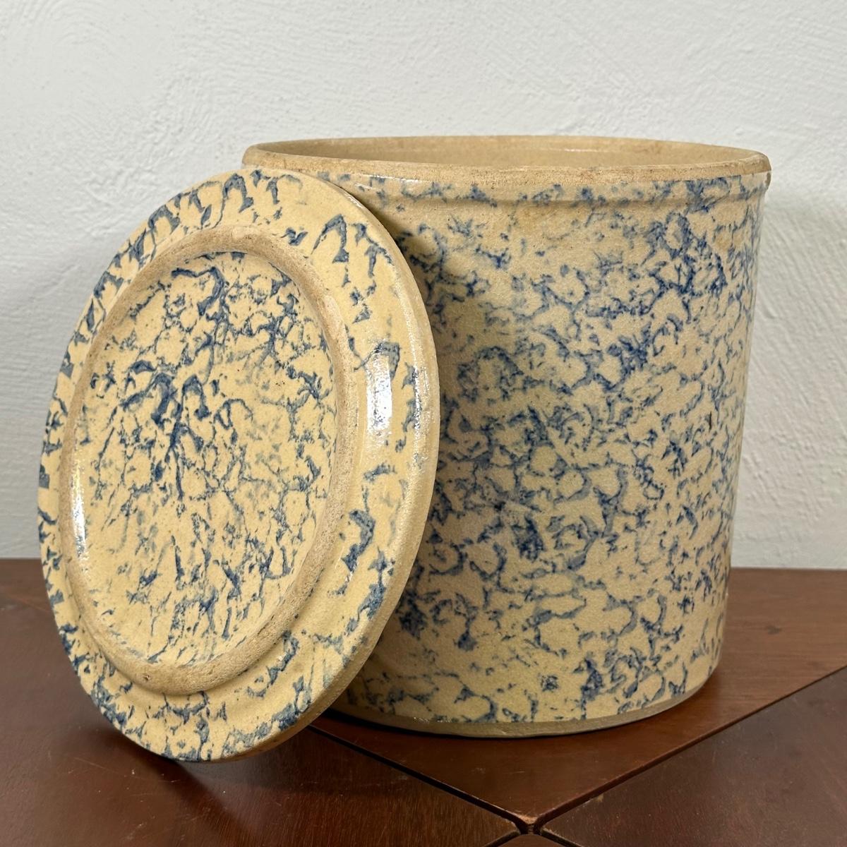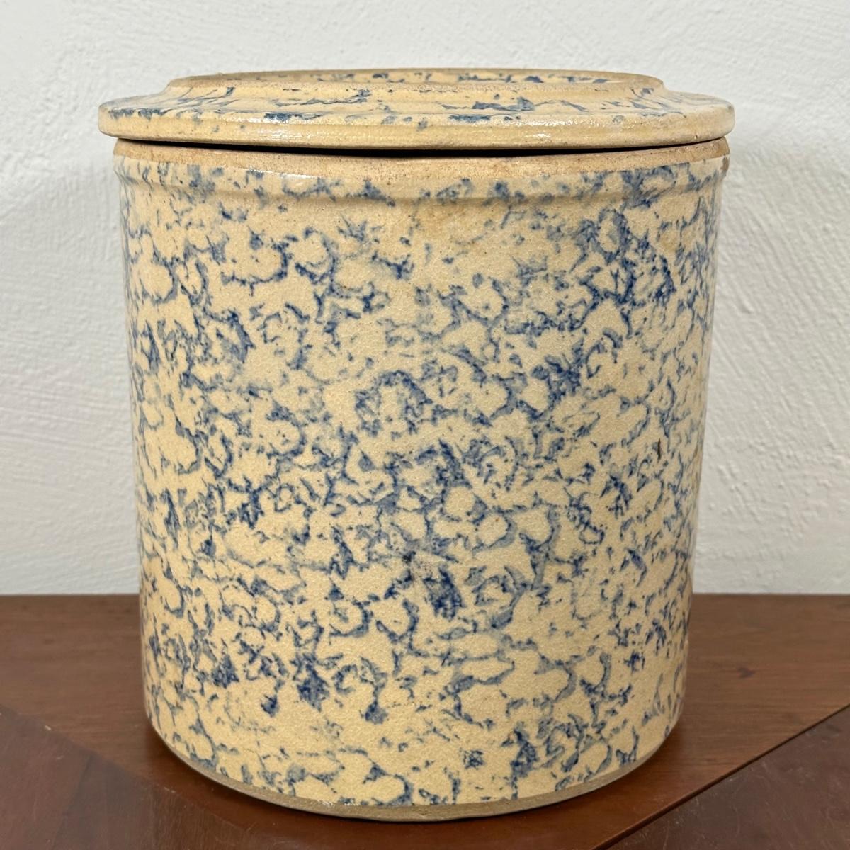 LOT 106B: Roseville Pottery Blue Spongeware Crock w/ Lid 700-c