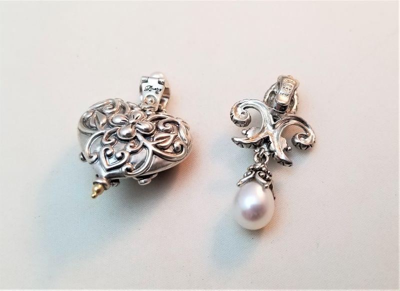 Lot #107  2 beautiful enhancer/pendants - Barbara Bixby - sterling with Turquoise & Pearl accents