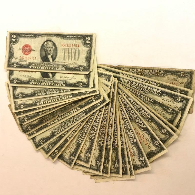 Twenty-Eight $2 Dollar Bills with dates ranging from 1928 to 1963