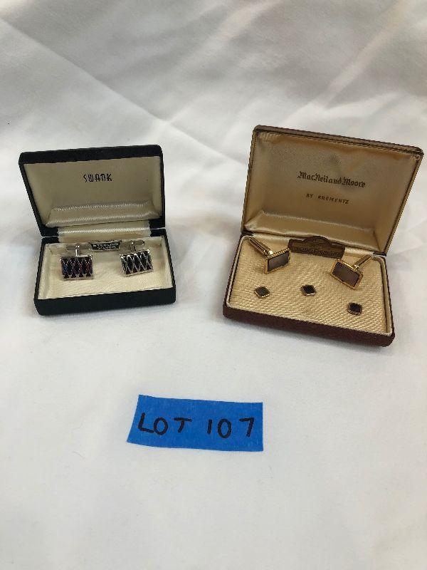 Lot - 107 - Swank Sterling Silver Cuff Links and Mac Neiland Moore, by Krementz Cuff Links (14 KT Rolled Gold Overlay)