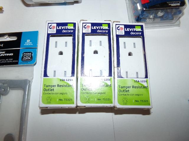 GE FUSES, OUTLETS, SWITCH PLATES, APPLIANCE OUTLET, HEAT SHRINK TUBING, WIRE TRACKER-SPERRY KLEEN TOOL, CONDUIT CLAMPS, WIRE CONNECTORS, VOLTAGE MOUNTING BRACKETS, WIRE CRIMP TERMINAL, CORNER POST INSULATORS, TAMPER RESISTANT OUTLETS, 3 FUNCTION CONTROL SWITCH