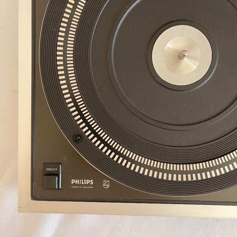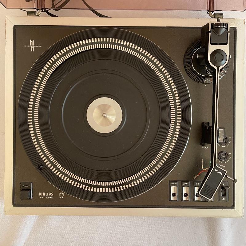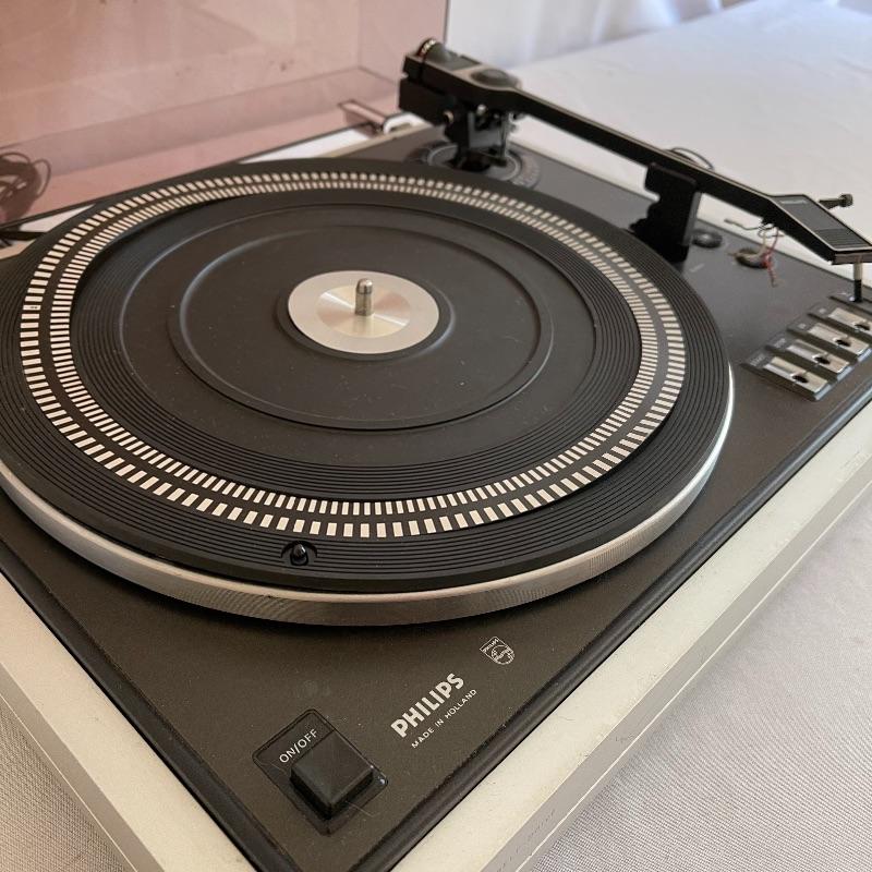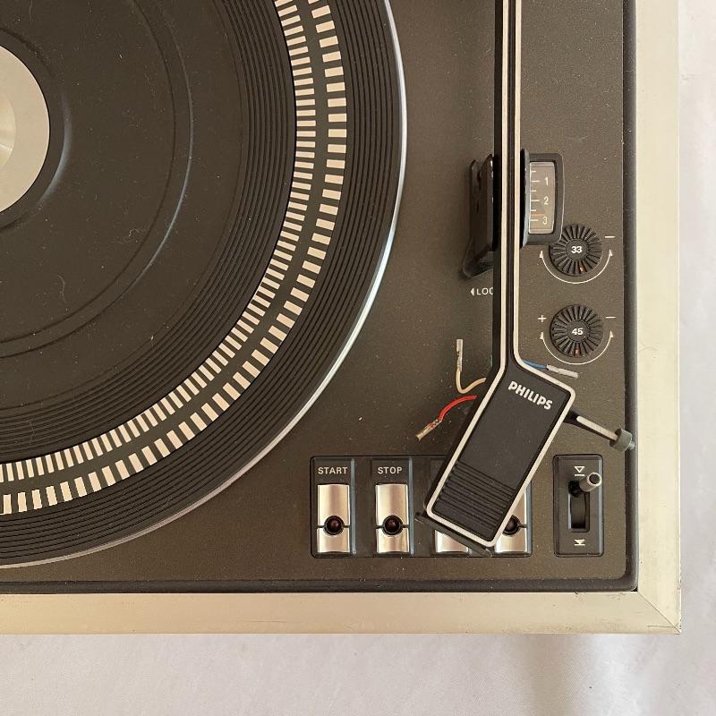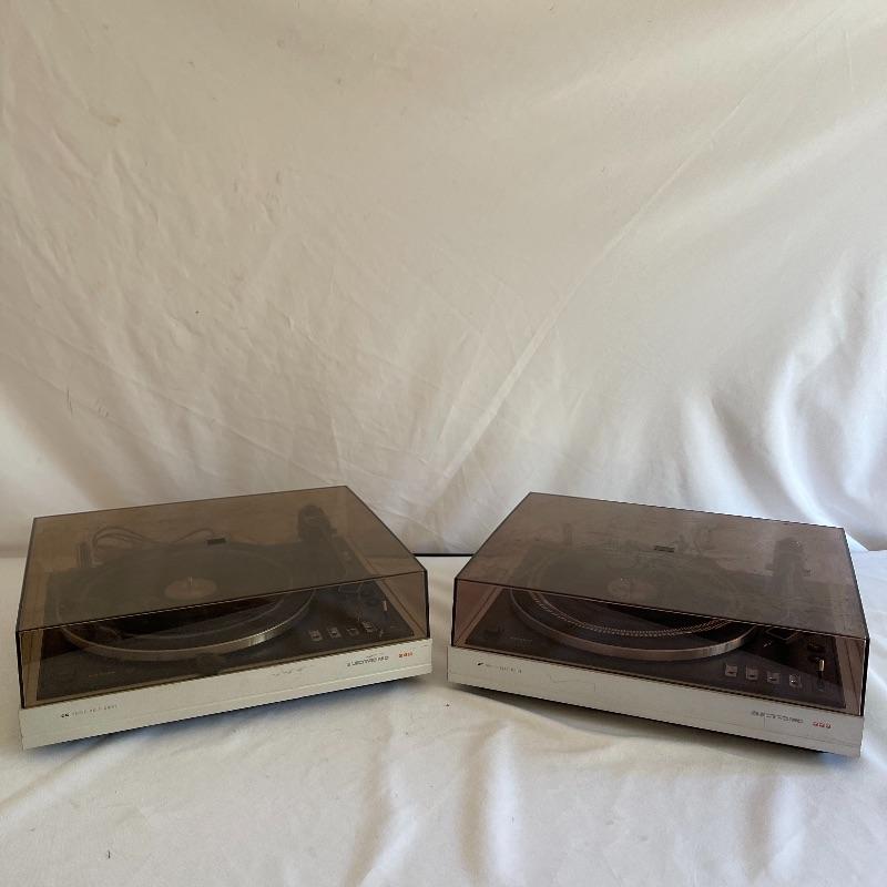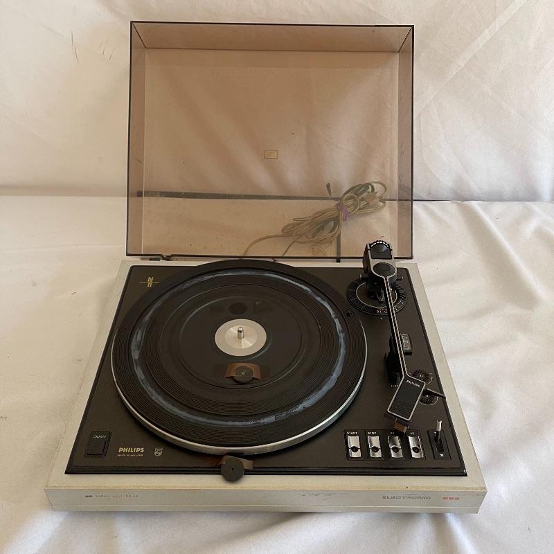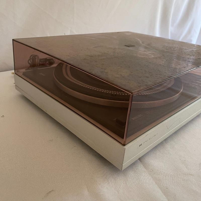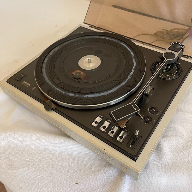 Phillips Electronic 222 turntables, 1979-82. Both are type 22GA222/44B and both powered on when plugged in. Lids are in seemingly good condition.