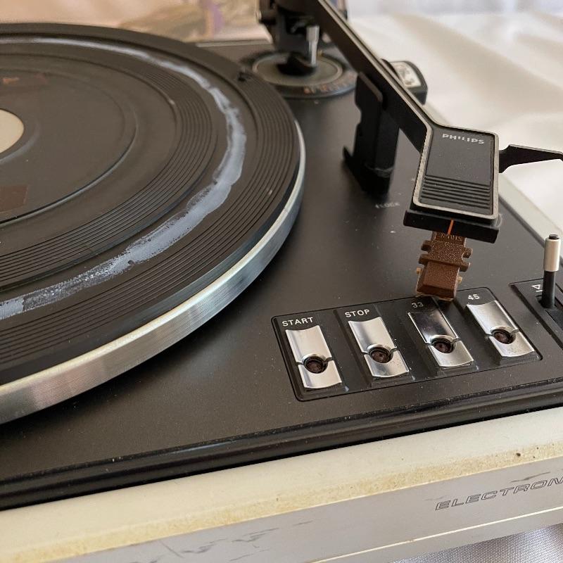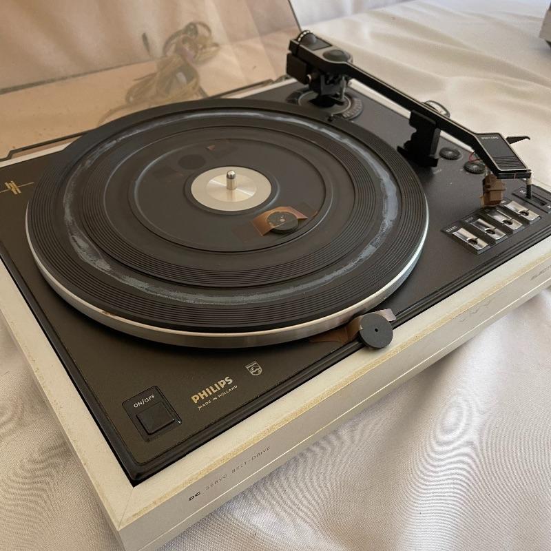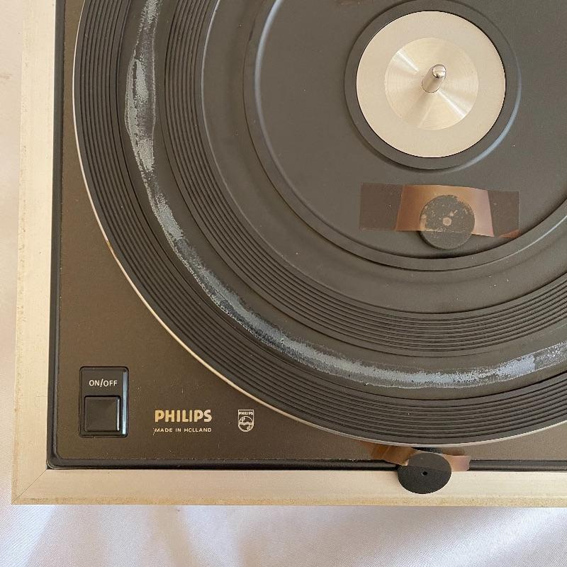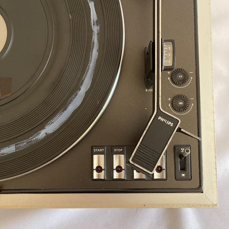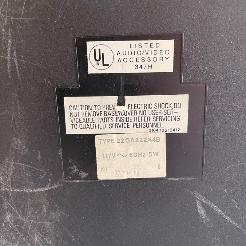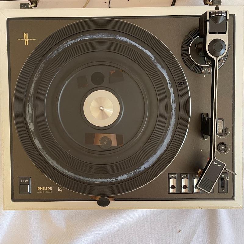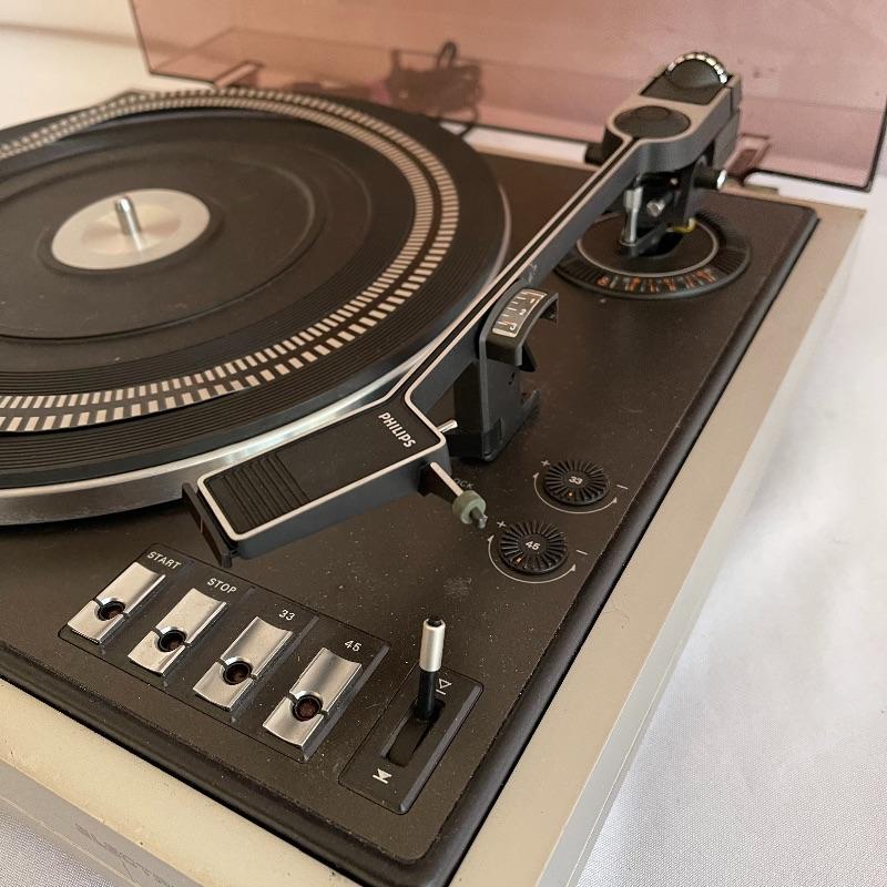 Phillips Electronic 222 turntables, 1979-82. Both are type 22GA222/44B and both powered on when plugged in. Lids are in seemingly good condition.