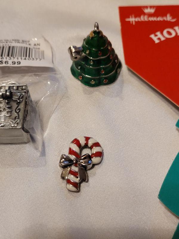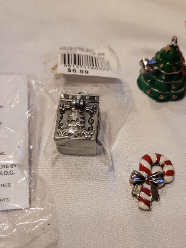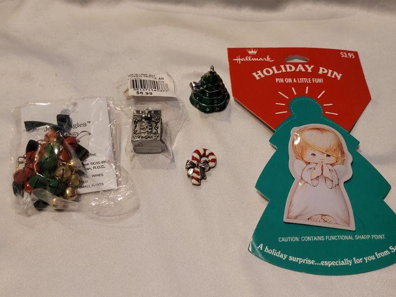 Lot 107: New Christmas Brooch, Candy Cane Charm/Token, Prayer/Wish Boxes and Earrings