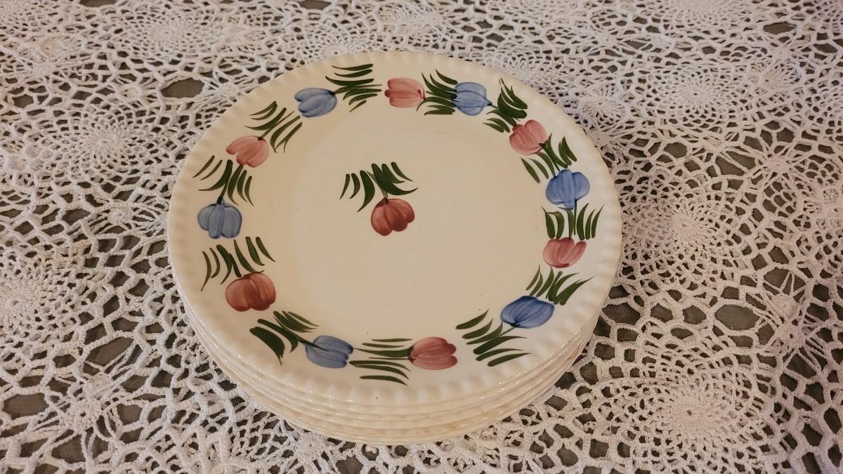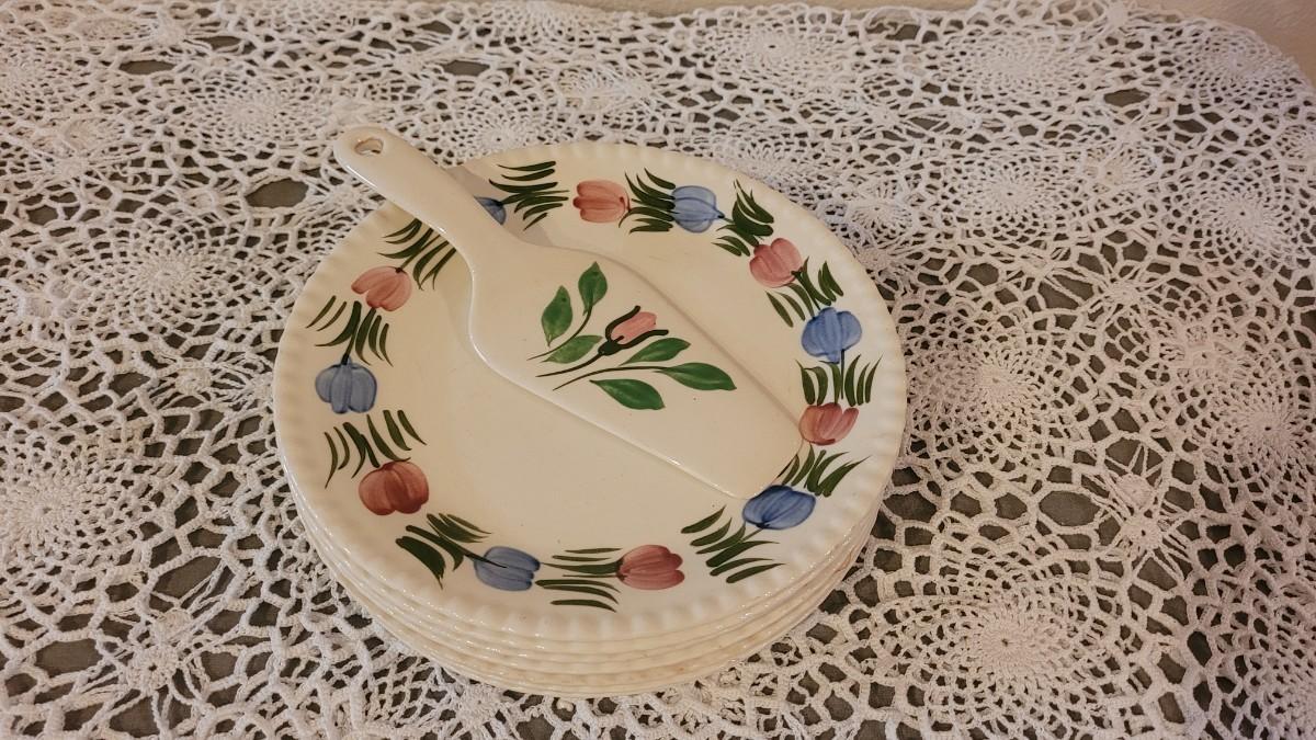 Lot 107: Blue Ridge Handpainted 9" Plates (7) with Cake Server