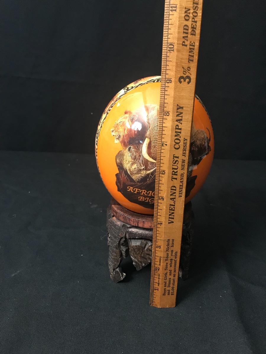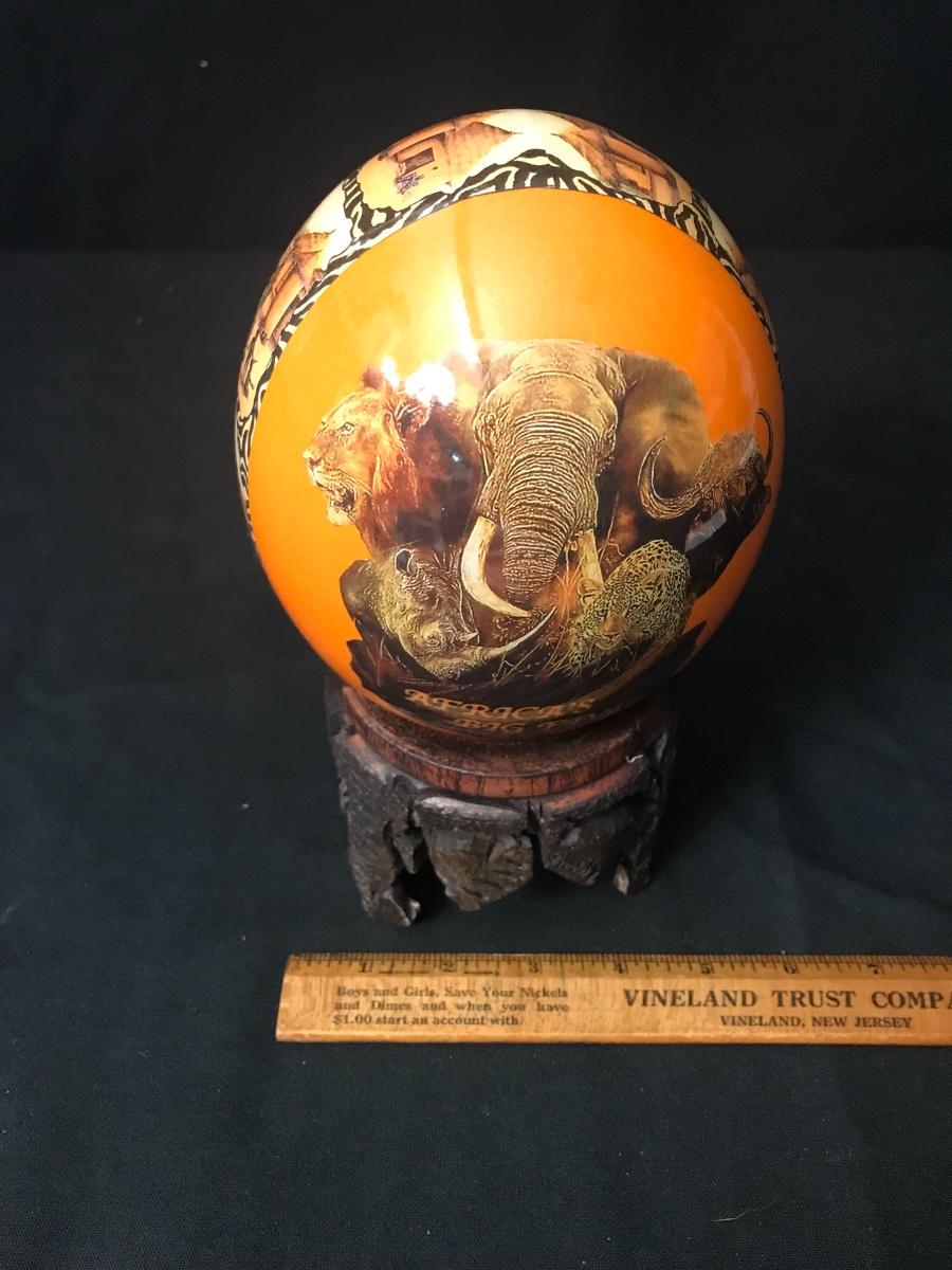 Decorative Egg On Carved Wood Stand - Africa’s Big Five Animals. Please see all pictures as they are the best representation of the items. The pictures show condition, measurements if taken, and what is included in the lot. Due to the large amount that we photograph and the time frame, we are not always able to take measurements. All items unless noted, are pre-owned and have been used. If you purchased furniture, you must bring help. We do not allow one person to carry large furniture out on their own. Bring help, tools and a truck for the safety of our client’s homes, and your personal safety. Company policy. Thank you.