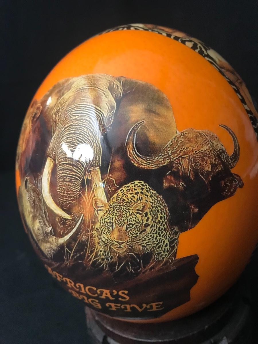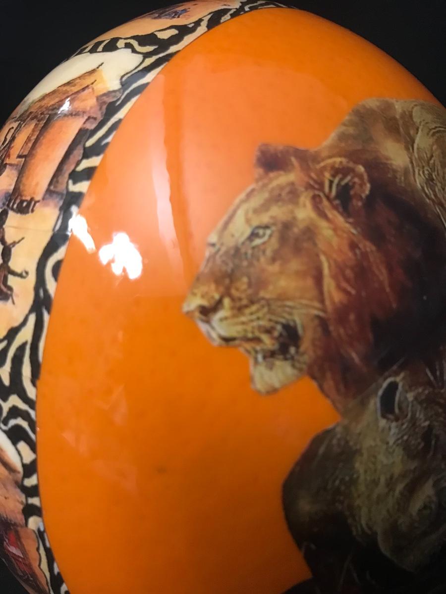 Lot 107: Decorative Egg On Stand - Africa’s Big Five Animals