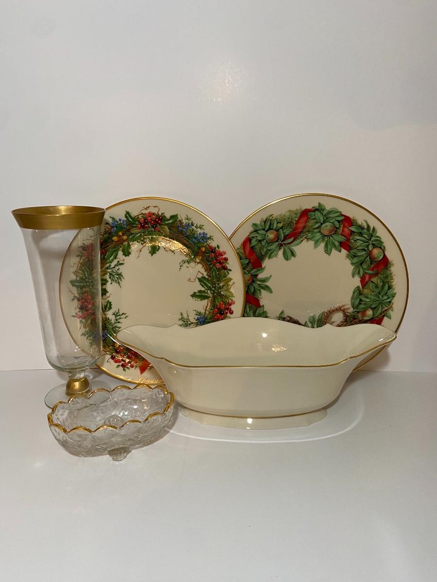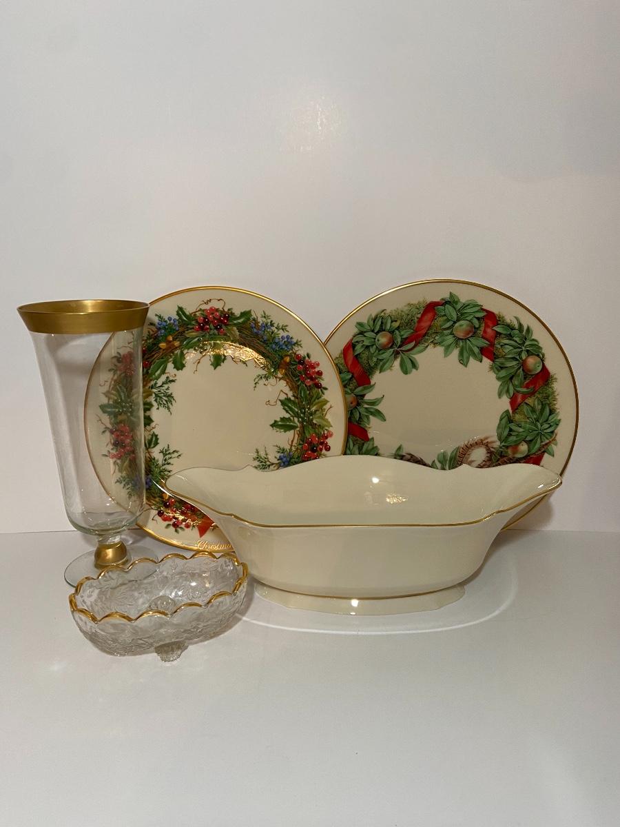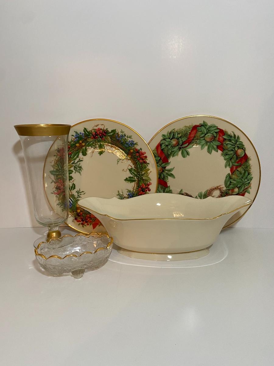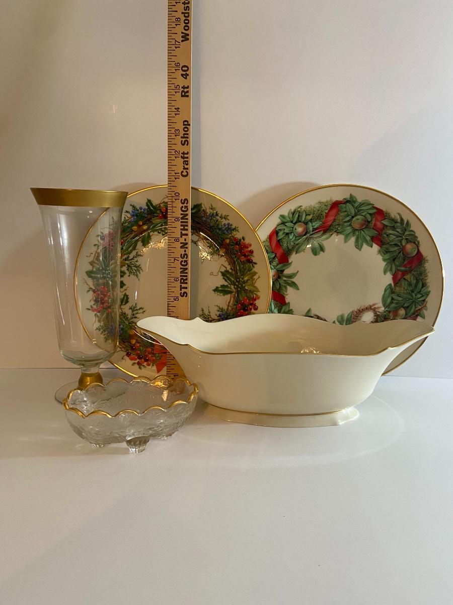 Lenox Collectible Christmas dishes, Lenox candy dish, Beautiful gold trim vase and gold trim candy dish. Please see all pictures as they are the best representation of the items. The pictures show condition, measurements if taken, and what is included in the lot. Due to the large amount that we photograph and the time frame, we are not always able to take measurements. All items unless noted, are pre-owned and have been used. If you purchased furniture, you must bring help. We do not allow one person to carry large furniture out on their own. Bring help, tools and a truck for the safety of our client’s homes, and your personal safety. Company policy. Thank you.