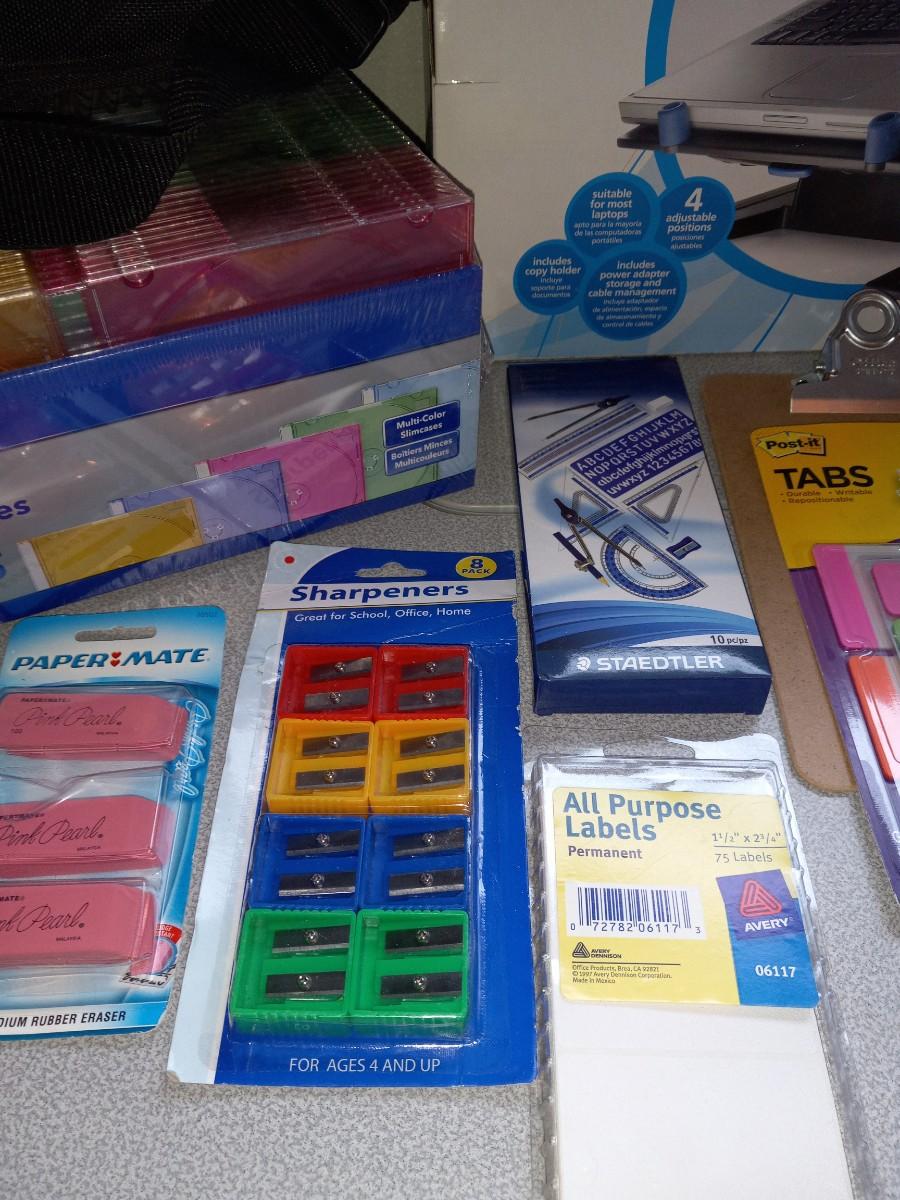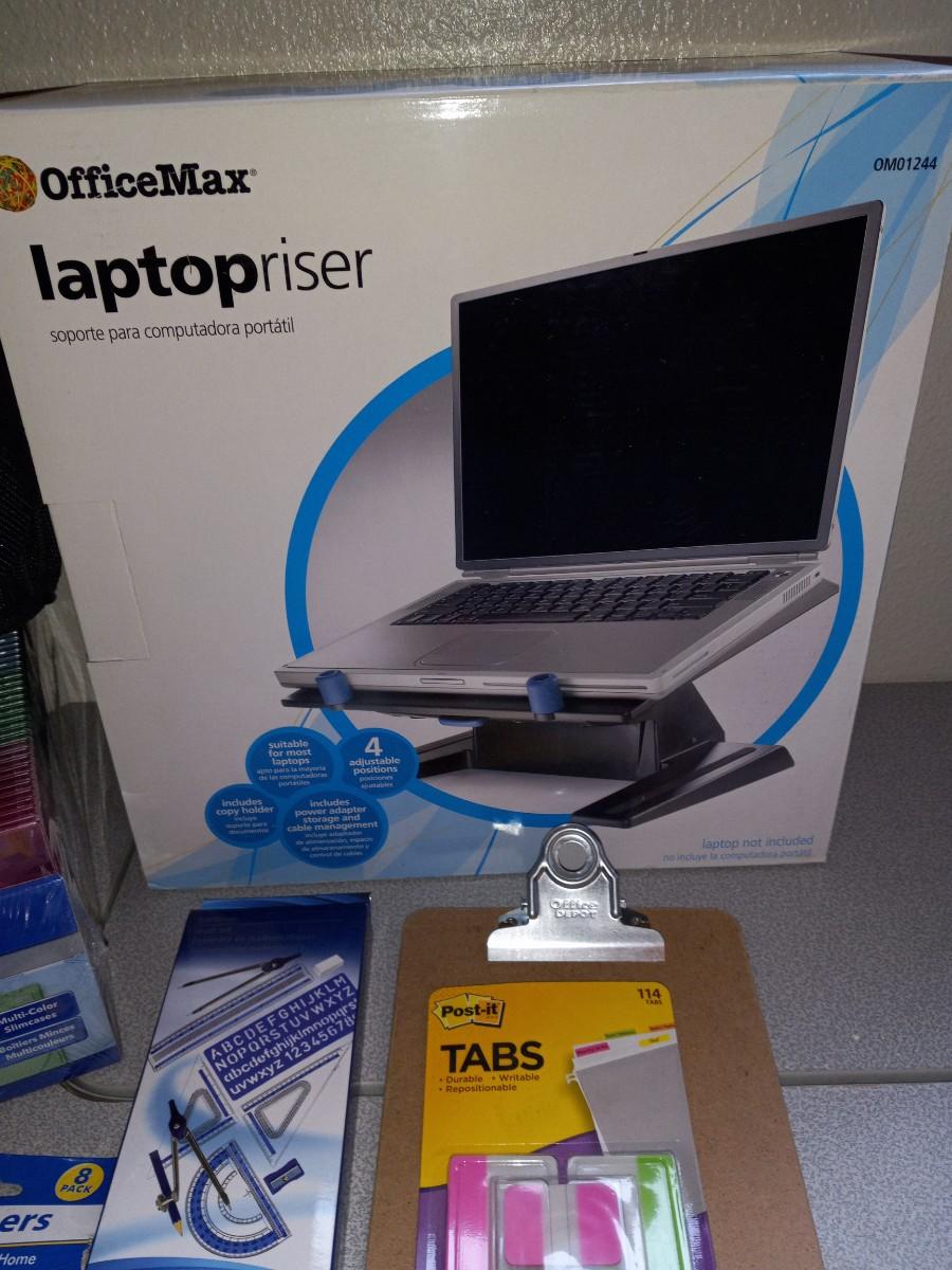 LAPTOP RISER, CARRY CASE AND VARIOUS OFFICE SUPPLIES