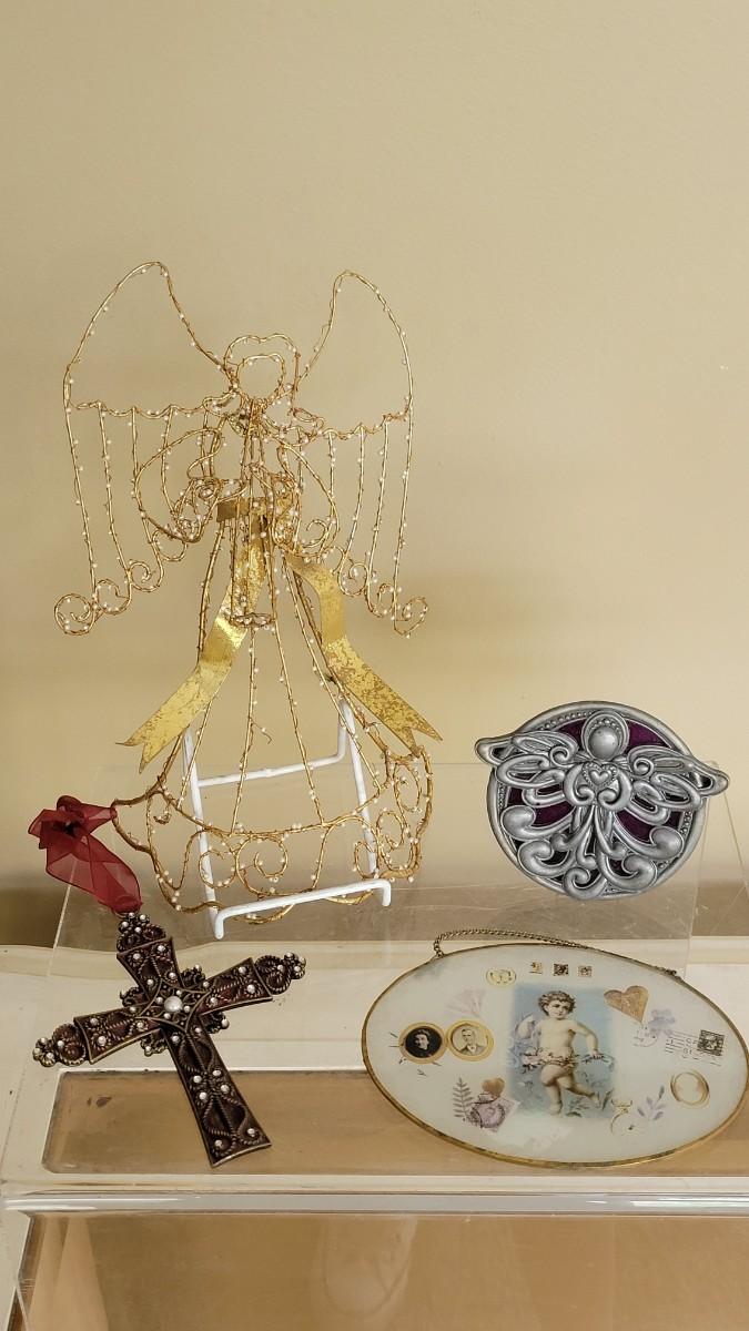 Wrapped wired and seed bead Angel, metal angel with purple glass Deco, and Cupid Light Catcher
