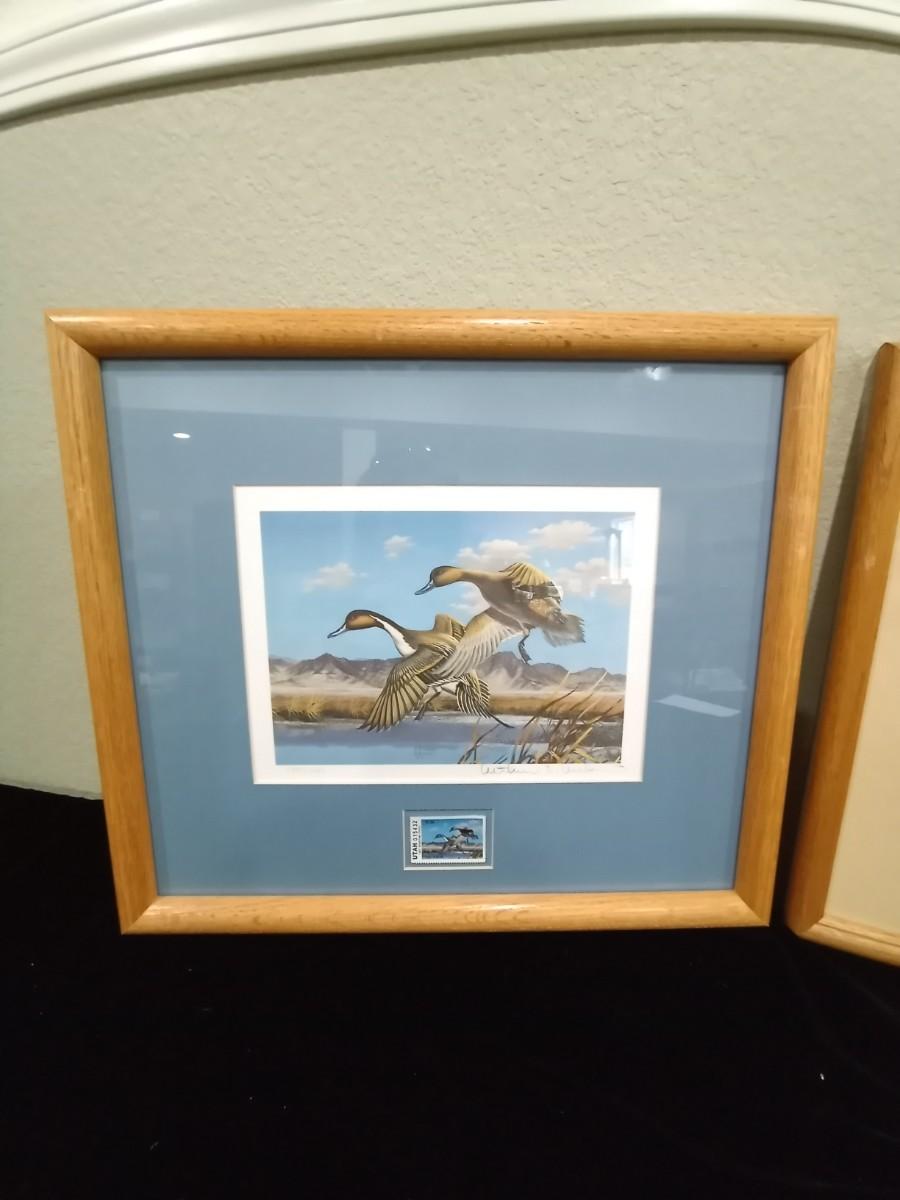 LOT 107 TWO FRAMED DUCKS UNLIMITED STAMP PRINTS