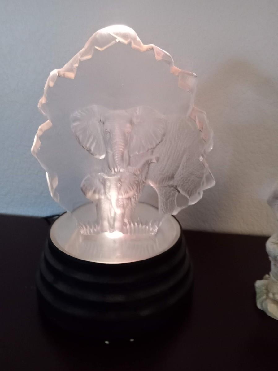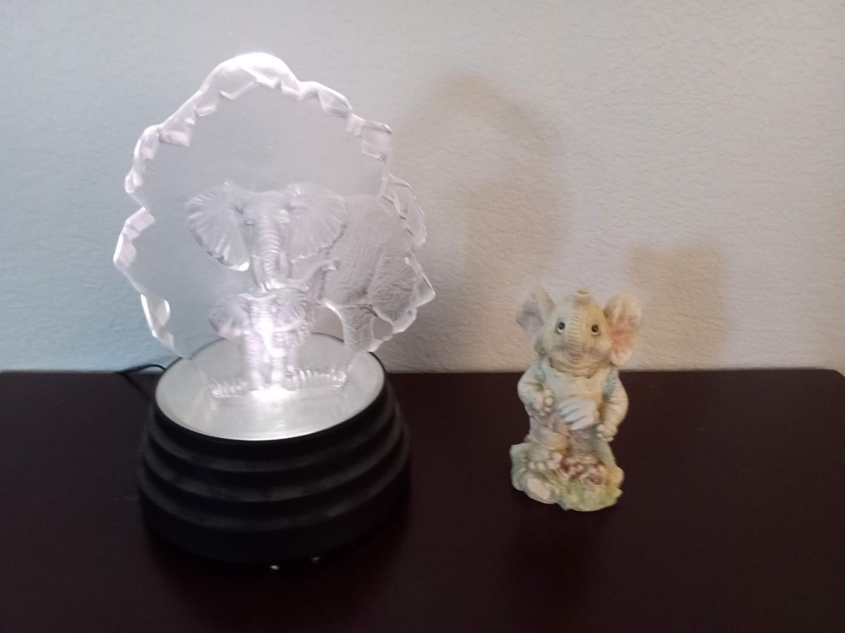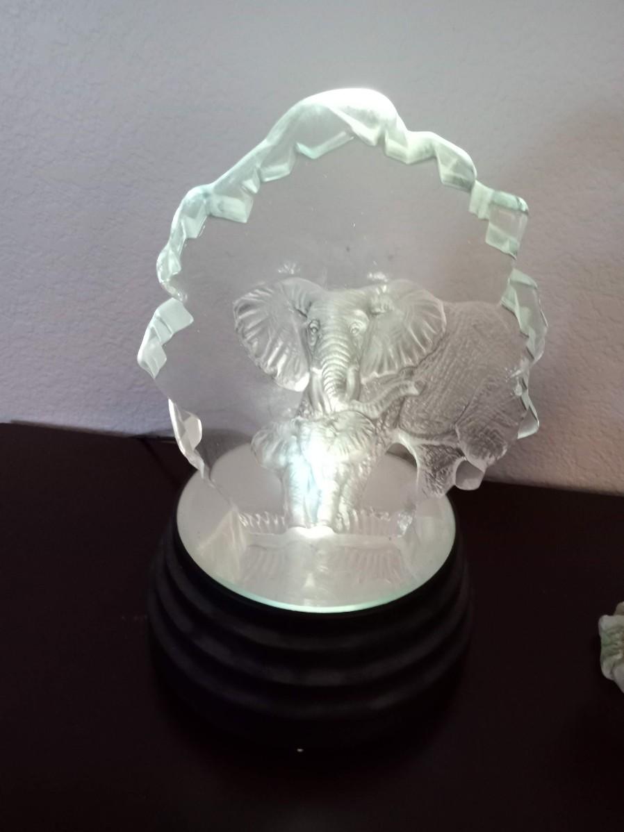 THE ELEPHANTS ON A LIGHTED PRISM IS 10" TALL