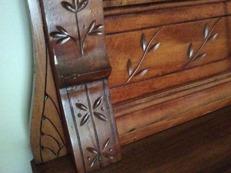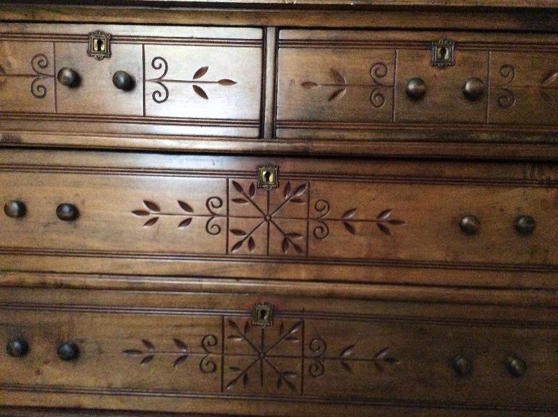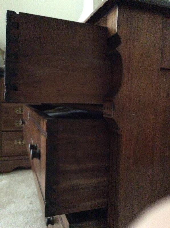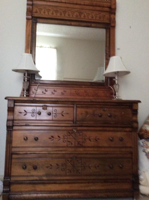 Antique oak dresser with matching mirror, 41 L 21 W. 77 H. Beautiful carvings. Bring help to move.
