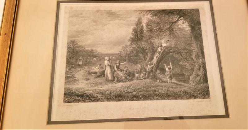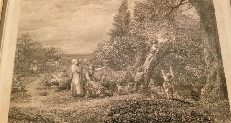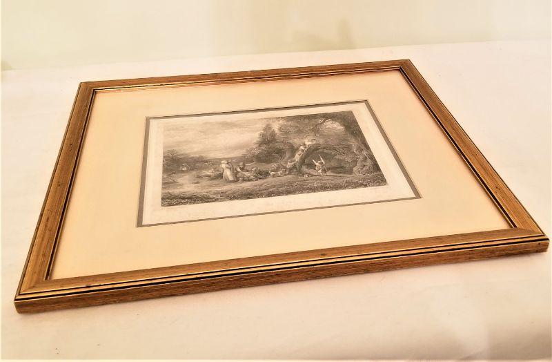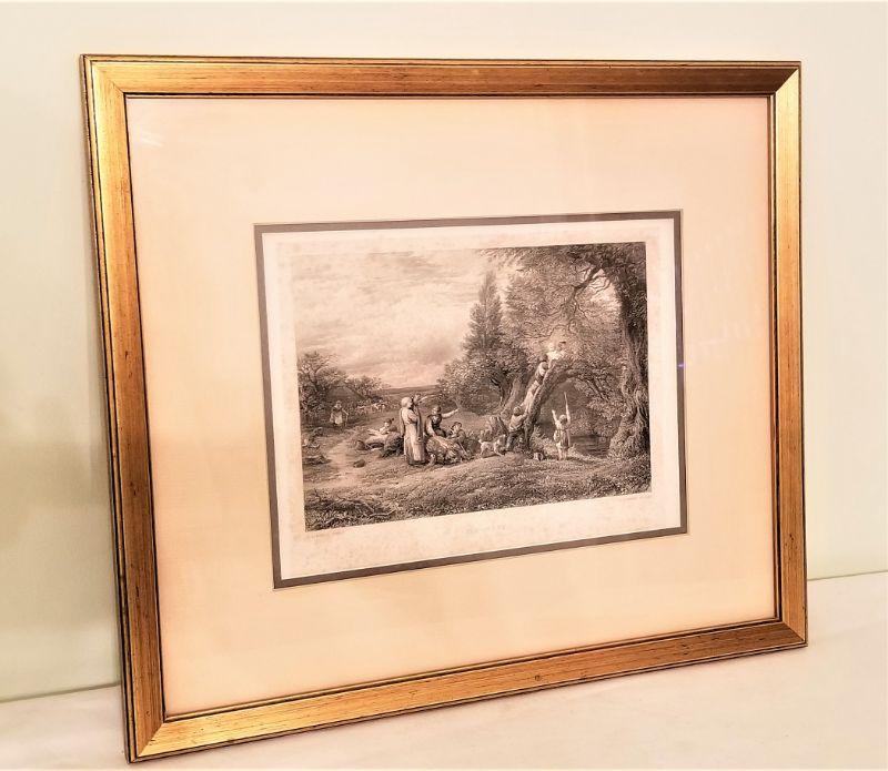 Antique English engraving "The Nest" - done by J. Linnell and C. Cousan in the 19th Century. Some age related foxing. Measures 19.5" x 17". Nice gold frame.