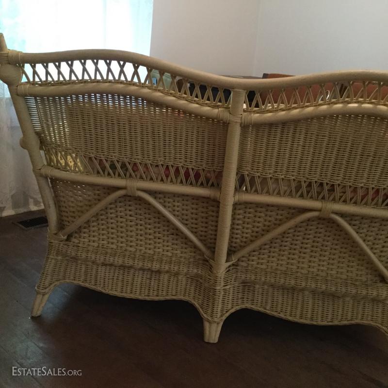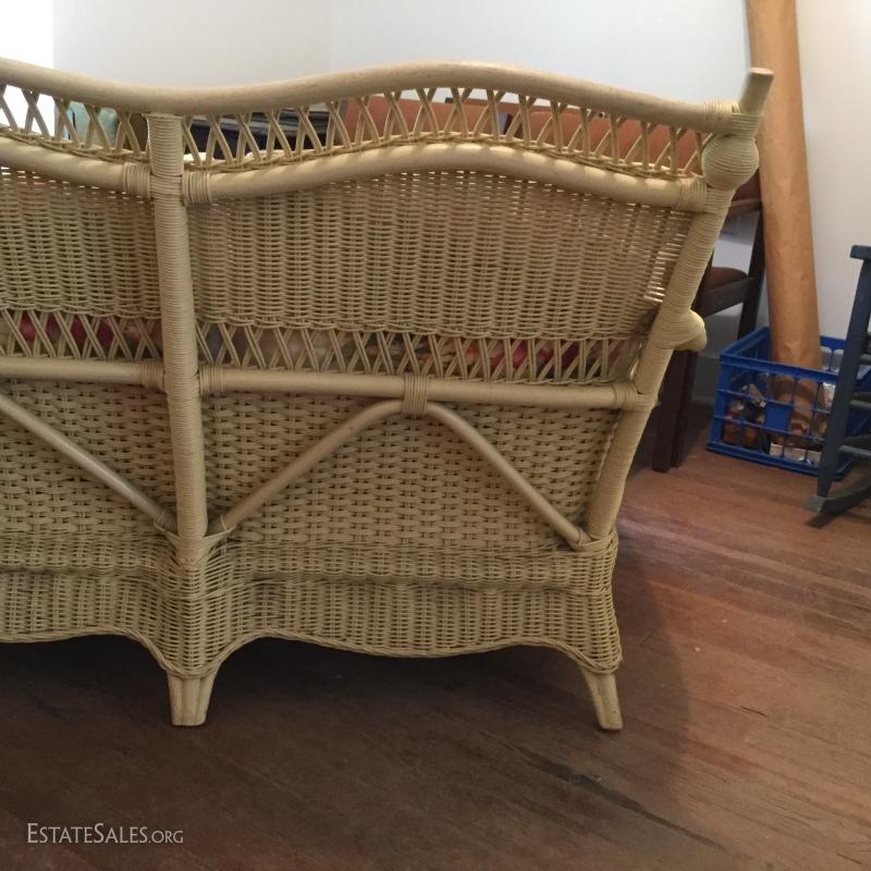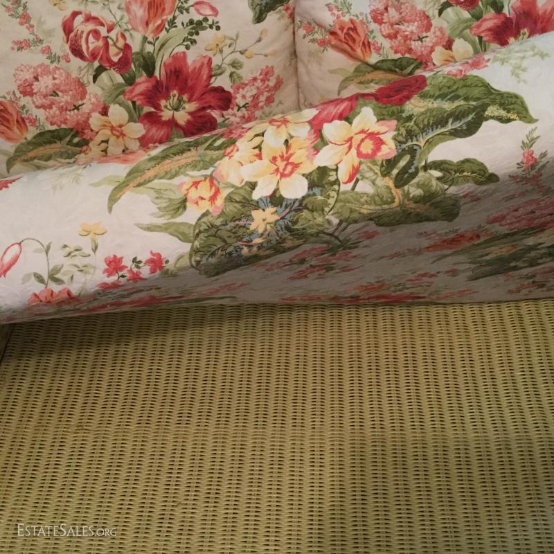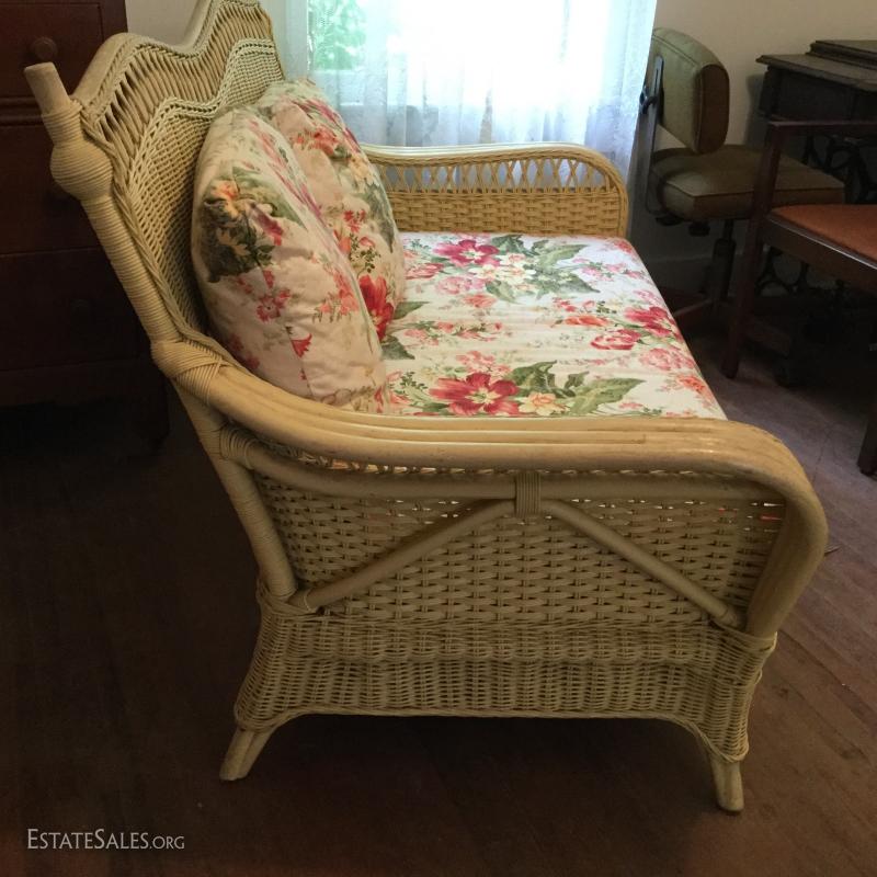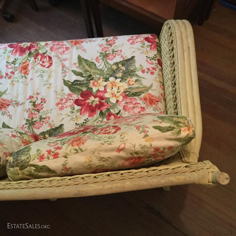 Beautiful vintage, wicket couch with floral cushions. In excellent condition! Measures 57"L x 32"w x 37"H. Lot available for pick up in Saluda, NC only.