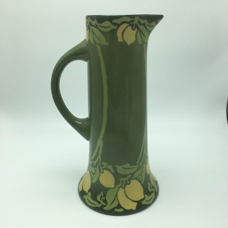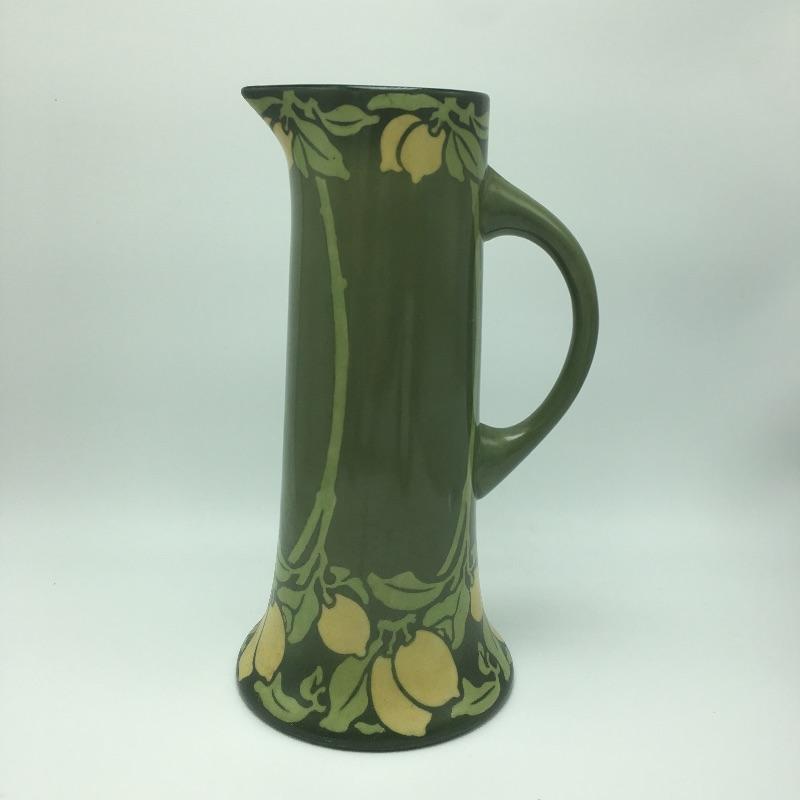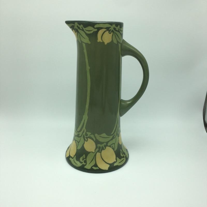 Belleek Arts & Crafts Pitcher. Stunning Belleek pitcher with a lemon tree motif. Pitcher measures 11” tall with a 5.5” base.
