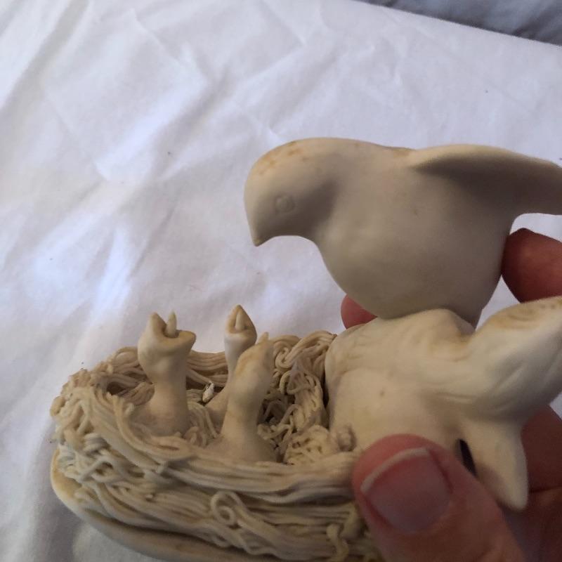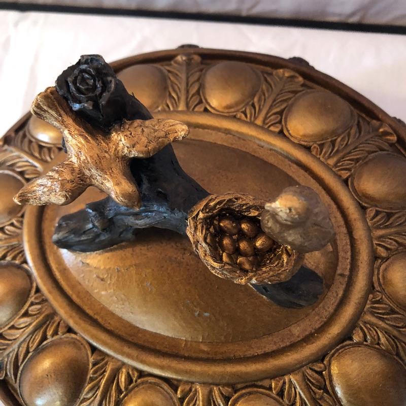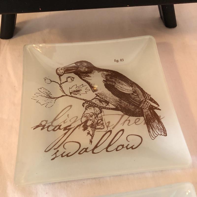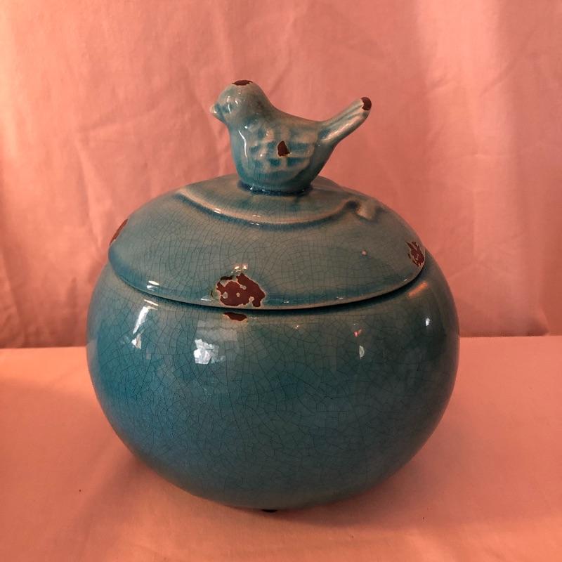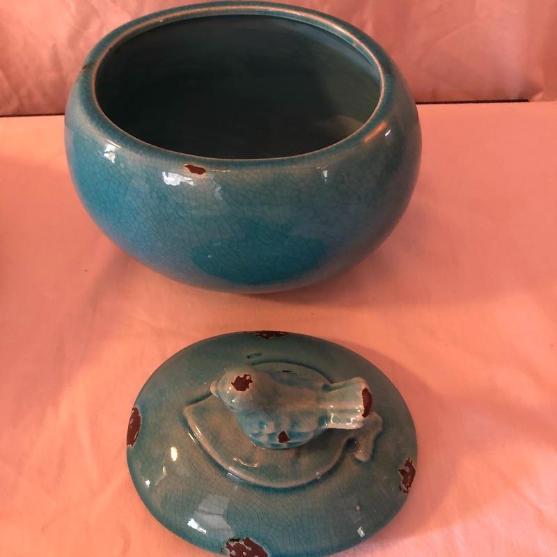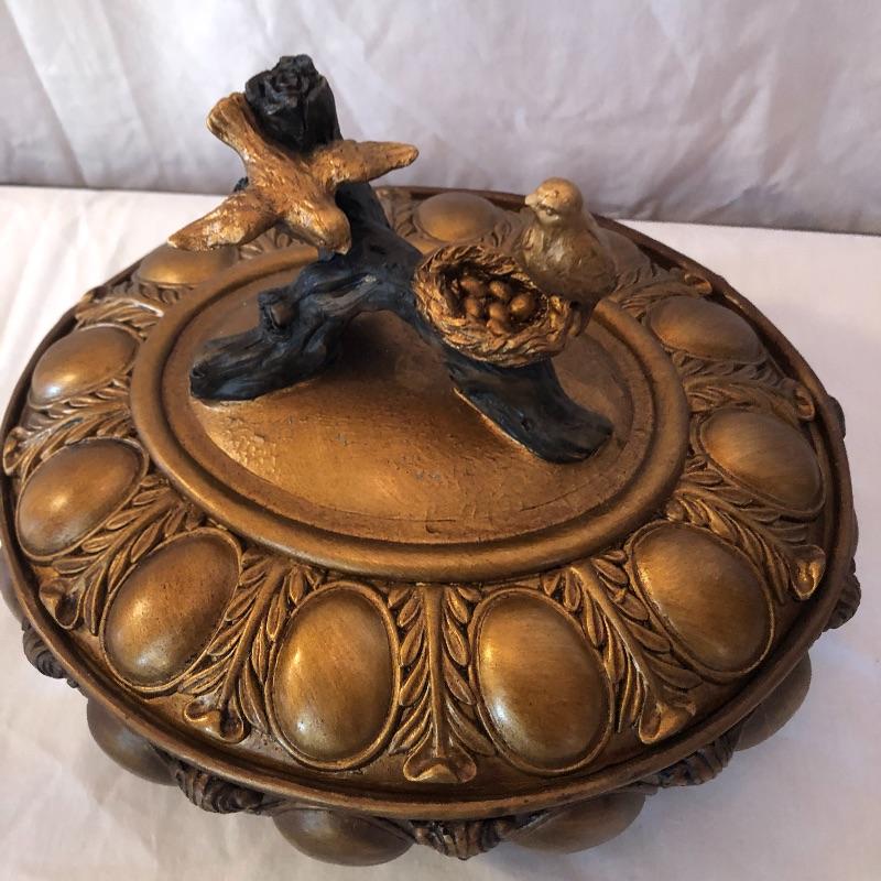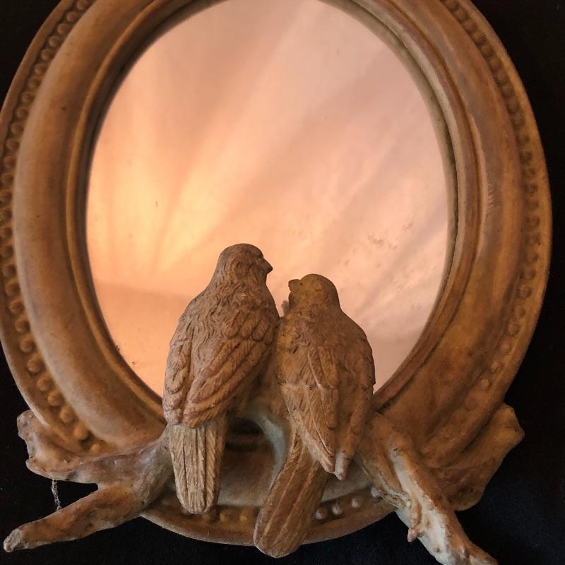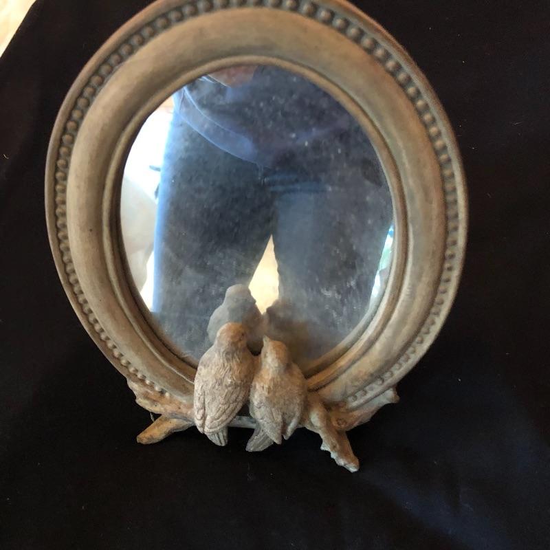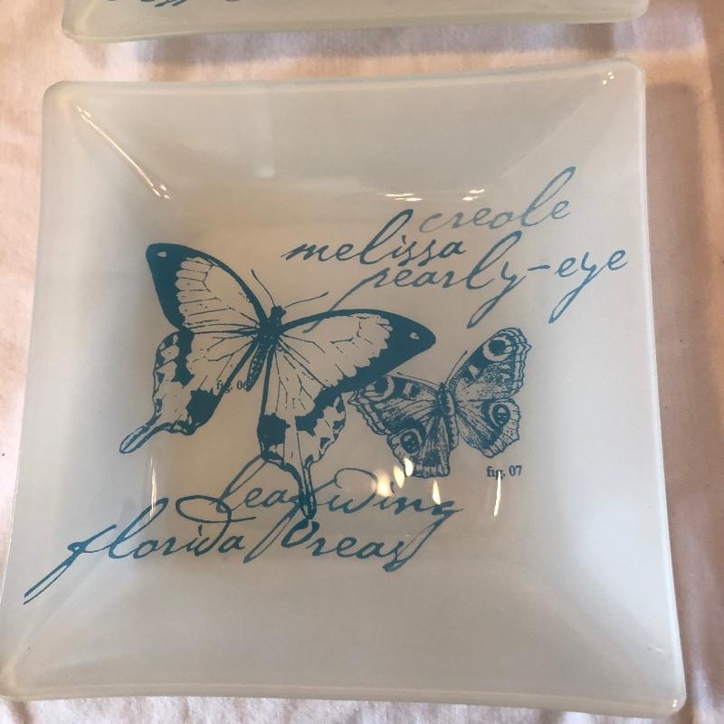 This lot includes many bird related items! It includes a gold bird bowl with lid, a blue crackle glaze bowl with lid, a momma bird with babies figurine, oval bird mirror and four bird plates and four butterfly plates. Plates measure 6” x 6”. Shipping available.