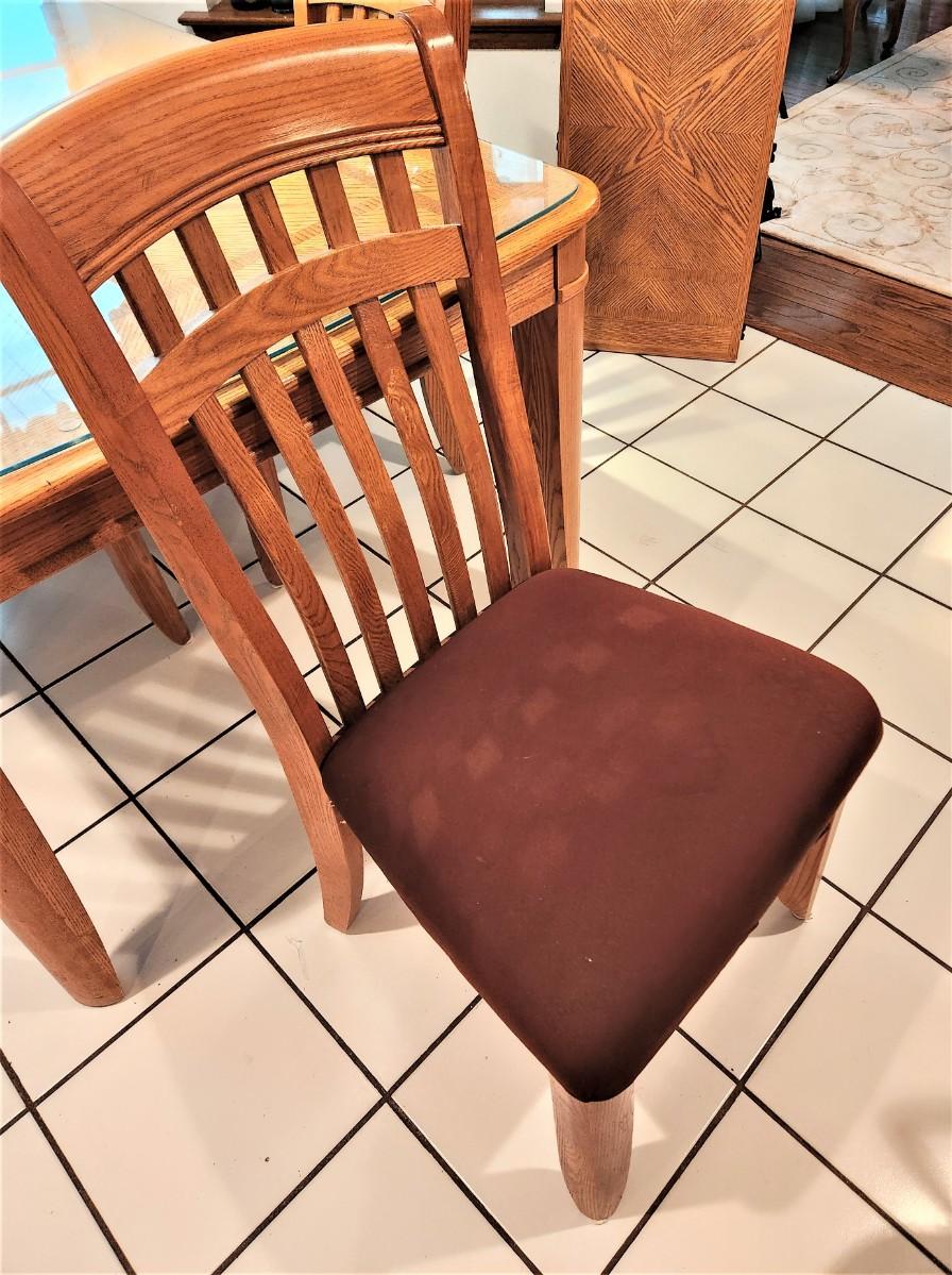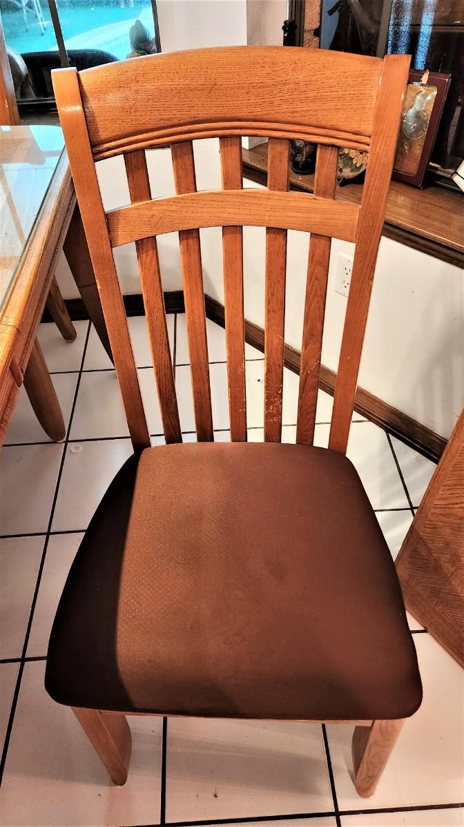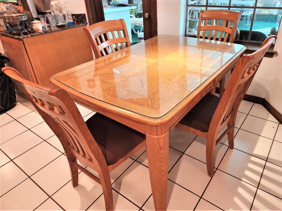 Lot #107  Casual Contemporary Oak Dining Room Set w/tempered glass protective top & leaf
