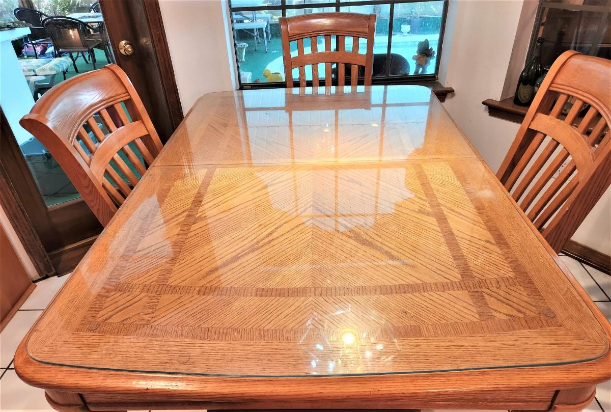 Lot #107 Casual Contemporary Oak Dining Room Set w/tempered glass protective top & leaf