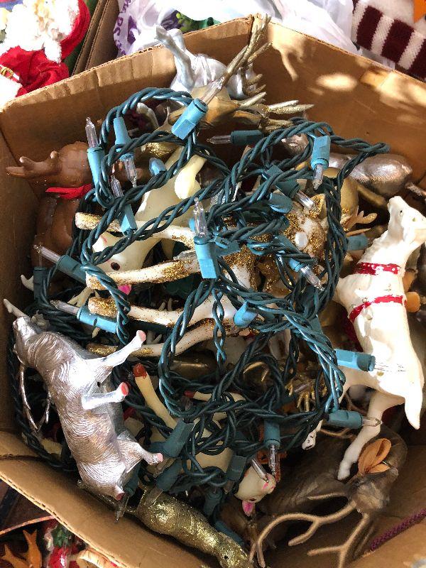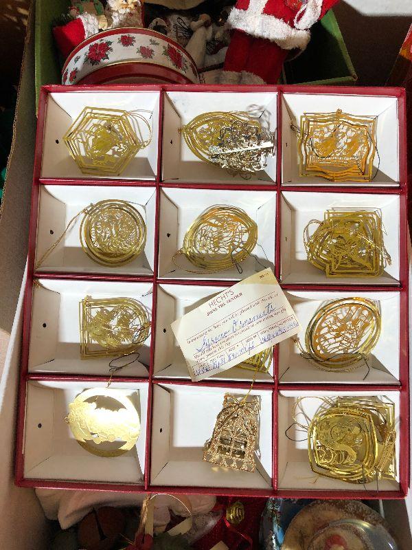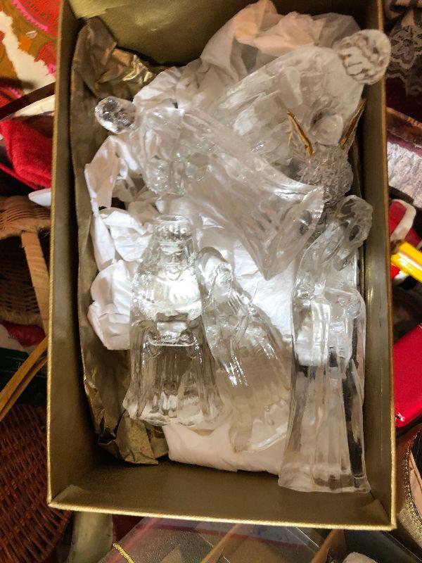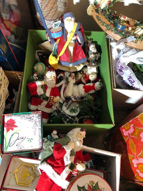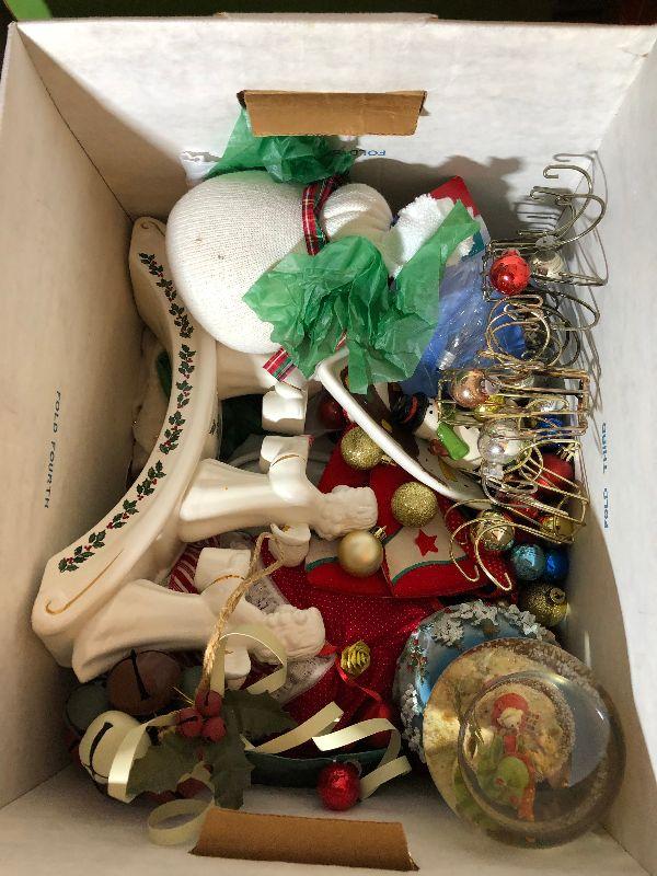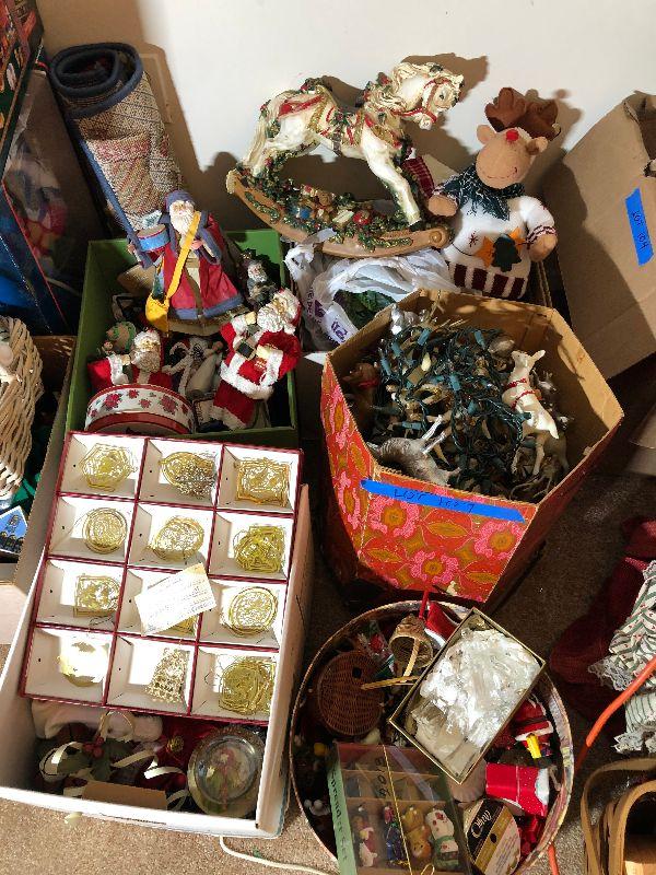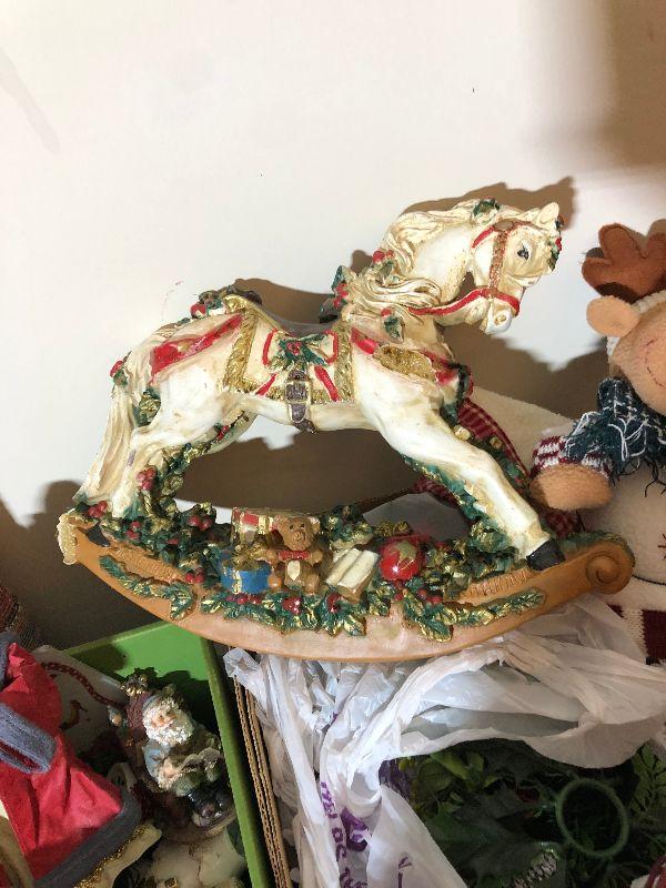 Cobblestone Corner figurines, rocking horse, 12 days of Christmas ornament set, trinket boxes and other miscellaneous items.