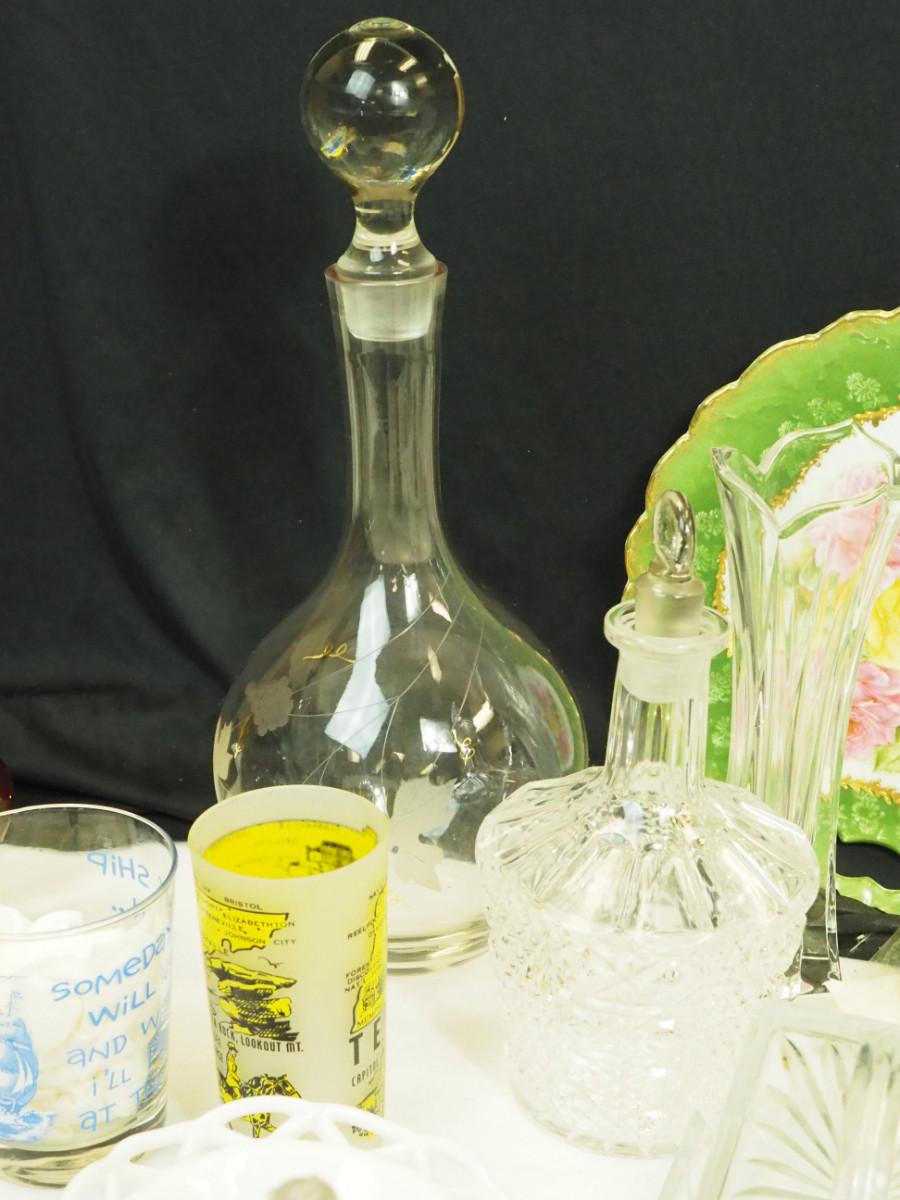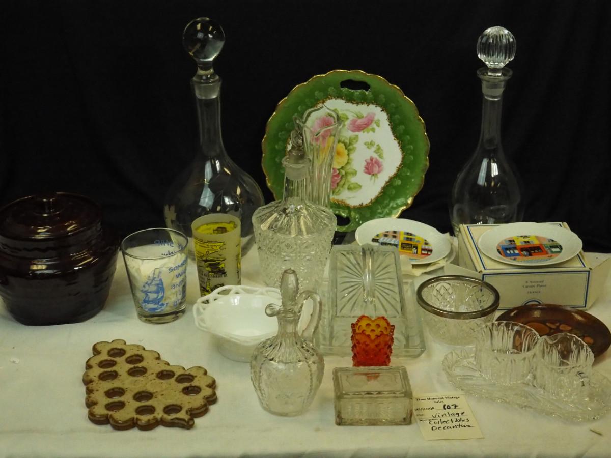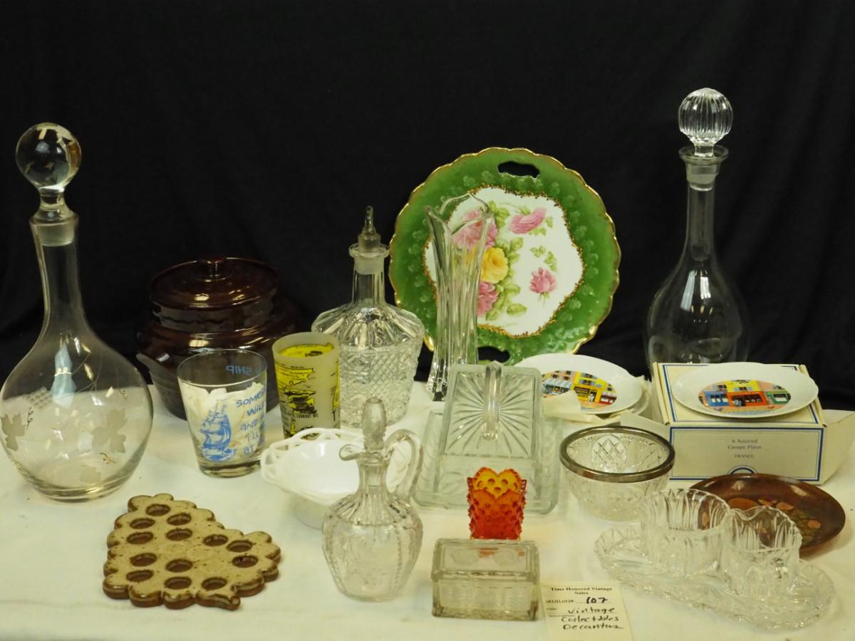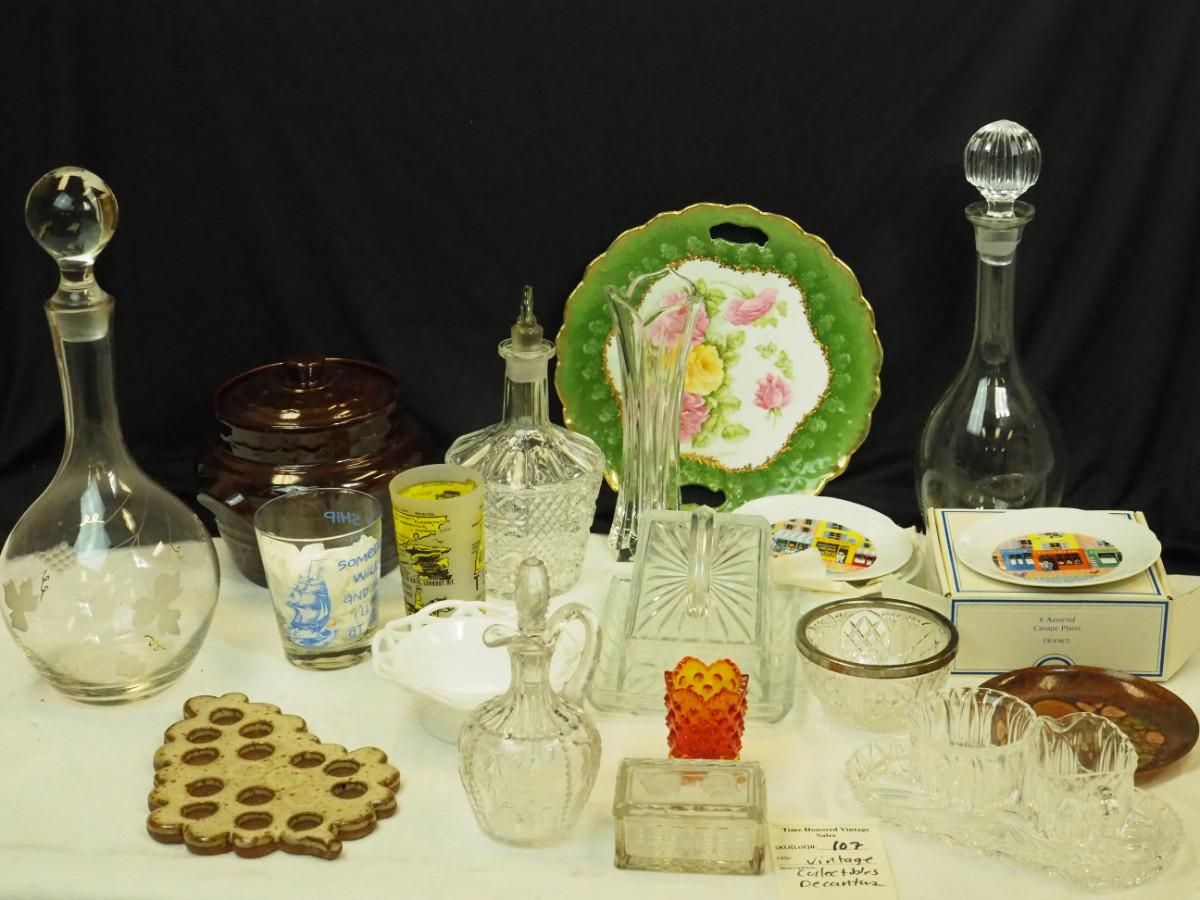 Lot 107- Collectible Crystal decanters with original stoppers  Glass and ceramic collectibles