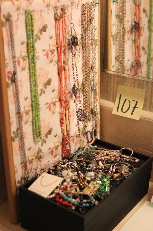 Lot 107 Costume Jewelry & Display/Storage Bins