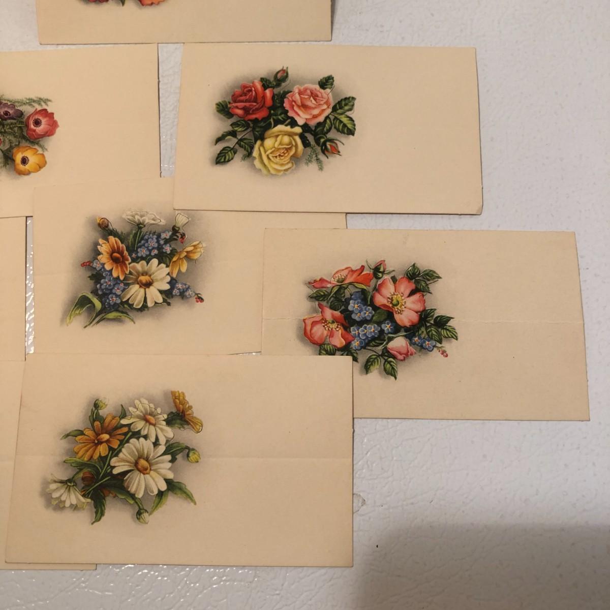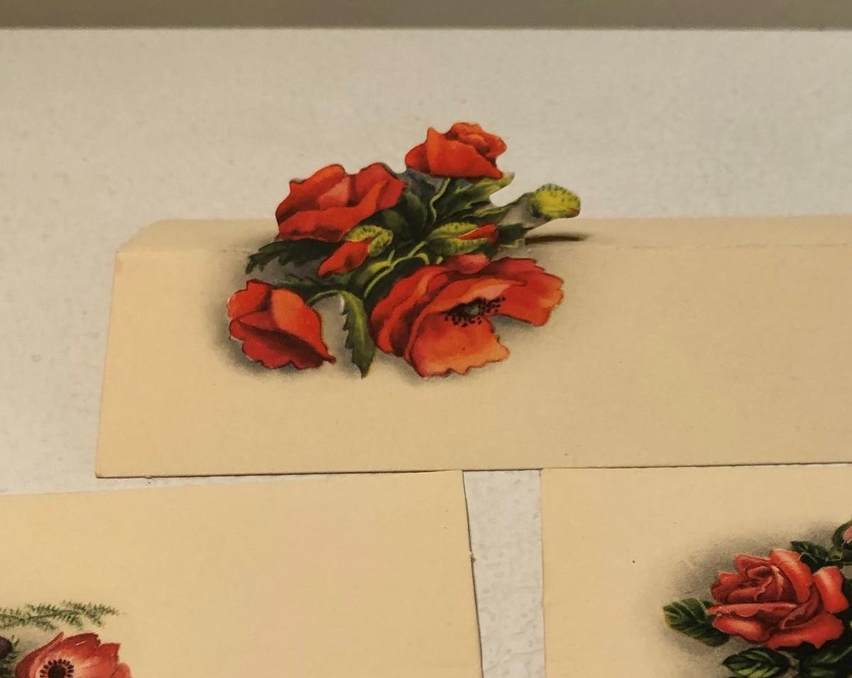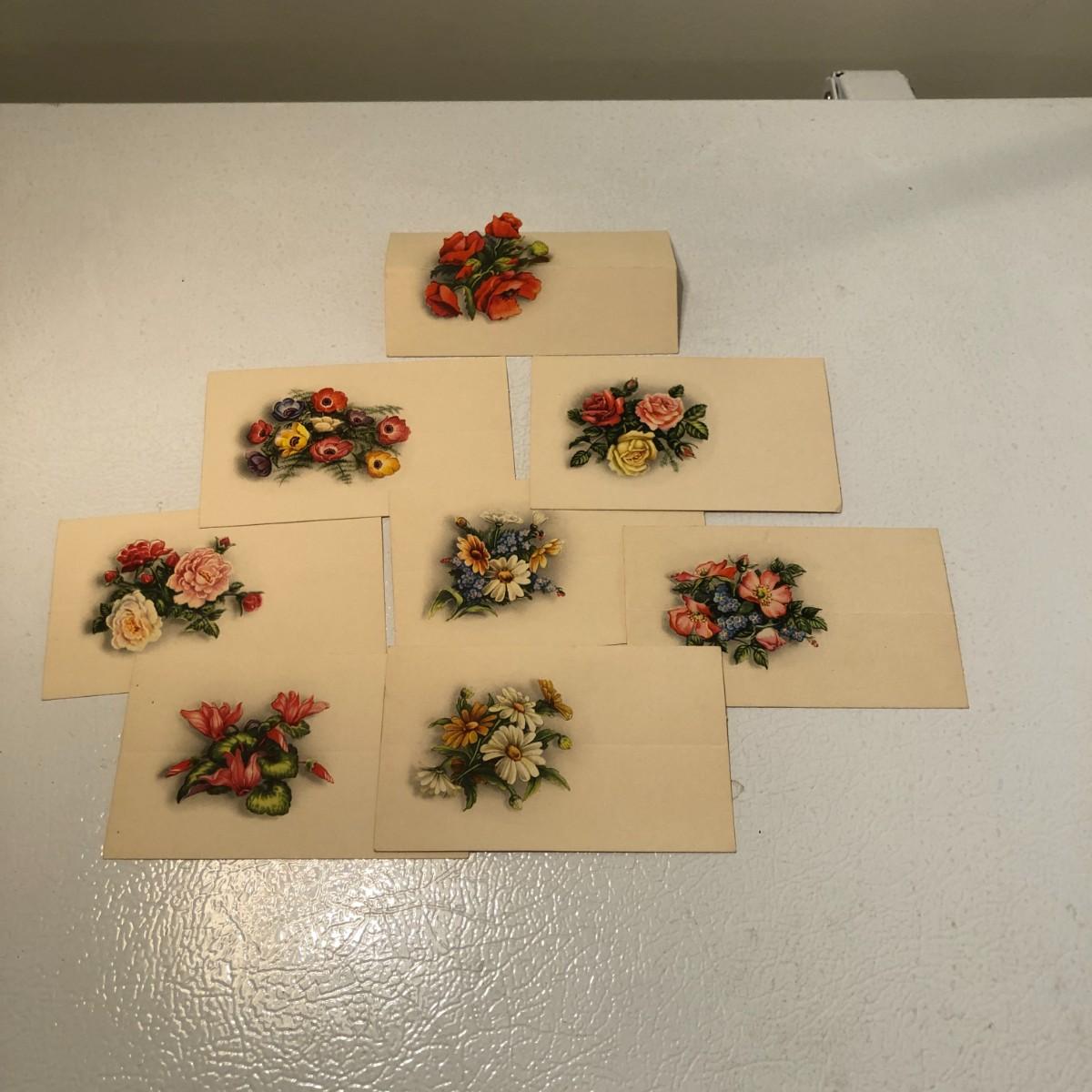 One of these has been separated, but the others are still all attached. The top of the flowers detaches so that you can bend the card in half and have a "stand" for your card.